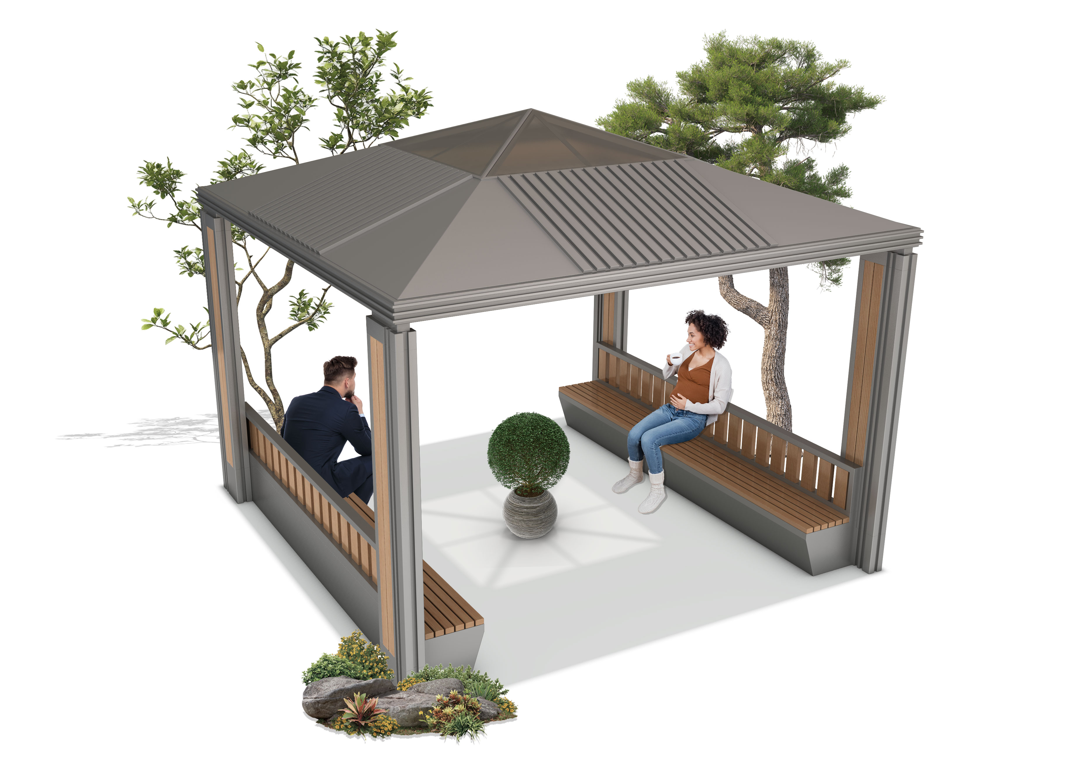 헤리티지 쉼터 (Heritage Shelter)|GC-P-110A 제품목록으로 바로가기 자료 및 바로가기 나라장터 바로연결 도면 다운로드 시공사진 보러가기 기타 전통 누각의 지붕 실루엣을 현대적으로 재해석해 안정감을 주며, 우드 벤치와 개방형 구조를 결합해 누구나 편안하게 머무를 수 있는 클래식 컨셉의 퍼걸러입니다. 제품명 헤리티지 쉼터 (Heritage Shelter)|GC-P-110A 물품식별번호 25639100 규격 3,800 × 3,800 × 3,200(H) 재질 stl, galvanized, hard wood, polycarbonate 헤리티지 쉼터 (Heritage Shelter)|GC-P-110A 물품식별번호 25639100 규격 3,800 × 3,800 × 3,200(H) 재질 stl, galvanized, hard wood, polycarbonate 기타 전통 누각의 지붕 실루엣을 현대적으로 재해석해 안정감을 주며, 우드 벤치와 개방형 구조를 결합해 누구나 편안하게 머무를 수 있는 클래식 컨셉의 퍼걸러입니다. 자료 및 바로가기 나라장터 바로연결 도면 다운로드 시공사진 보러가기