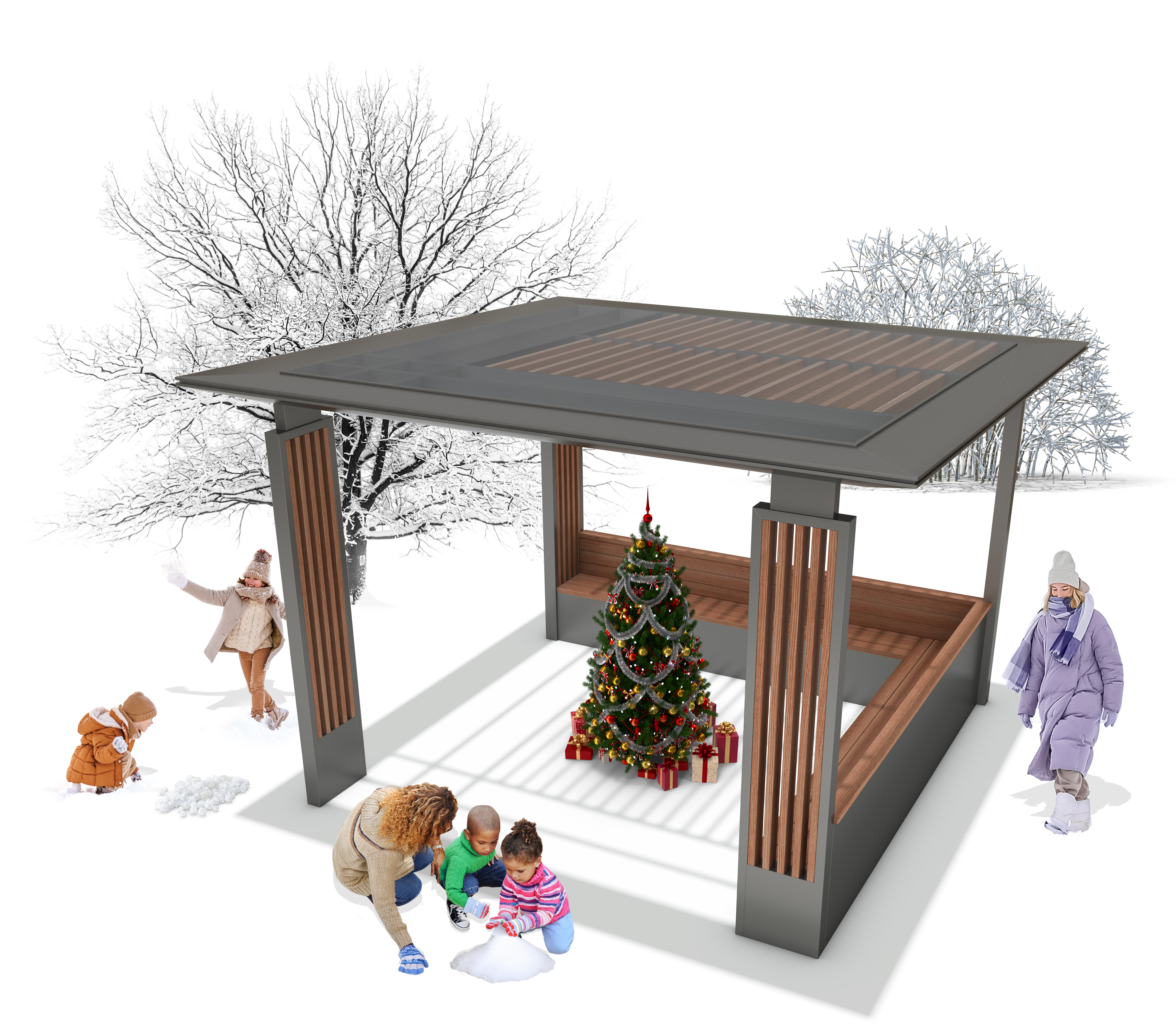 윈터포레 쉼터 (Winter Foret Shelter)|GC-P-122B 제품목록으로 바로가기 자료 및 바로가기 나라장터 바로연결 도면 다운로드 시공사진 보러가기 기타 따뜻한 우드와 견고한 구조가 겨울 풍경 속에서도 안정감을 제공합니다. 루버 천장을 통해 자연광이 은은하게 스며들어 계절의 정취를 편안하게 느낄 수 있는 휴식 공간입니다. 제품명 윈터포레 쉼터 (Winter Foret Shelter)|GC-P-122B 물품식별번호 25651497 규격 4,000 × 4,000 × 2,680(H) 재질 stl, galvanized, hard wood, polycarbonate 윈터포레 쉼터 (Winter Foret Shelter)|GC-P-122B 물품식별번호 25651497 규격 4,000 × 4,000 × 2,680(H) 재질 stl, galvanized, hard wood, polycarbonate 기타 따뜻한 우드와 견고한 구조가 겨울 풍경 속에서도 안정감을 제공합니다. 루버 천장을 통해 자연광이 은은하게 스며들어 계절의 정취를 편안하게 느낄 수 있는 휴식 공간입니다. 자료 및 바로가기 나라장터 바로연결 도면 다운로드 시공사진 보러가기