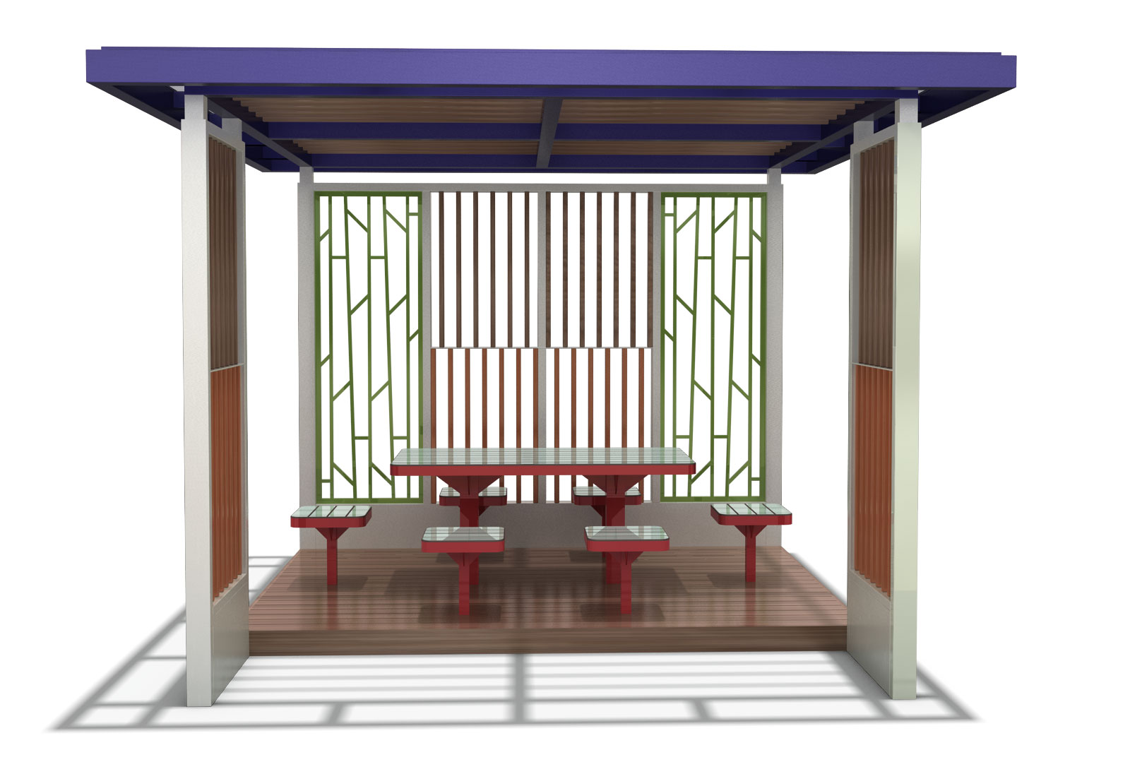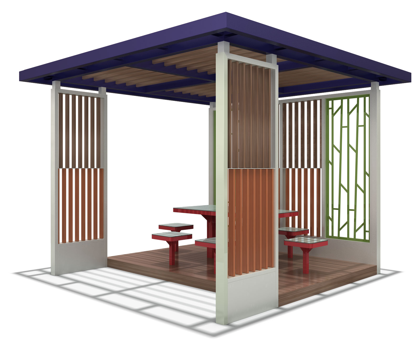 라일락 파크쉼터 (Lilac Park Shelter)|GC-P-1132 제품목록으로 바로가기 자료 및 바로가기 나라장터 바로연결 도면 다운로드 시공사진 보러가기 기타 화사한 컬러 포인트와 패턴형 루버를 적용해 공원 속에서 자연스럽게 어우러지며, 테이블과 벤치를 함께 구성해 가족·아이들이 편하게 머물 수 있도록 만든 감성형 퍼걸러입니다. 제품명 라일락 파크쉼터 (Lilac Park Shelter)|GC-P-1132 물품식별번호 25009297 규격 3,600 × 3,600 × 2,625(H) 재질 stl, galvanized, polycarbonate, hard wood 라일락 파크쉼터 (Lilac Park Shelter)|GC-P-1132 물품식별번호 25009297 규격 3,600 × 3,600 × 2,625(H) 재질 stl, galvanized, polycarbonate, hard wood 기타 화사한 컬러 포인트와 패턴형 루버를 적용해 공원 속에서 자연스럽게 어우러지며, 테이블과 벤치를 함께 구성해 가족·아이들이 편하게 머물 수 있도록 만든 감성형 퍼걸러입니다. 자료 및 바로가기 나라장터 바로연결 도면 다운로드 시공사진 보러가기