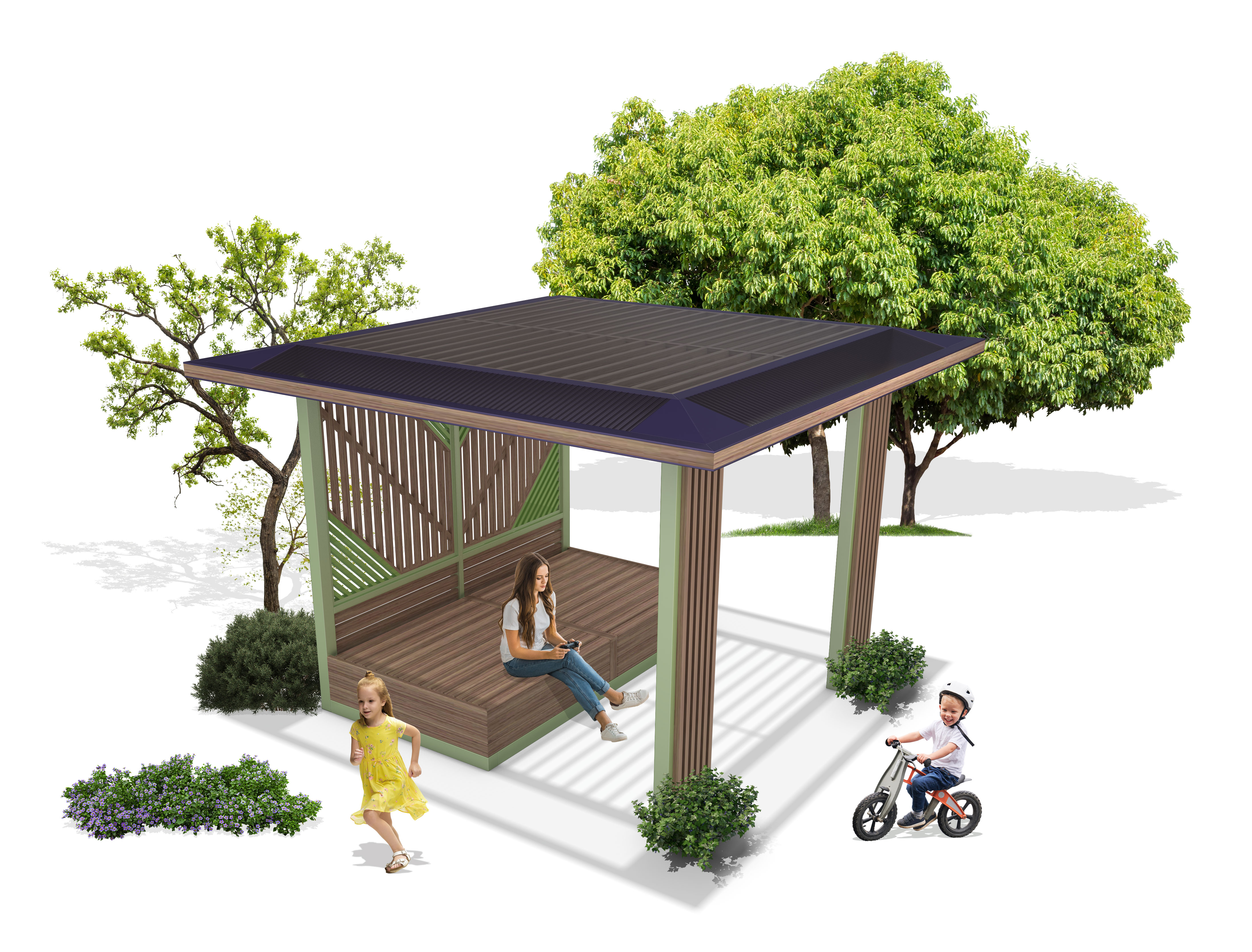 그로브 라운지 쉼터 (Grove Lounge Shelter)|GC-P-1168 제품목록으로 바로가기 자료 및 바로가기 나라장터 바로연결 도면 다운로드 시공사진 보러가기 기타 우드 패턴과 자연 톤 컬러가 조화를 이루는 쉼터로, 아이부터 어른까지 편안히 머물 수 있는 가족 친화형 휴식 공간입니다. 개방감이 좋고 주변 경관과 자연스럽게 어우러집니다. 제품명 그로브 라운지 쉼터 (Grove Lounge Shelter)|GC-P-1168 물품식별번호 25009622 규격 3,800 × 3,800 × 2,750(H) 재질 stl, galvanized, polycarbonate, hard wood 그로브 라운지 쉼터 (Grove Lounge Shelter)|GC-P-1168 물품식별번호 25009622 규격 3,800 × 3,800 × 2,750(H) 재질 stl, galvanized, polycarbonate, hard wood 기타 우드 패턴과 자연 톤 컬러가 조화를 이루는 쉼터로, 아이부터 어른까지 편안히 머물 수 있는 가족 친화형 휴식 공간입니다. 개방감이 좋고 주변 경관과 자연스럽게 어우러집니다. 자료 및 바로가기 나라장터 바로연결 도면 다운로드 시공사진 보러가기