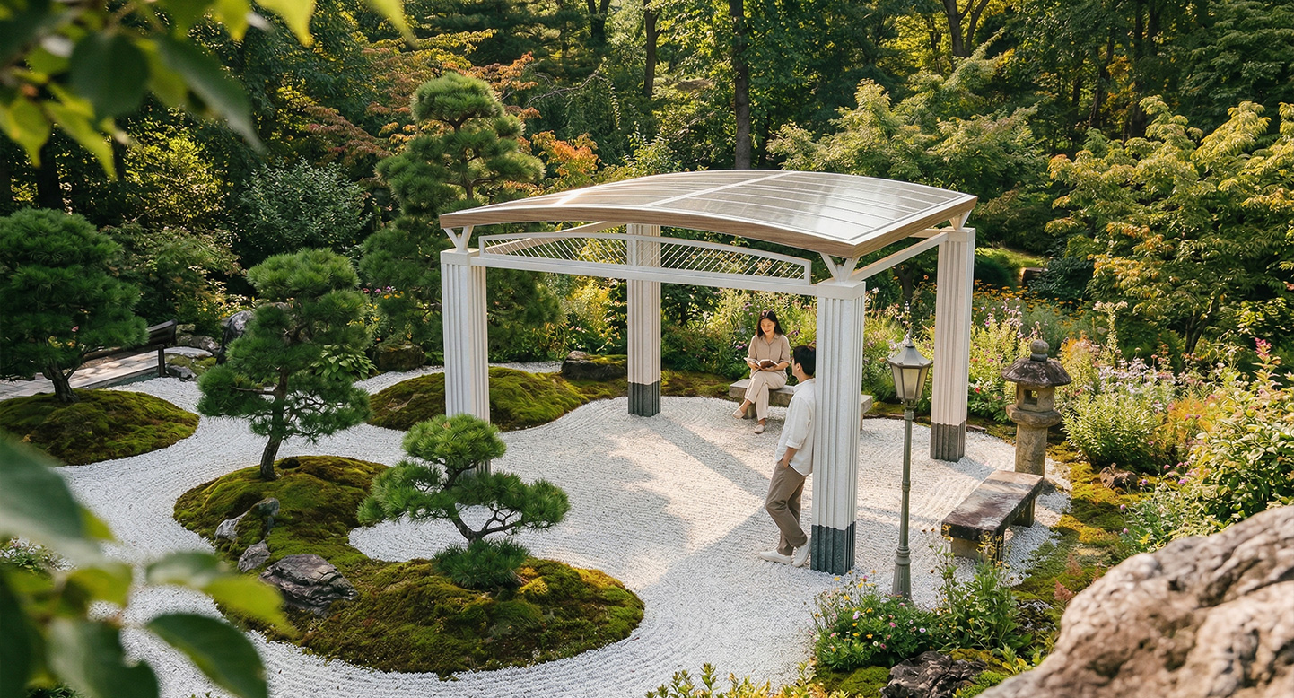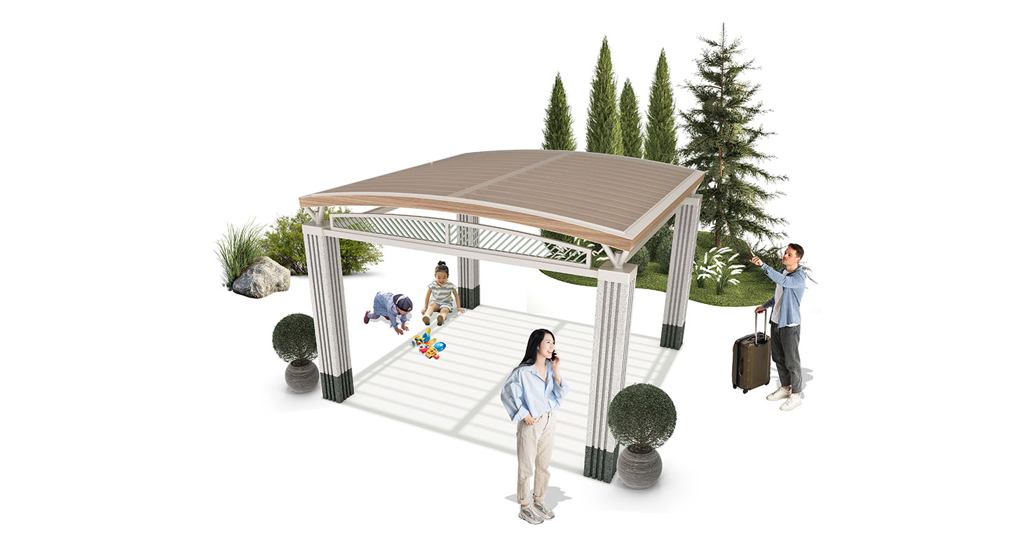 커브브리즈 퍼걸러(Curve Breeze Pergola)|GC-P-196A 제품목록으로 바로가기 자료 및 바로가기 나라장터 바로연결 도면 다운로드 시공사진 보러가기 기타 부드럽게 휘어진 지붕 라인이 공간에 포근한 분위기를 더해주는 감성 퍼걸러입니다 제품명 커브브리즈 퍼걸러(Curve Breeze Pergola)|GC-P-196A 물품식별번호 25651490 규격 4,010 × 4,010 × 2,900(H) 재질 stl, hard wood, polycarbonate,hpl 커브브리즈 퍼걸러(Curve Breeze Pergola)|GC-P-196A 물품식별번호 25651490 규격 4,010 × 4,010 × 2,900(H) 재질 stl, hard wood, polycarbonate,hpl 기타 부드럽게 휘어진 지붕 라인이 공간에 포근한 분위기를 더해주는 감성 퍼걸러입니다 자료 및 바로가기 나라장터 바로연결 도면 다운로드 시공사진 보러가기