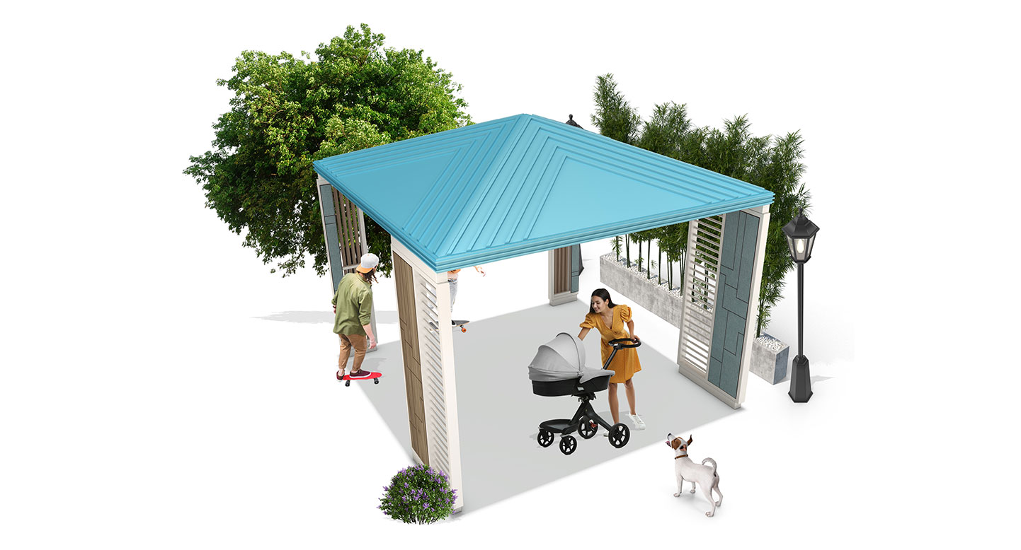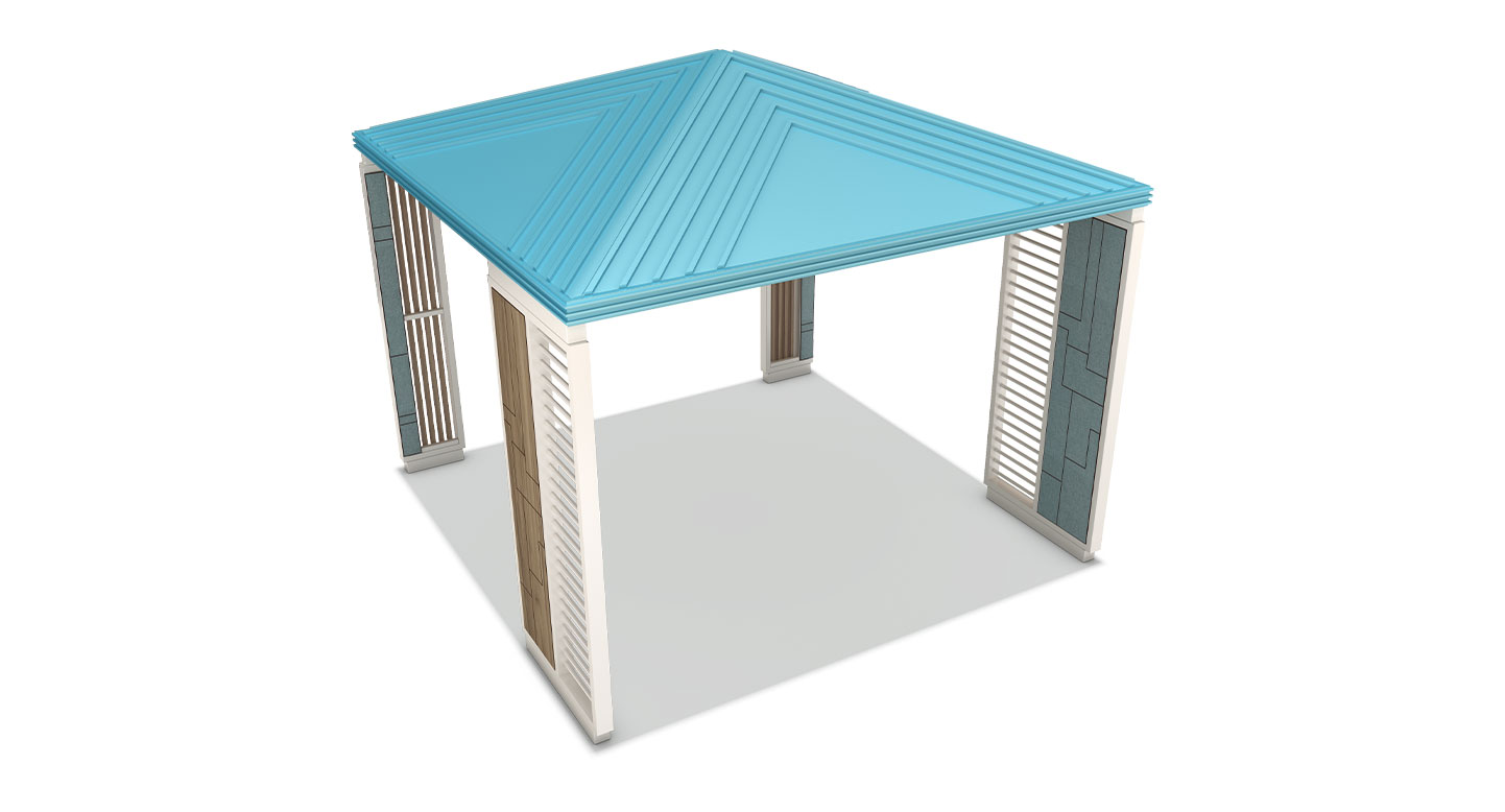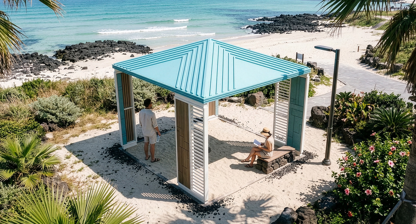 스카이 루버 쉼터 (Sky Louver Shelter)|GC-P-2144 제품목록으로 바로가기 자료 및 바로가기 나라장터 바로연결 도면 다운로드 시공사진 보러가기 기타 밝은 스카이블루 지붕과 루버 디테일로 경쾌하고 젊은 분위기를 담은 쉼터입니다. 부담 없는 컬러 조합과 개방형 구조가 일상 공간 어디서나 산뜻한 포인트가 됩니다. 제품명 스카이 루버 쉼터 (Sky Louver Shelter)|GC-P-2144 물품식별번호 25651666 규격 3,800 × 3,800 × 3,350(H) 재질 stl, galvanized, polycarbonate, hard wood, hpl 스카이 루버 쉼터 (Sky Louver Shelter)|GC-P-2144 물품식별번호 25651666 규격 3,800 × 3,800 × 3,350(H) 재질 stl, galvanized, polycarbonate, hard wood, hpl 기타 밝은 스카이블루 지붕과 루버 디테일로 경쾌하고 젊은 분위기를 담은 쉼터입니다. 부담 없는 컬러 조합과 개방형 구조가 일상 공간 어디서나 산뜻한 포인트가 됩니다. 자료 및 바로가기 나라장터 바로연결 도면 다운로드 시공사진 보러가기