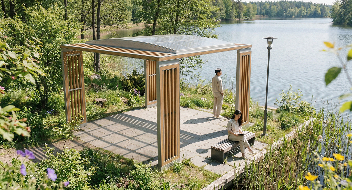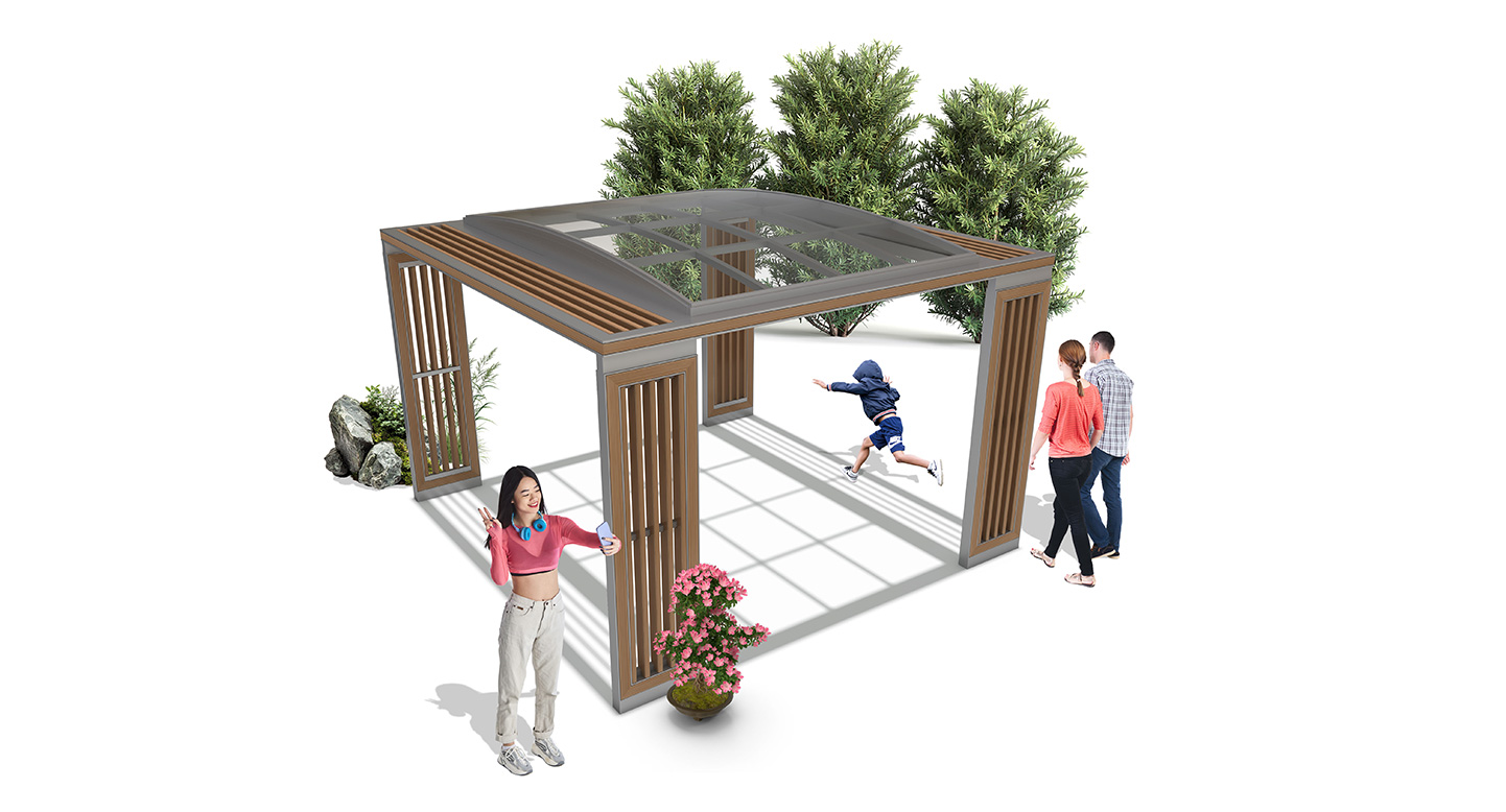 커브슬랫 퍼걸러 (Curve Slat Pergola)|GC-P-123B 제품목록으로 바로가기 자료 및 바로가기 나라장터 바로연결 도면 다운로드 시공사진 보러가기 기타 부드럽게 휘어진 루프와 세로 슬랫 기둥이 조화를 이루며 공원·단지 공간에 자연스러운 개방감과 따뜻한 분위기를 제공합니다. 심플한 구조 속에 우드 포인트를 더해 다양한 이용자에게 편안하고 현대적인 쉼터 경험을 제공합니다. 제품명 커브슬랫 퍼걸러 (Curve Slat Pergola)|GC-P-123B 물품식별번호 25636385 규격 4,000 × 4,000 × 2,800(H) 재질 stl, galvanized, hard wood, polycarbonate 커브슬랫 퍼걸러 (Curve Slat Pergola)|GC-P-123B 물품식별번호 25636385 규격 4,000 × 4,000 × 2,800(H) 재질 stl, galvanized, hard wood, polycarbonate 기타 부드럽게 휘어진 루프와 세로 슬랫 기둥이 조화를 이루며 공원·단지 공간에 자연스러운 개방감과 따뜻한 분위기를 제공합니다. 심플한 구조 속에 우드 포인트를 더해 다양한 이용자에게 편안하고 현대적인 쉼터 경험을 제공합니다. 자료 및 바로가기 나라장터 바로연결 도면 다운로드 시공사진 보러가기