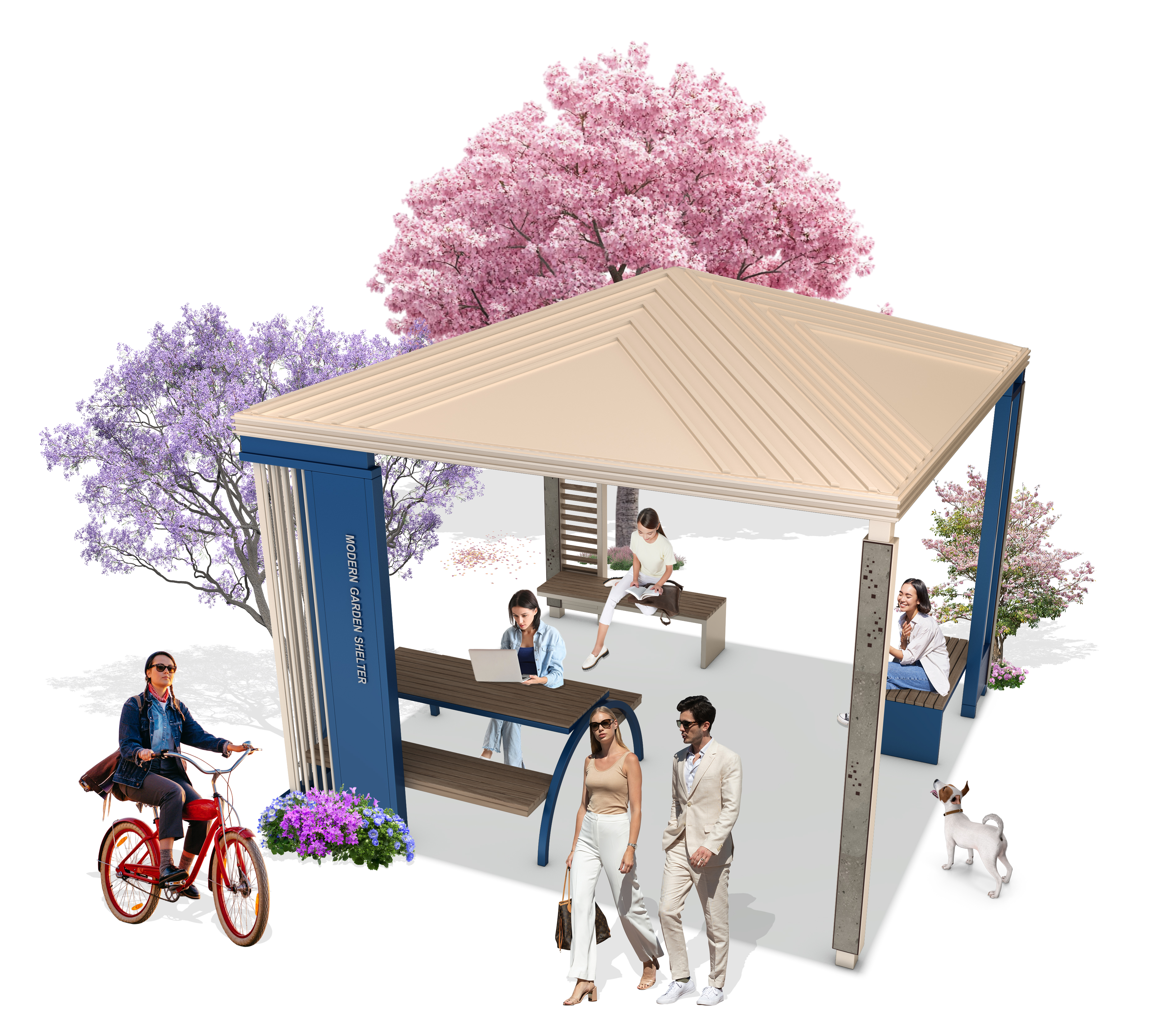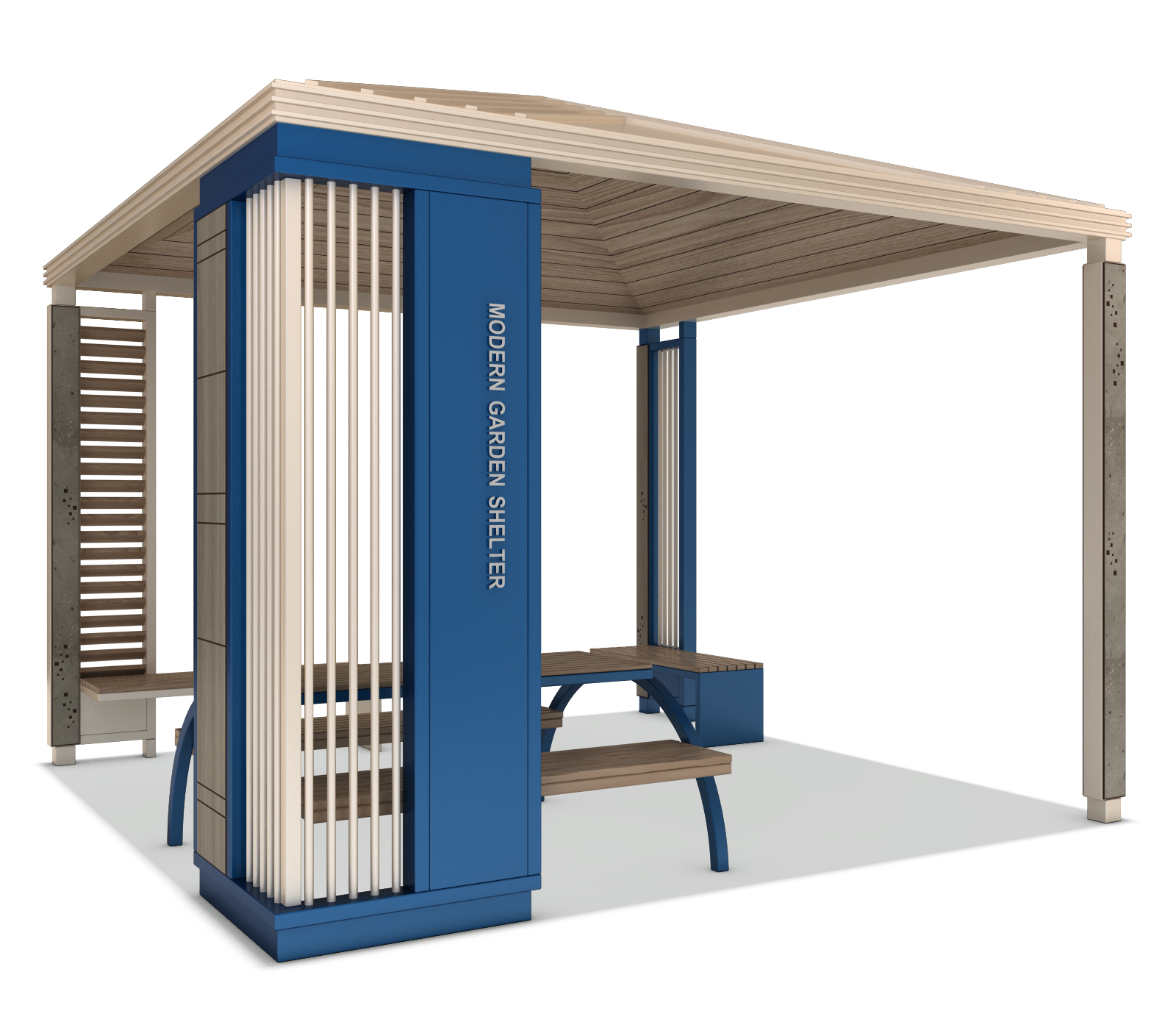 가든피크 퍼걸러 (Garden Peak Pergola)|GC-P-2147 제품목록으로 바로가기 자료 및 바로가기 나라장터 바로연결 도면 다운로드 시공사진 보러가기 기타 사선 지붕 패턴과 컬러 포인트 기둥으로 정원에 자연스럽게 어우러지며, 개방 구조로 다양한 휴식과 소통이 편안하게 이루어지는 모던 쉼터입니다. 제품명 가든피크 퍼걸러 (Garden Peak Pergola)|GC-P-2147 물품식별번호 25651669 규격 3,800 × 3,800 × 3,300(H) 재질 stl, galvanized, polycarbonate, hard wood, hpl 가든피크 퍼걸러 (Garden Peak Pergola)|GC-P-2147 물품식별번호 25651669 규격 3,800 × 3,800 × 3,300(H) 재질 stl, galvanized, polycarbonate, hard wood, hpl 기타 사선 지붕 패턴과 컬러 포인트 기둥으로 정원에 자연스럽게 어우러지며, 개방 구조로 다양한 휴식과 소통이 편안하게 이루어지는 모던 쉼터입니다. 자료 및 바로가기 나라장터 바로연결 도면 다운로드 시공사진 보러가기