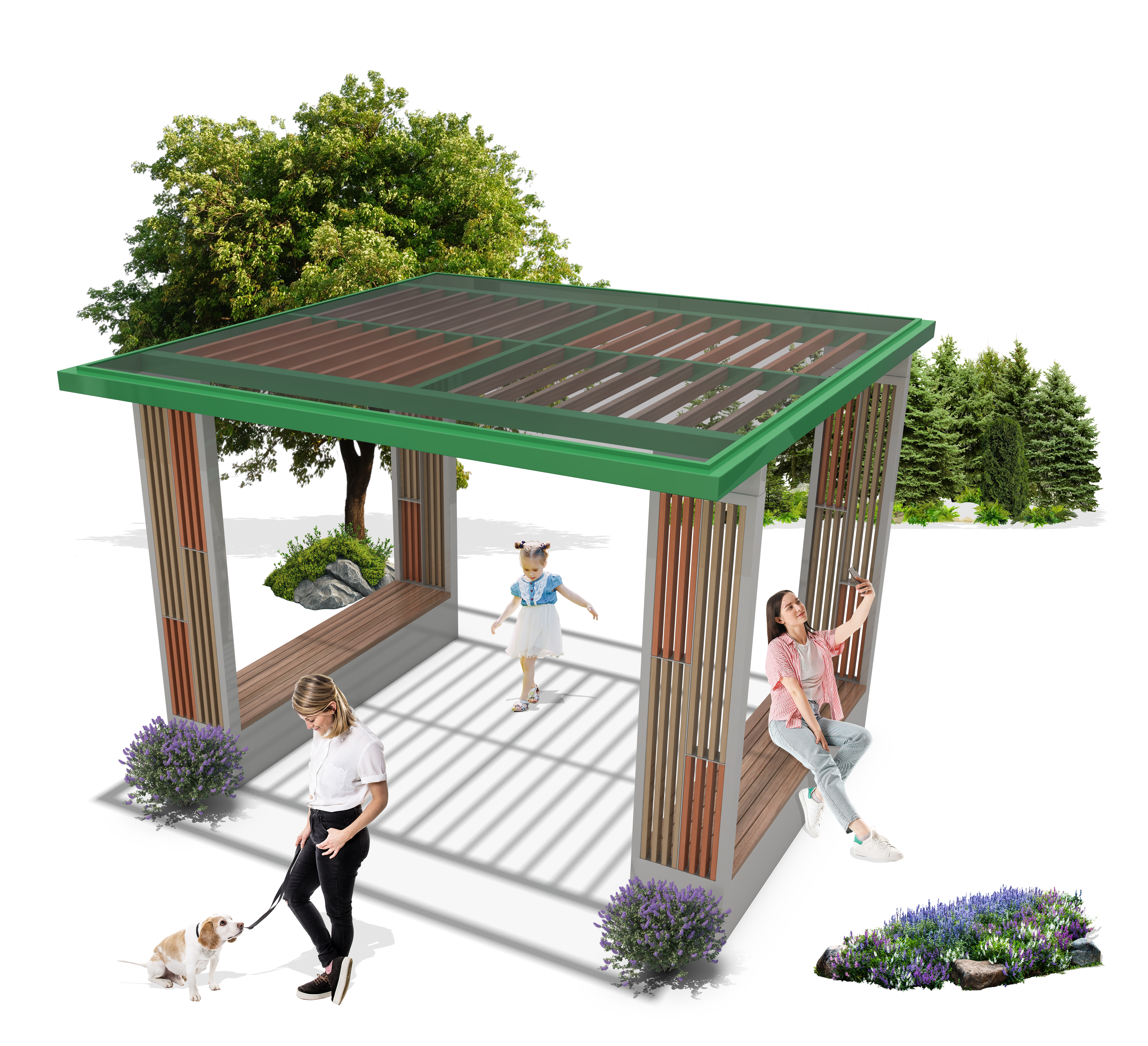 그린루버 퍼걸러 (Green Louver Pergola)|GCP-1130 제품목록으로 바로가기 자료 및 바로가기 나라장터 바로연결 도면 다운로드 시공사진 보러가기 기타 그린 톤 프레임과 우드 루버를 조합해 자연과의 조화를 극대화했으며, 밝고 개방적인 구조로 편안한 휴식과 소통이 가능한 친환경 감성의 퍼걸러입니다. 제품명 그린루버 퍼걸러 (Green Louver Pergola)|GCP-1130 물품식별번호 25483037 규격 3,600 × 3,600 × 2,600(H) 재질 stl, galvanized, polycarbonate, hard wood 그린루버 퍼걸러 (Green Louver Pergola)|GCP-1130 물품식별번호 25483037 규격 3,600 × 3,600 × 2,600(H) 재질 stl, galvanized, polycarbonate, hard wood 기타 그린 톤 프레임과 우드 루버를 조합해 자연과의 조화를 극대화했으며, 밝고 개방적인 구조로 편안한 휴식과 소통이 가능한 친환경 감성의 퍼걸러입니다. 자료 및 바로가기 나라장터 바로연결 도면 다운로드 시공사진 보러가기