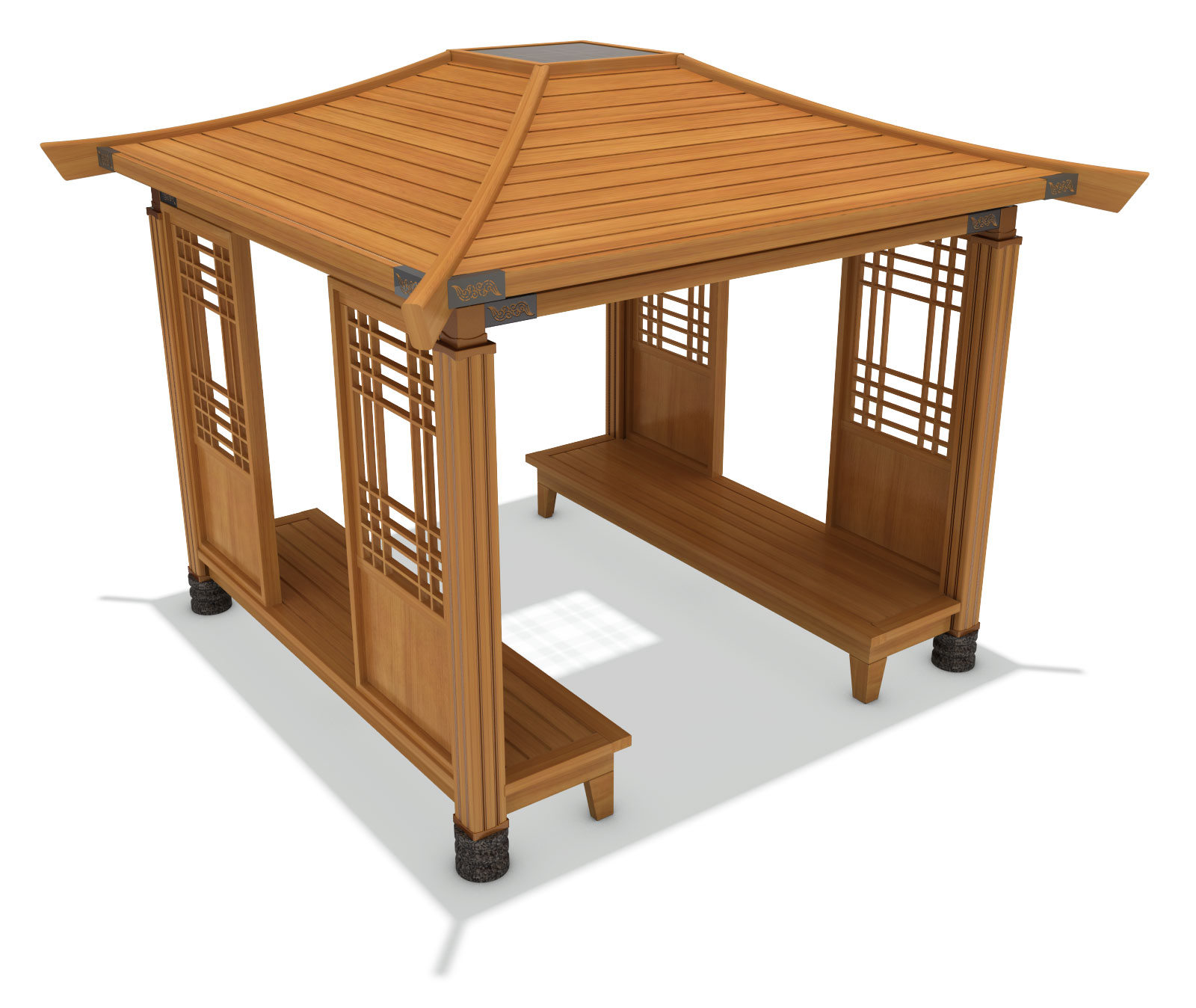 한옥 정자 벤치 파빌리온 (Hanok Bench Pavilion)|GGP-084A-5 제품목록으로 바로가기 자료 및 바로가기 나라장터 바로연결 도면 다운로드 시공사진 보러가기 기타 전통 한옥의 창호와 곡선 처마를 현대적으로 단순화하고 양측 벤치를 배치해, 공원·전통거리·문화광장에서 자연스럽게 어우러지는 한국형 쉼터입니다. 제품명 한옥 정자 벤치 파빌리온 (Hanok Bench Pavilion)|GGP-084A-5 물품식별번호 25651522 규격 4,300 × 4,300 × 3,460(H) 재질 stl, galvanized, hard wood, birch plywood, PC 한옥 정자 벤치 파빌리온 (Hanok Bench Pavilion)|GGP-084A-5 물품식별번호 25651522 규격 4,300 × 4,300 × 3,460(H) 재질 stl, galvanized, hard wood, birch plywood, PC 기타 전통 한옥의 창호와 곡선 처마를 현대적으로 단순화하고 양측 벤치를 배치해, 공원·전통거리·문화광장에서 자연스럽게 어우러지는 한국형 쉼터입니다. 자료 및 바로가기 나라장터 바로연결 도면 다운로드 시공사진 보러가기