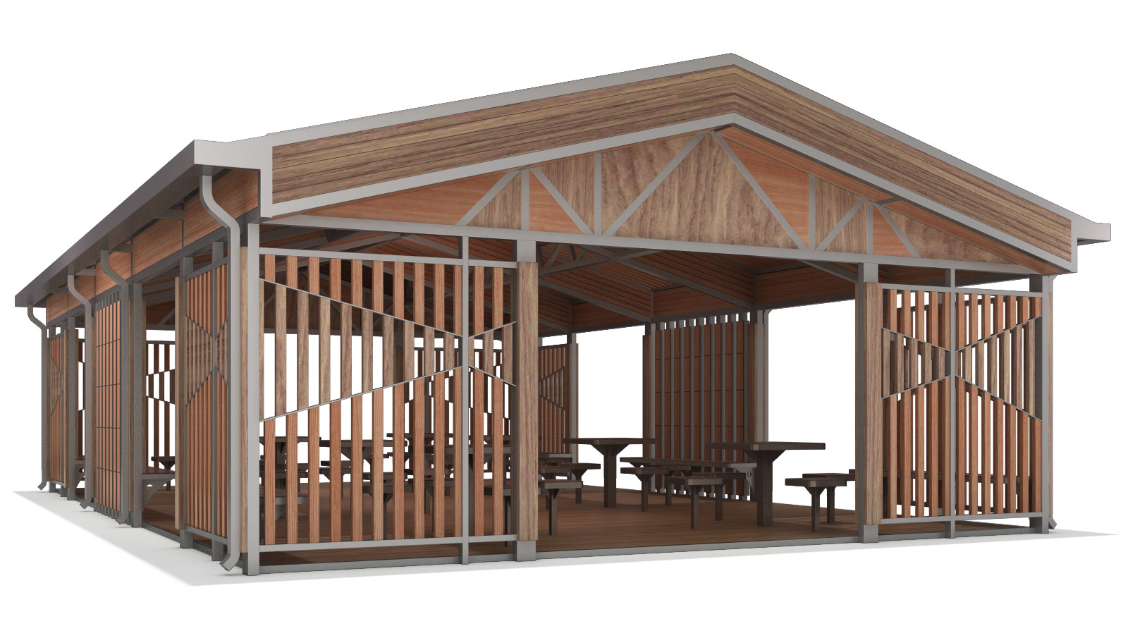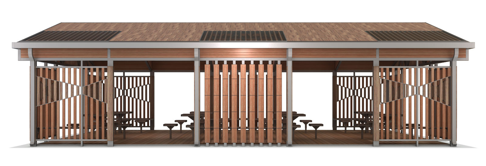 우드 파크 파빌리온 (Wood Park Pavilion)|GC-P-728C 제품목록으로 바로가기 자료 및 바로가기 나라장터 바로연결 도면 다운로드 시공사진 보러가기 기타 전면에 목재 루버와 경량 구조 조합을 적용해 자연친화적이면서도 개방감을 살린 대형 쉼터입니다. 공원·캠핑장·야외 휴게공간 등 다양한 장소에서 커뮤니티 활동이 가능하도록 설계된 복합 파빌리온입니다. 제품명 우드 파크 파빌리온 (Wood Park Pavilion)|GC-P-728C 물품식별번호 24104258 규격 12,000 × 8,000 × 3,780(H) 재질 stl, galvanized, hard wood, polycarbonate, hpl 우드 파크 파빌리온 (Wood Park Pavilion)|GC-P-728C 물품식별번호 24104258 규격 12,000 × 8,000 × 3,780(H) 재질 stl, galvanized, hard wood, polycarbonate, hpl 기타 전면에 목재 루버와 경량 구조 조합을 적용해 자연친화적이면서도 개방감을 살린 대형 쉼터입니다. 공원·캠핑장·야외 휴게공간 등 다양한 장소에서 커뮤니티 활동이 가능하도록 설계된 복합 파빌리온입니다. 자료 및 바로가기 나라장터 바로연결 도면 다운로드 시공사진 보러가기