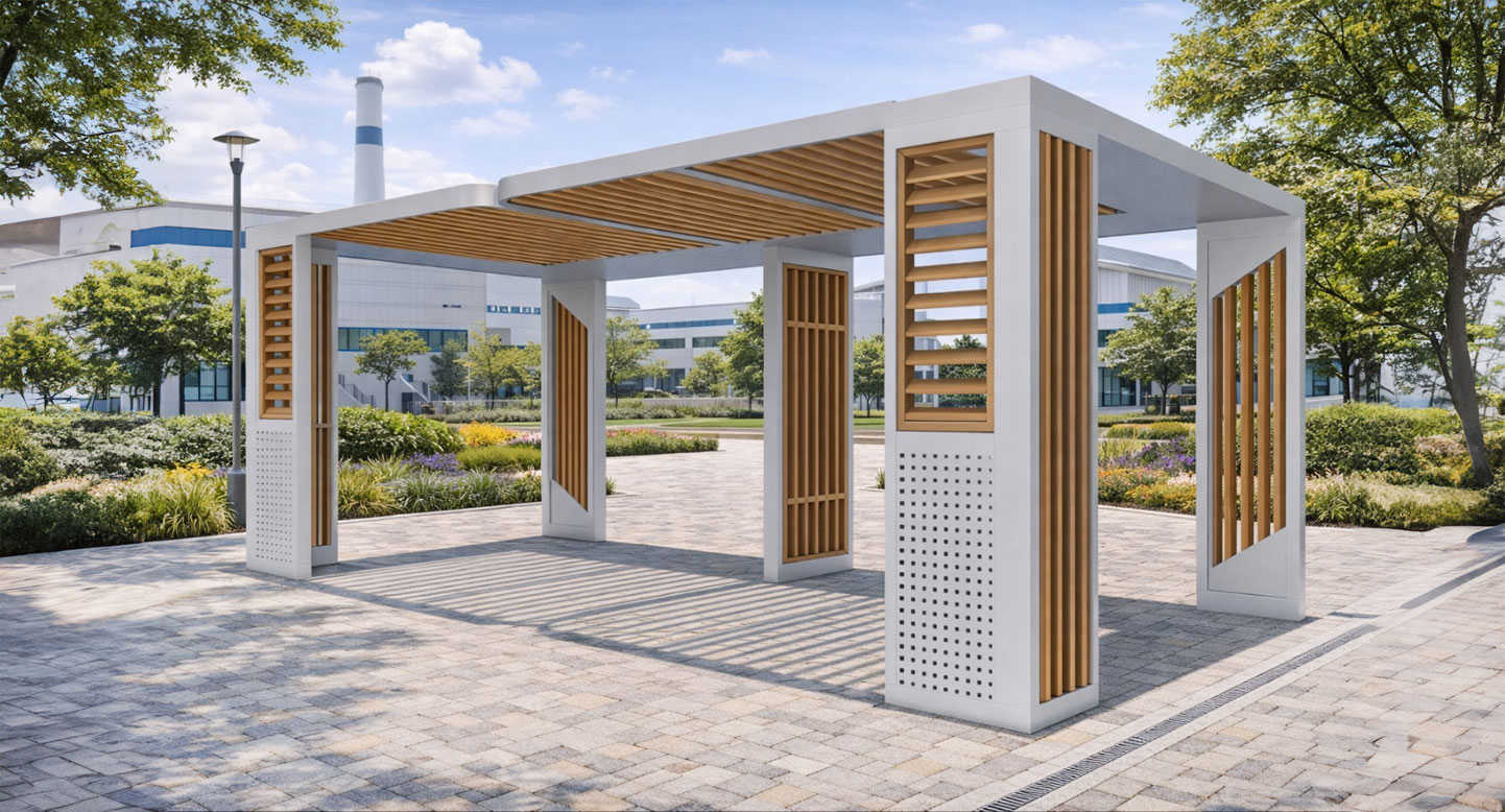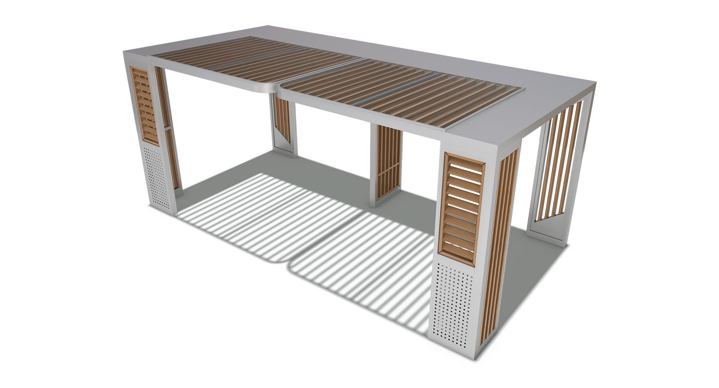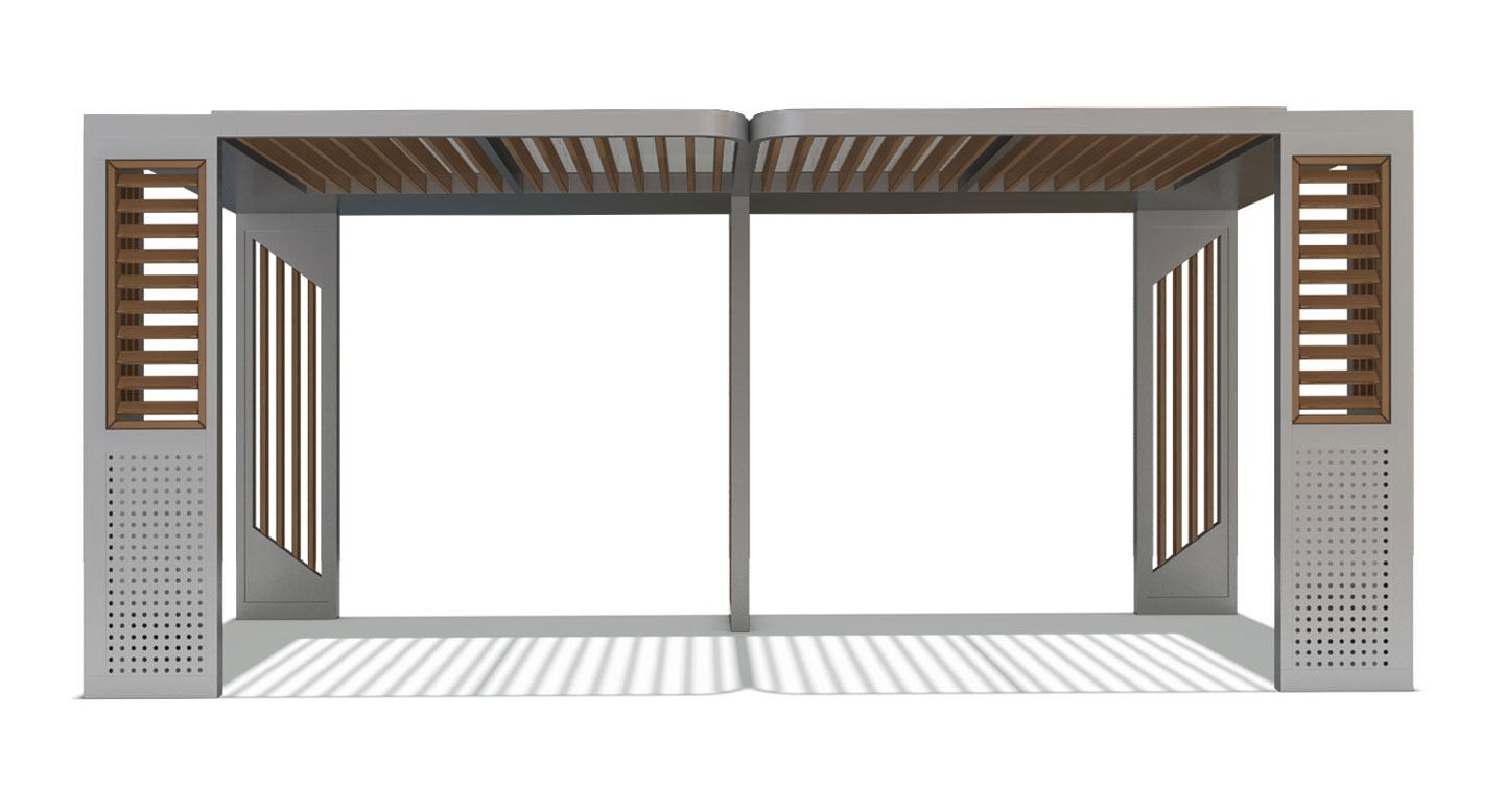루버브리즈 쉘터 (Louver Breeze Shelter)|GC-P-114A 제품목록으로 바로가기 자료 및 바로가기 나라장터 바로연결 도면 다운로드 시공사진 보러가기 기타 기둥과 측면에 다양한 루버 패턴을 적용해 바람과 자연광을 부드럽게 조절하는 개방형 쉼터입니다. 공원, 캠퍼스, 단지 산책로 등에서 사람들의 휴식·소통·이동에 자연스럽게 스며들도록 설계되었습니다. 제품명 루버브리즈 쉘터 (Louver Breeze Shelter)|GC-P-114A 물품식별번호 25639110 규격 6,000 × 3,000 × 2,600(H) 재질 stl, galvanized, hard wood, polycarbonate 루버브리즈 쉘터 (Louver Breeze Shelter)|GC-P-114A 물품식별번호 25639110 규격 6,000 × 3,000 × 2,600(H) 재질 stl, galvanized, hard wood, polycarbonate 기타 기둥과 측면에 다양한 루버 패턴을 적용해 바람과 자연광을 부드럽게 조절하는 개방형 쉼터입니다. 공원, 캠퍼스, 단지 산책로 등에서 사람들의 휴식·소통·이동에 자연스럽게 스며들도록 설계되었습니다. 자료 및 바로가기 나라장터 바로연결 도면 다운로드 시공사진 보러가기