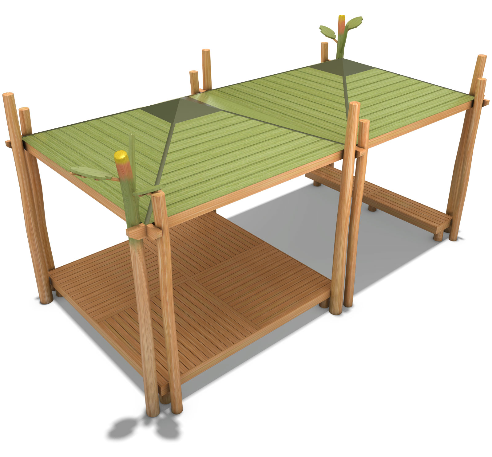 그린 캐노피 퍼걸러(Green Canopy Pergola)|GGP-RO-023A-2 제품목록으로 바로가기 자료 및 바로가기 나라장터 바로연결 도면 다운로드 시공사진 보러가기 기타 자연을 닮은 그린 캐노피와 목재 구조가 어우러져 숲속 그늘처럼 편안한 분위기를 만들며, 분절된 지붕과 데크가 휴식과 소통을 자연스럽게 이어주는 개방형 퍼걸러입니다. 제품명 그린 캐노피 퍼걸러(Green Canopy Pergola)|GGP-RO-023A-2 물품식별번호 25651604 규격 7,990 × 4,210 × 3,500(H) 재질 robinia, hard wood, birch plywood 그린 캐노피 퍼걸러(Green Canopy Pergola)|GGP-RO-023A-2 물품식별번호 25651604 규격 7,990 × 4,210 × 3,500(H) 재질 robinia, hard wood, birch plywood 기타 자연을 닮은 그린 캐노피와 목재 구조가 어우러져 숲속 그늘처럼 편안한 분위기를 만들며, 분절된 지붕과 데크가 휴식과 소통을 자연스럽게 이어주는 개방형 퍼걸러입니다. 자료 및 바로가기 나라장터 바로연결 도면 다운로드 시공사진 보러가기