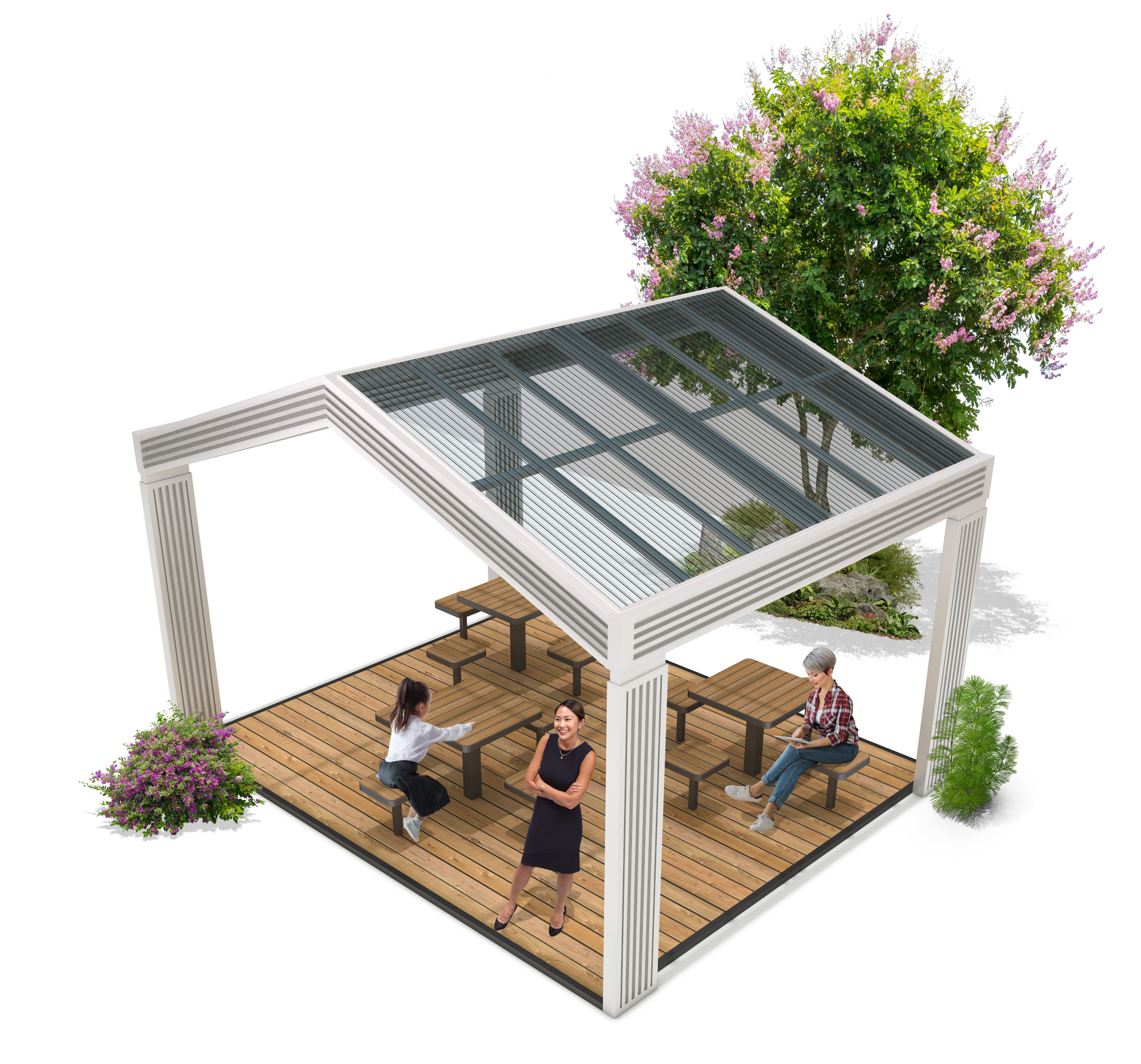 클리어 파고라(clear pergola)|GC-P-733A-1 제품목록으로 바로가기 자료 및 바로가기 나라장터 바로연결 도면 다운로드 시공사진 보러가기 기타 경사지 투명 지붕과 간결한 기둥 프레임으로 자연광과 개방감을 극대화해, 소규모 모임·휴식·대화가 편안하게 이루어지는 표준형 오픈 파고라로 설계했습니다. 제품명 클리어 파고라(clear pergola)|GC-P-733A-1 물품식별번호 25651572 규격 5,000 × 4,000 × 3,570(H) 재질 stl, galvanized, polycarbonate, hpl 클리어 파고라(clear pergola)|GC-P-733A-1 물품식별번호 25651572 규격 5,000 × 4,000 × 3,570(H) 재질 stl, galvanized, polycarbonate, hpl 기타 경사지 투명 지붕과 간결한 기둥 프레임으로 자연광과 개방감을 극대화해, 소규모 모임·휴식·대화가 편안하게 이루어지는 표준형 오픈 파고라로 설계했습니다. 자료 및 바로가기 나라장터 바로연결 도면 다운로드 시공사진 보러가기