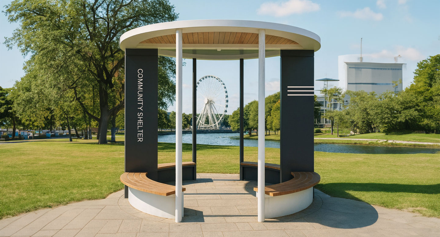 듀얼 하프문 쉼터 (Dual Half-Moon Shelter)|GC-P-334 제품목록으로 바로가기 자료 및 바로가기 나라장터 바로연결 도면 다운로드 시공사진 보러가기 기타 반원형 지붕 두 개를 대비시켜 세련된 리듬감을 주고, 아치형 벤치가 자연스러운 동선과 편안한 휴식을 제공하는 현대적 커뮤니티 쉼터입니다. 제품명 듀얼 하프문 쉼터 (Dual Half-Moon Shelter)|GC-P-334 물품식별번호 25565294 규격 4,100 × 4,000 × 3,000(H) 재질 stl, galvanized, polycarbonate, hpl 듀얼 하프문 쉼터 (Dual Half-Moon Shelter)|GC-P-334 물품식별번호 25565294 규격 4,100 × 4,000 × 3,000(H) 재질 stl, galvanized, polycarbonate, hpl 기타 반원형 지붕 두 개를 대비시켜 세련된 리듬감을 주고, 아치형 벤치가 자연스러운 동선과 편안한 휴식을 제공하는 현대적 커뮤니티 쉼터입니다. 자료 및 바로가기 나라장터 바로연결 도면 다운로드 시공사진 보러가기