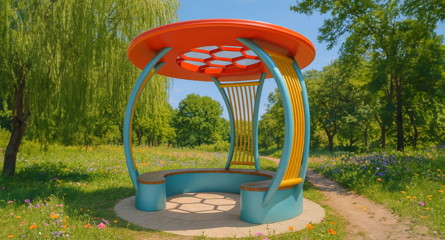 컬러링 돔 쉼터 (Coloring Dome Shelter)|GC-P-316A 제품목록으로 바로가기 자료 및 바로가기 나라장터 바로연결 도면 다운로드 시공사진 보러가기 기타 선명한 색감과 곡선 구조로 밝고 활기 있는 분위기를 연출하며, 원형 벤치와 개방형 상부가 아이들과 가족이 자연스럽게 모여드는 커뮤니티 쉼터입니다. 제품명 컬러링 돔 쉼터 (Coloring Dome Shelter)|GC-P-316A 물품식별번호 25639150 규격 3,900 × 3,900 × 2,600(H) 재질 stl, galvanized, polycarbonate, hard wood 컬러링 돔 쉼터 (Coloring Dome Shelter)|GC-P-316A 물품식별번호 25639150 규격 3,900 × 3,900 × 2,600(H) 재질 stl, galvanized, polycarbonate, hard wood 기타 선명한 색감과 곡선 구조로 밝고 활기 있는 분위기를 연출하며, 원형 벤치와 개방형 상부가 아이들과 가족이 자연스럽게 모여드는 커뮤니티 쉼터입니다. 자료 및 바로가기 나라장터 바로연결 도면 다운로드 시공사진 보러가기