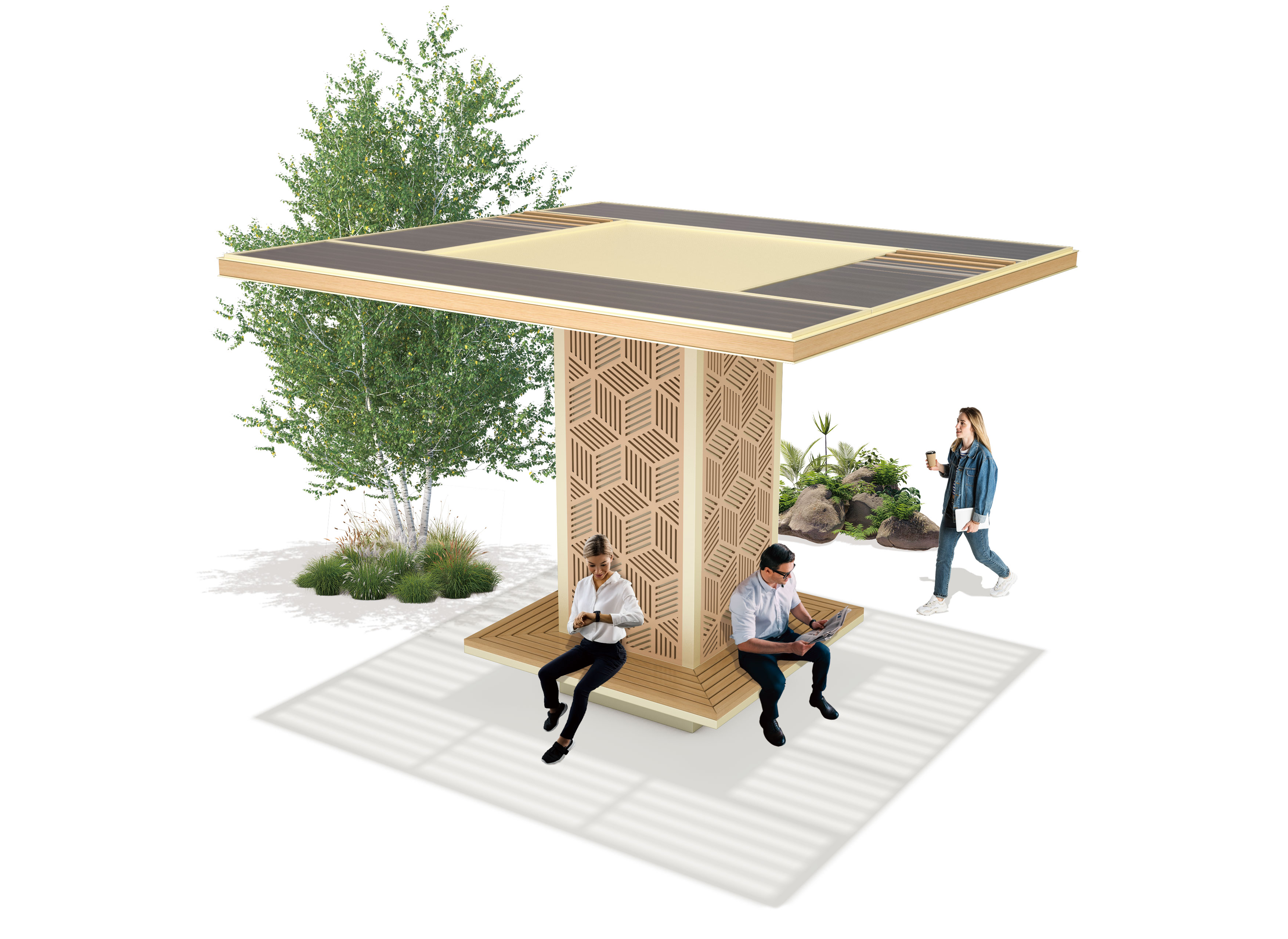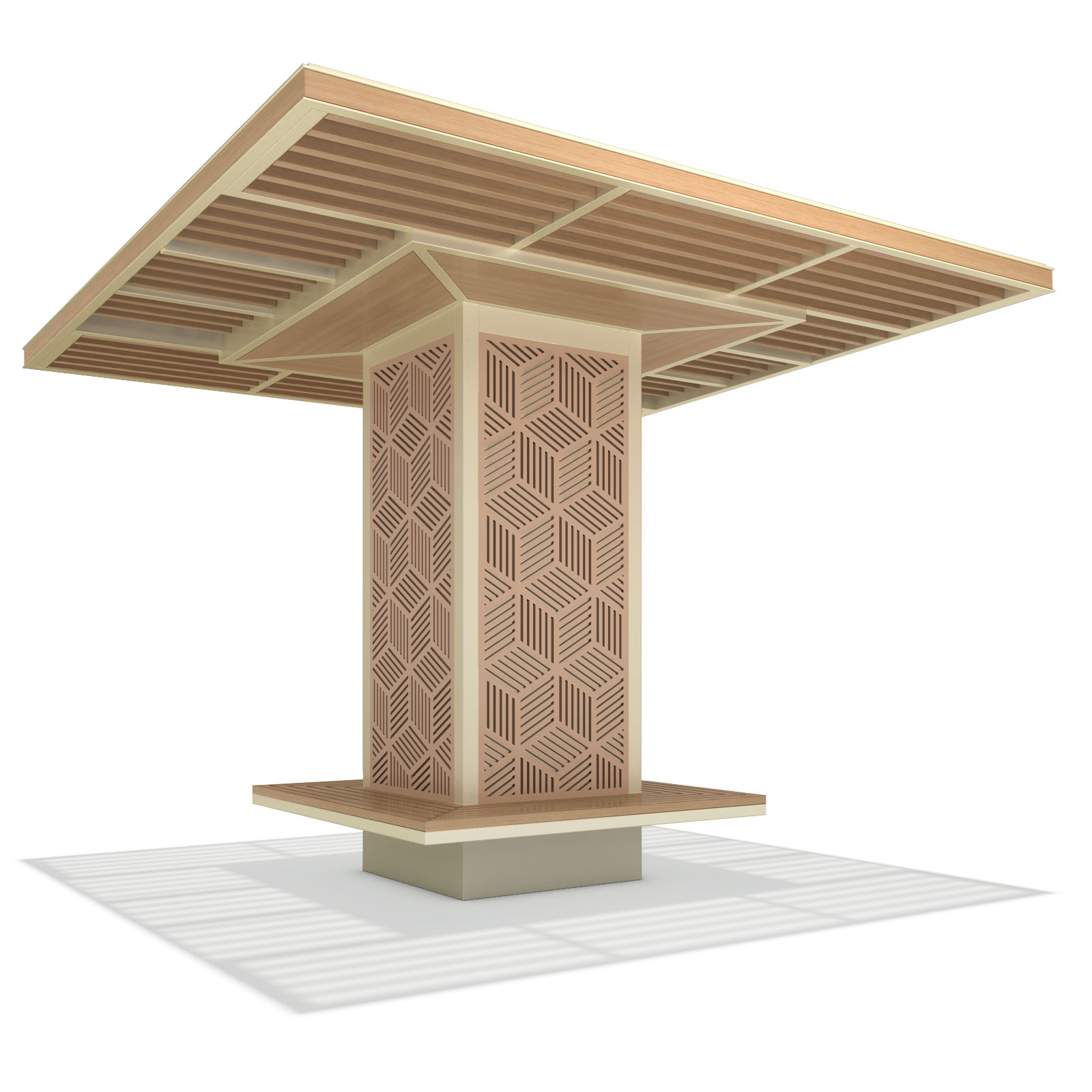 패턴쉼 파빌리온 (Pattern Rest Pavilion)|GC-P-1127A 제품목록으로 바로가기 자료 및 바로가기 나라장터 바로연결 도면 다운로드 시공사진 보러가기 기타 기둥 전체에 반복 패턴을 적용해 시각적 깊이와 그늘 효과를 동시에 구현한 파빌리온입니다. 단정한 사각 캐노피와 통합 벤치를 통해 도심 속에서 머물며 일상적인 휴식을 즐길 수 있는 열린 쉼 공간을 제안합니다. 제품명 패턴쉼 파빌리온 (Pattern Rest Pavilion)|GC-P-1127A 물품식별번호 25651562 규격 3,500 × 3,500 × 2,710(H) 재질 stl, galvanized, polycarbonate, hard wood 패턴쉼 파빌리온 (Pattern Rest Pavilion)|GC-P-1127A 물품식별번호 25651562 규격 3,500 × 3,500 × 2,710(H) 재질 stl, galvanized, polycarbonate, hard wood 기타 기둥 전체에 반복 패턴을 적용해 시각적 깊이와 그늘 효과를 동시에 구현한 파빌리온입니다. 단정한 사각 캐노피와 통합 벤치를 통해 도심 속에서 머물며 일상적인 휴식을 즐길 수 있는 열린 쉼 공간을 제안합니다. 자료 및 바로가기 나라장터 바로연결 도면 다운로드 시공사진 보러가기