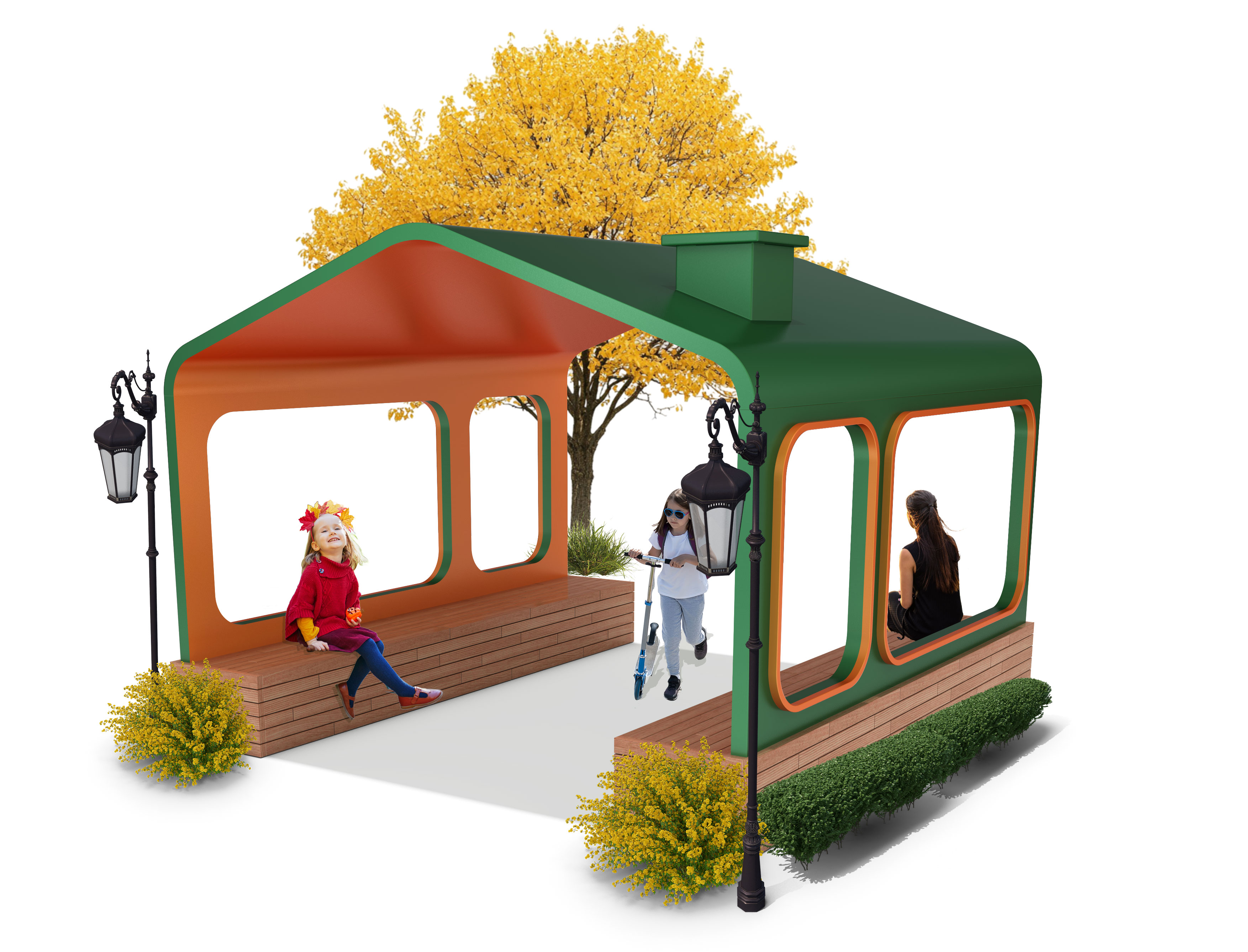 숲길 마차쉼터(Forest path carriage rest area)|GC-P-1152 제품목록으로 바로가기 자료 및 바로가기 나라장터 바로연결 도면 다운로드 시공사진 보러가기 기타 마차를 연상시키는 지붕과 창 프레임으로 이동의 상상을 담아, 아이는 놀이처럼 드나들고 보호자는 앉아 쉬며 자연스럽게 머무를 수 있는 숲속 이야기형 쉼 공간으로 디자인했습니다. 제품명 숲길 마차쉼터(Forest path carriage rest area)|GC-P-1152 물품식별번호 25009683 규격 3,580 × 3,580 × 2,700(H) 재질 stl, galvanized, polycarbonate, hard wood 숲길 마차쉼터(Forest path carriage rest area)|GC-P-1152 물품식별번호 25009683 규격 3,580 × 3,580 × 2,700(H) 재질 stl, galvanized, polycarbonate, hard wood 기타 마차를 연상시키는 지붕과 창 프레임으로 이동의 상상을 담아, 아이는 놀이처럼 드나들고 보호자는 앉아 쉬며 자연스럽게 머무를 수 있는 숲속 이야기형 쉼 공간으로 디자인했습니다. 자료 및 바로가기 나라장터 바로연결 도면 다운로드 시공사진 보러가기