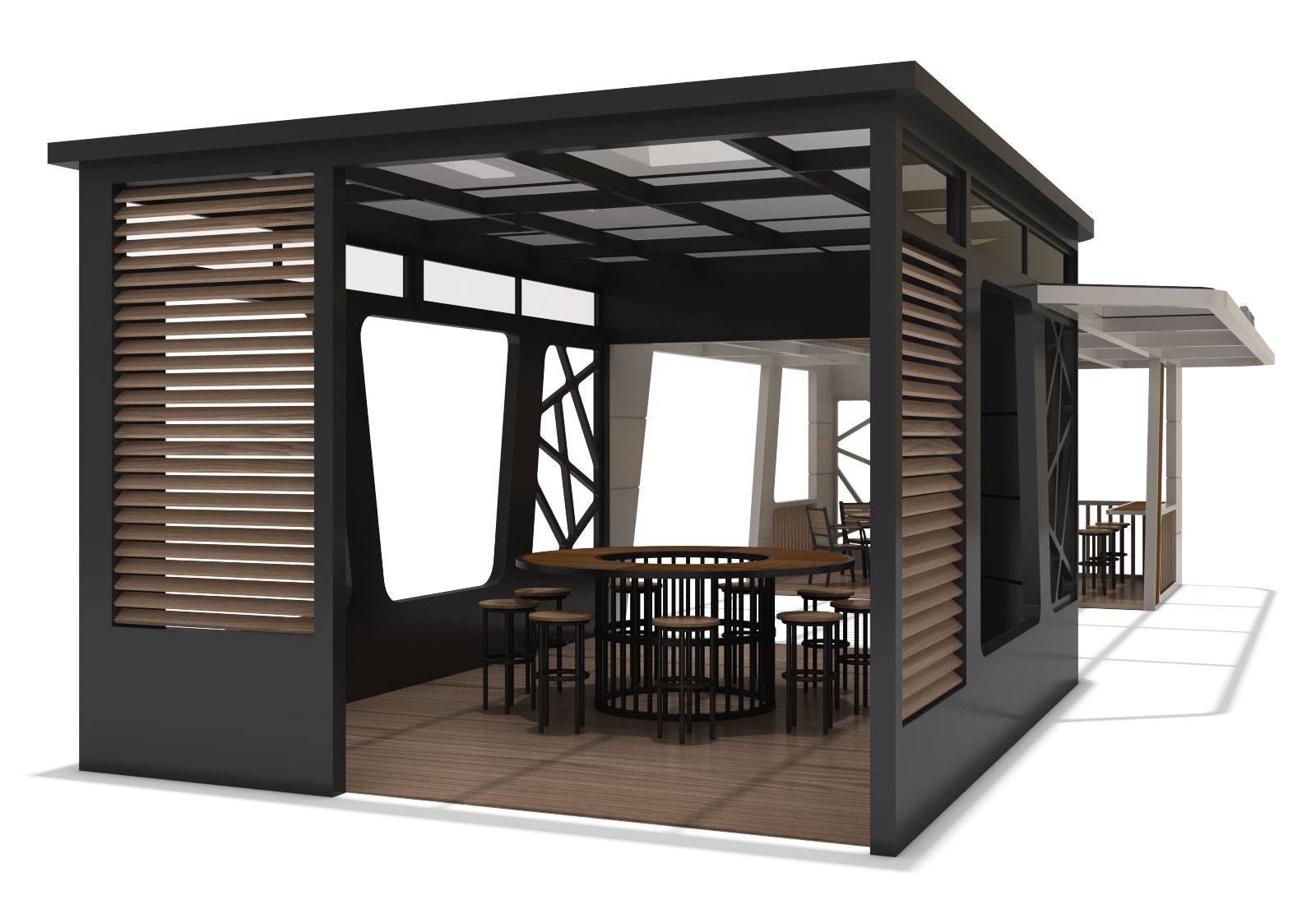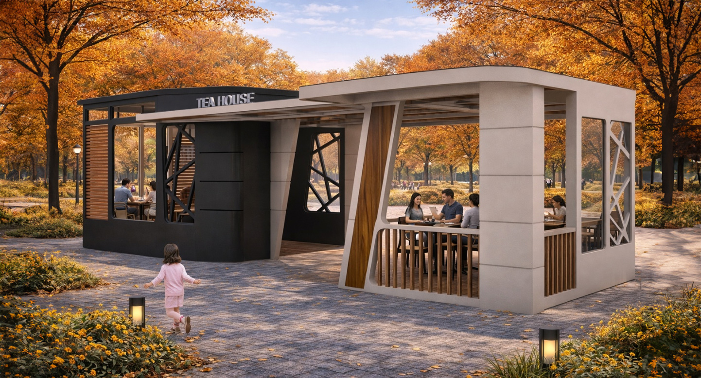 듀얼컨트라스트 (Dual Contrast)|GC-TH-011 제품목록으로 바로가기 자료 및 바로가기 나라장터 바로연결 도면 다운로드 시공사진 보러가기 기타 블랙&우드와 화이트 컬러의 두 공간이 하나의 지붕 아래 연결된 듀얼컨트라스트. 대비된 분위기 속에서도 유사한 구조미가 조화를 이루는 티하우스입니다. 제품명 듀얼컨트라스트 (Dual Contrast)|GC-TH-011 물품식별번호 25544834 규격 12,200 × 5,050 × 3,200(H) 재질 stl, glavannized, polycarbonate, hard wood, hpl, 강화유리 듀얼컨트라스트 (Dual Contrast)|GC-TH-011 물품식별번호 25544834 규격 12,200 × 5,050 × 3,200(H) 재질 stl, glavannized, polycarbonate, hard wood, hpl, 강화유리 기타 블랙&우드와 화이트 컬러의 두 공간이 하나의 지붕 아래 연결된 듀얼컨트라스트. 대비된 분위기 속에서도 유사한 구조미가 조화를 이루는 티하우스입니다. 자료 및 바로가기 나라장터 바로연결 도면 다운로드 시공사진 보러가기