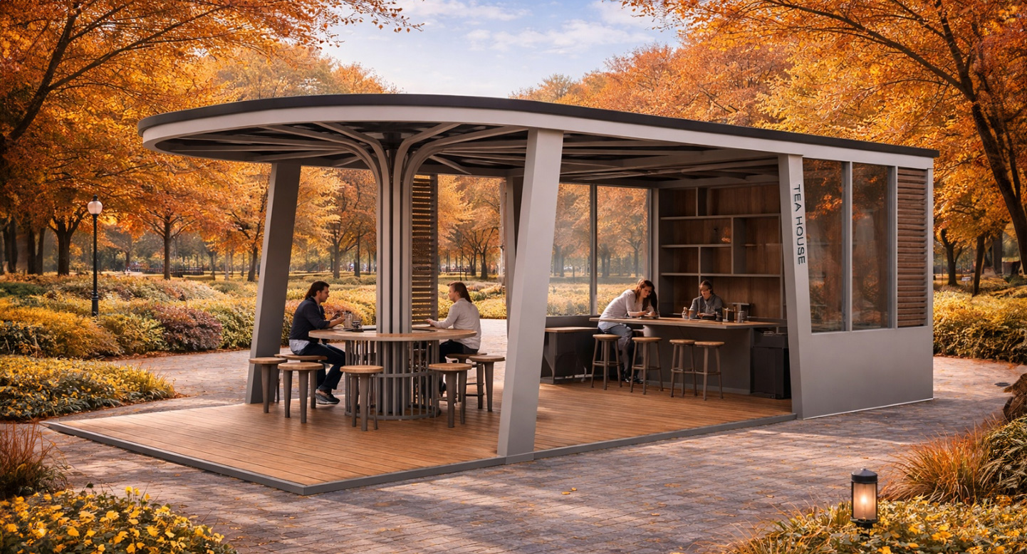 쉐이드앤라이트 (Shade & Light) |GC-TH-008 제품목록으로 바로가기 자료 및 바로가기 나라장터 바로연결 도면 다운로드 시공사진 보러가기 기타 개방된 빛의 공간과 조용한 그늘 공간이 공존하는 티하우스. 유리 루프와 우드 루버 지붕이 자연스럽게 대비되어 다양한 휴식을 제공합니다. 제품명 쉐이드앤라이트 (Shade & Light) |GC-TH-008 물품식별번호 25544831 규격 10,500 × 4,000 × 3,150(H) 재질 stl, glavannized, polycarbonate, hard wood, hpl, 강화유리 쉐이드앤라이트 (Shade & Light) |GC-TH-008 물품식별번호 25544831 규격 10,500 × 4,000 × 3,150(H) 재질 stl, glavannized, polycarbonate, hard wood, hpl, 강화유리 기타 개방된 빛의 공간과 조용한 그늘 공간이 공존하는 티하우스. 유리 루프와 우드 루버 지붕이 자연스럽게 대비되어 다양한 휴식을 제공합니다. 자료 및 바로가기 나라장터 바로연결 도면 다운로드 시공사진 보러가기