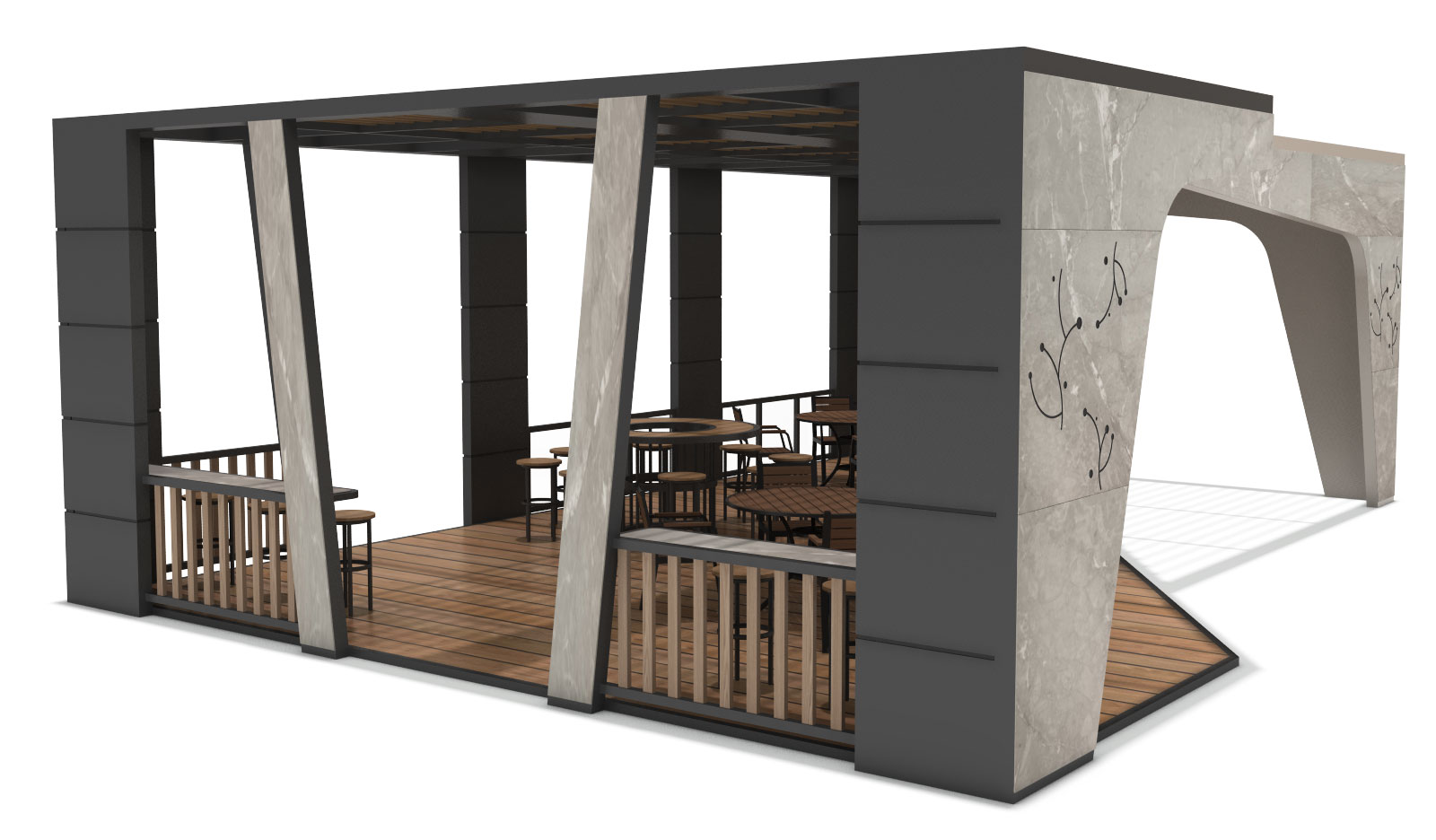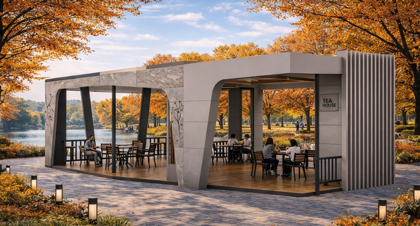 루미엣지 (Lumi Edge)|GC-TH-005 제품목록으로 바로가기 자료 및 바로가기 나라장터 바로연결 도면 다운로드 시공사진 보러가기 기타 사선형 개방 입면과 대리석 패턴 외벽이 조화를 이루는 고급형 쉼터. 블랙과 우드톤의 절제된 조합으로 구조미와 개방감을 동시에 살렸습니다. 제품명 루미엣지 (Lumi Edge)|GC-TH-005 물품식별번호 25544829 규격 10,100 × 7,000 × 3,300(H) 재질 stl, glavannized, polycarbonate, hard wood, hpl, 강화유리 루미엣지 (Lumi Edge)|GC-TH-005 물품식별번호 25544829 규격 10,100 × 7,000 × 3,300(H) 재질 stl, glavannized, polycarbonate, hard wood, hpl, 강화유리 기타 사선형 개방 입면과 대리석 패턴 외벽이 조화를 이루는 고급형 쉼터. 블랙과 우드톤의 절제된 조합으로 구조미와 개방감을 동시에 살렸습니다. 자료 및 바로가기 나라장터 바로연결 도면 다운로드 시공사진 보러가기