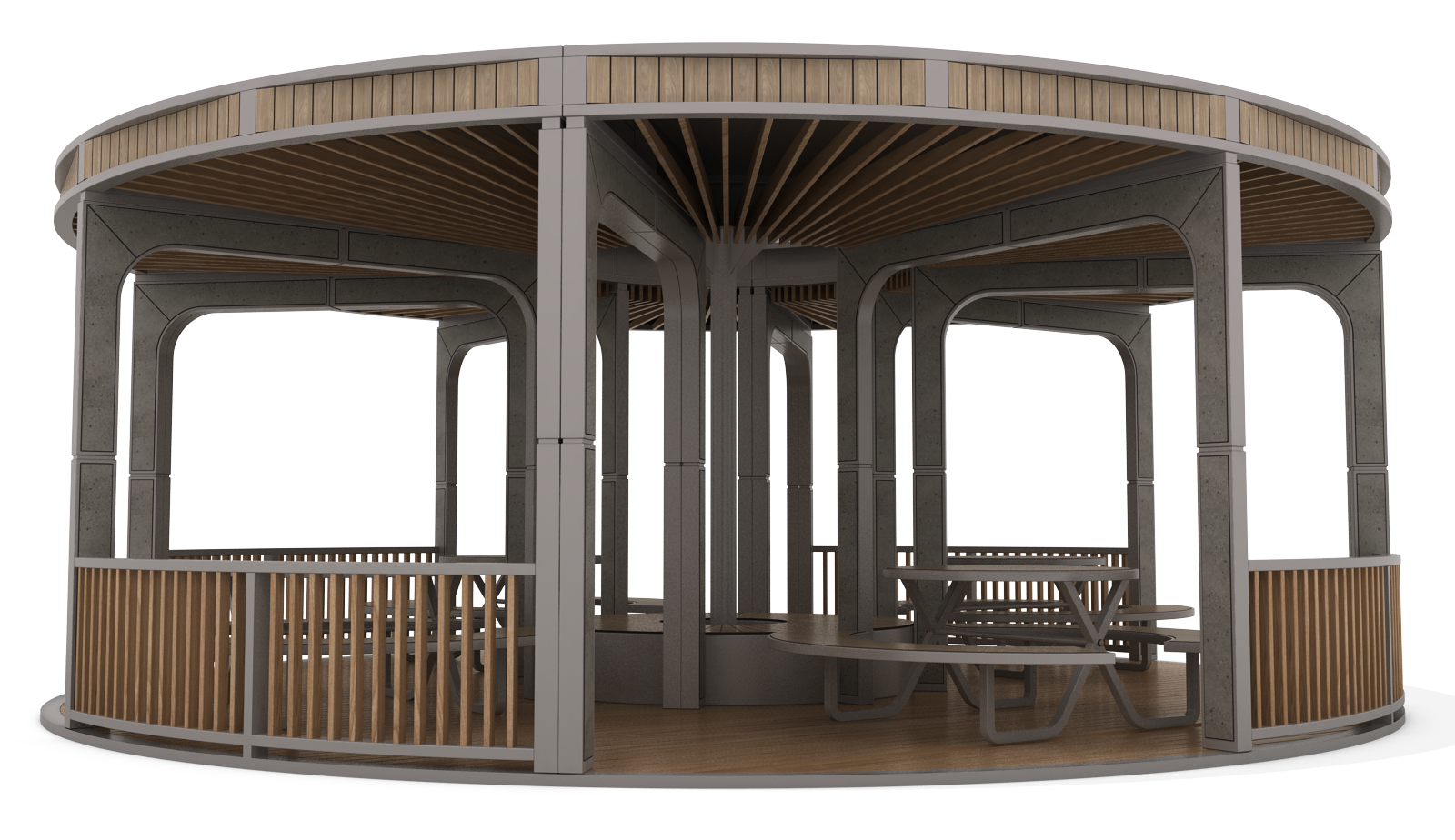 센트리아 (Centria) |GC-P-1710 제품목록으로 바로가기 자료 및 바로가기 나라장터 바로연결 도면 다운로드 시공사진 보러가기 기타 중앙의 원형 데크를 중심으로 테이블이 균형 있게 배치된 구조로, 벽체 없이 기둥만으로 이뤄진 개방형 설계가 자유로운 머무름을 유도합니다. 제품명 센트리아 (Centria) |GC-P-1710 물품식별번호 25587558 규격 8,000 × 8,000 × 3,050(H) 재질 stl, galvanized, polycarbonate, hard wood, hpl 센트리아 (Centria) |GC-P-1710 물품식별번호 25587558 규격 8,000 × 8,000 × 3,050(H) 재질 stl, galvanized, polycarbonate, hard wood, hpl 기타 중앙의 원형 데크를 중심으로 테이블이 균형 있게 배치된 구조로, 벽체 없이 기둥만으로 이뤄진 개방형 설계가 자유로운 머무름을 유도합니다. 자료 및 바로가기 나라장터 바로연결 도면 다운로드 시공사진 보러가기