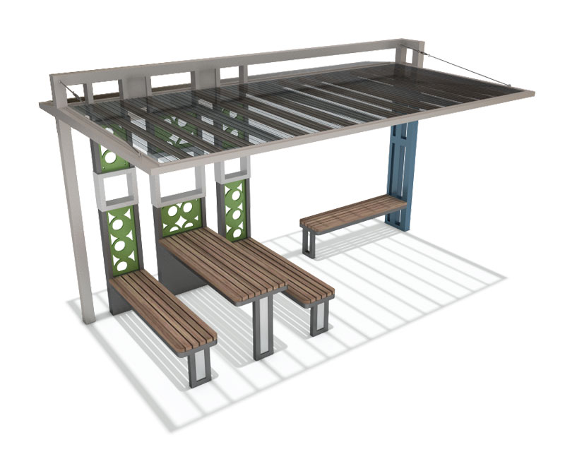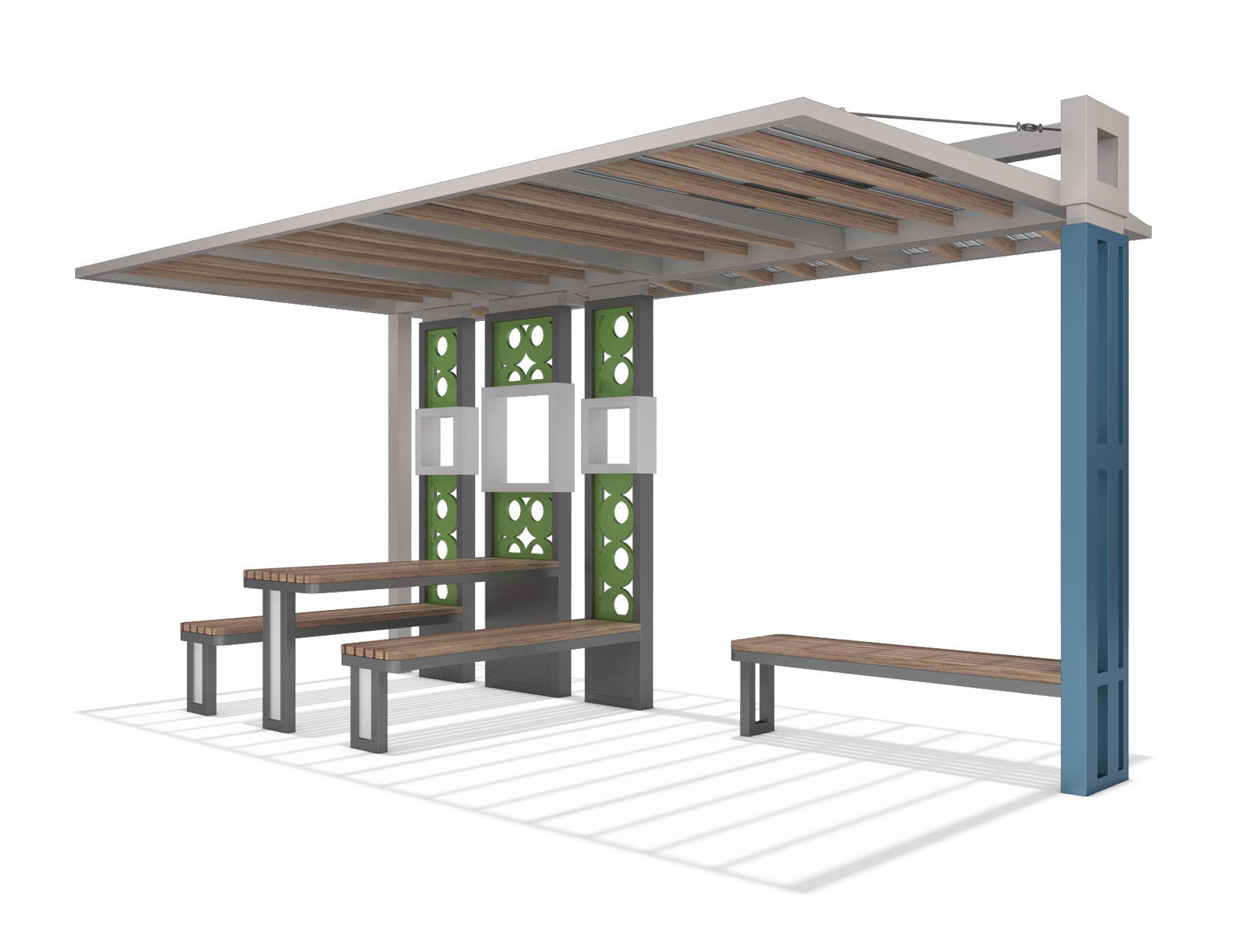 플로우라인 쉘터 (Flow Line Shelter)|GC-P-1142A 제품목록으로 바로가기 자료 및 바로가기 나라장터 바로연결 도면 다운로드 시공사진 보러가기 기타 기둥 패널의 원형 패턴으로 경쾌한 리듬감을 더하고, 다양한 높이의 좌석과 루버 차양으로 밝고 편안한 휴식 환경을 제공하는 쉼터입니다. 제품명 플로우라인 쉘터 (Flow Line Shelter)|GC-P-1142A 물품식별번호 25639159 규격 4,600 × 2,600 × 2,700(H) 재질 stl, galvanized, polycarbonate, hard wood, hpl 플로우라인 쉘터 (Flow Line Shelter)|GC-P-1142A 물품식별번호 25639159 규격 4,600 × 2,600 × 2,700(H) 재질 stl, galvanized, polycarbonate, hard wood, hpl 기타 기둥 패널의 원형 패턴으로 경쾌한 리듬감을 더하고, 다양한 높이의 좌석과 루버 차양으로 밝고 편안한 휴식 환경을 제공하는 쉼터입니다. 자료 및 바로가기 나라장터 바로연결 도면 다운로드 시공사진 보러가기