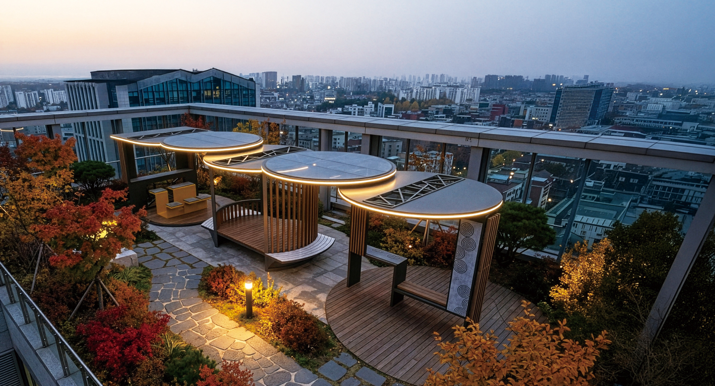 서클 라이트 퍼걸러(Circle Light Pergola)|GC-PL-440 제품목록으로 바로가기 자료 및 바로가기 나라장터 바로연결 도면 다운로드 시공사진 보러가기 기타 원형 모듈이 연속적으로 이어진 구조에 LED 퍼걸러 조명을 결합해, 낮에는 그늘 쉼터로 밤에는 안전하고 감성적인 빛의 동선으로 기능하는 복합 휴식 공간입니다. 제품명 서클 라이트 퍼걸러(Circle Light Pergola)|GC-PL-440 물품식별번호 25415769 규격 9,960 × 2,500 × 2,525(H) 재질 stl, galvanized, polycarbonate, hard wood, hpl 서클 라이트 퍼걸러(Circle Light Pergola)|GC-PL-440 물품식별번호 25415769 규격 9,960 × 2,500 × 2,525(H) 재질 stl, galvanized, polycarbonate, hard wood, hpl 기타 원형 모듈이 연속적으로 이어진 구조에 LED 퍼걸러 조명을 결합해, 낮에는 그늘 쉼터로 밤에는 안전하고 감성적인 빛의 동선으로 기능하는 복합 휴식 공간입니다. 자료 및 바로가기 나라장터 바로연결 도면 다운로드 시공사진 보러가기