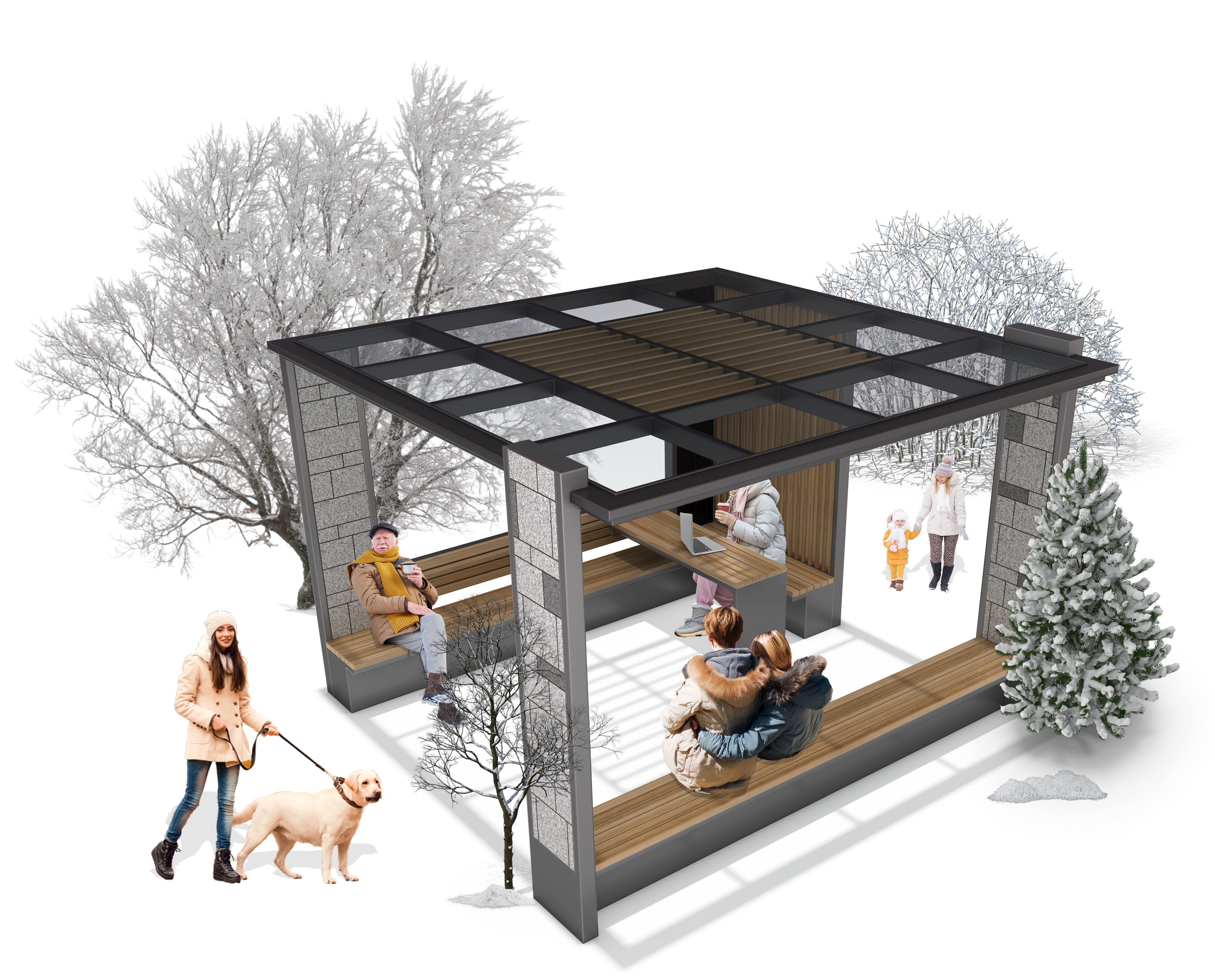 윈터 브릭 쉼터 (Winter Brick Shelter)|GC-P-1187 제품목록으로 바로가기 자료 및 바로가기 나라장터 바로연결 도면 다운로드 시공사진 보러가기 기타 벽체에는 브릭 패턴과 우드 슬랫을 적용해 겨울 경관과 조화를 이루는 감성형 쉼터입니다. 개방감 있는 구조와 넉넉한 벤치는 가족·이웃 간 휴식과 소통을 자연스럽게 만들어줍니다. 제품명 윈터 브릭 쉼터 (Winter Brick Shelter)|GC-P-1187 물품식별번호 25540492 규격 3,800 × 3,900 × 2,700(H) 재질 stl, galvanized, polycarbonate, hard wood, hpl 윈터 브릭 쉼터 (Winter Brick Shelter)|GC-P-1187 물품식별번호 25540492 규격 3,800 × 3,900 × 2,700(H) 재질 stl, galvanized, polycarbonate, hard wood, hpl 기타 벽체에는 브릭 패턴과 우드 슬랫을 적용해 겨울 경관과 조화를 이루는 감성형 쉼터입니다. 개방감 있는 구조와 넉넉한 벤치는 가족·이웃 간 휴식과 소통을 자연스럽게 만들어줍니다. 자료 및 바로가기 나라장터 바로연결 도면 다운로드 시공사진 보러가기