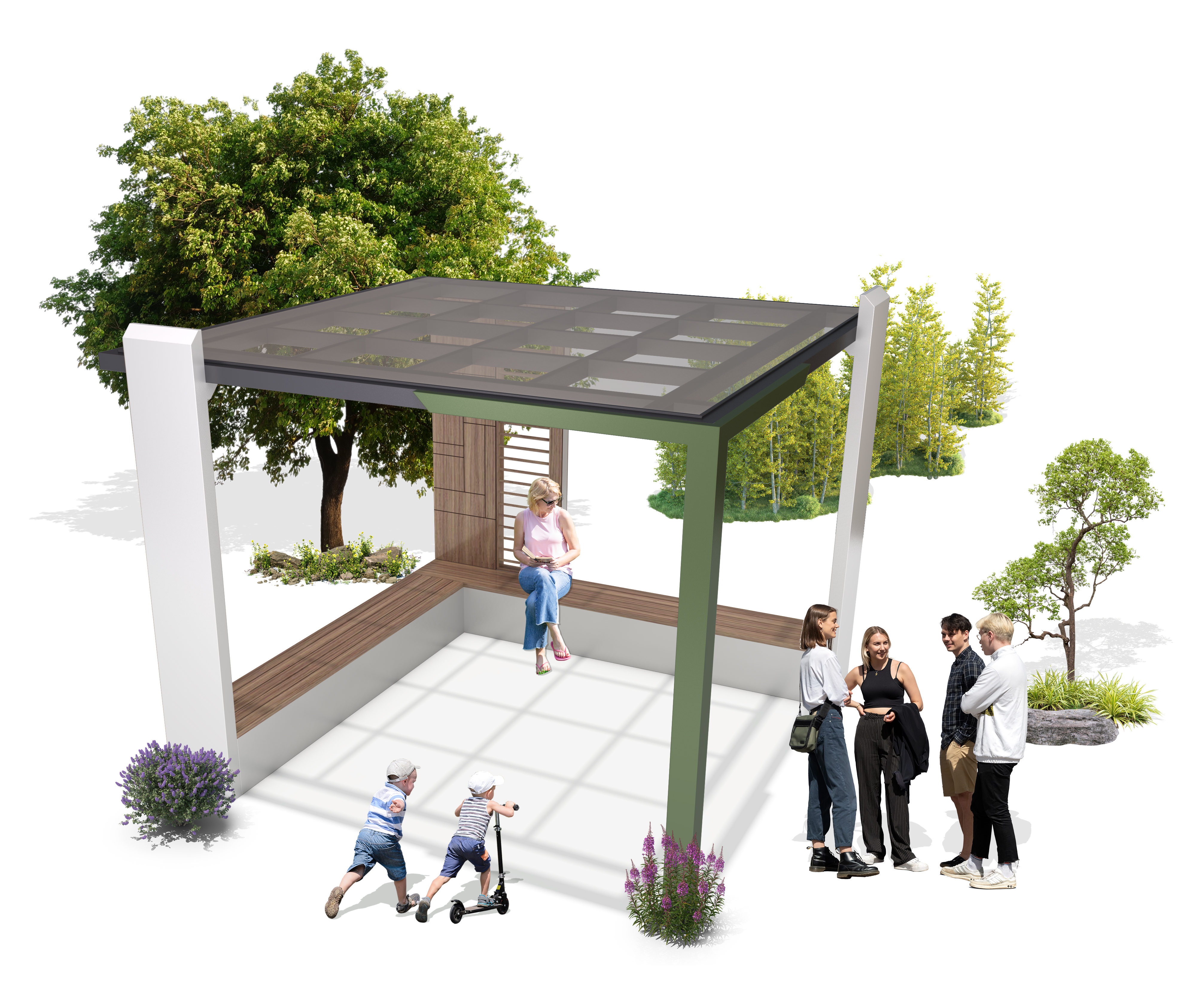 커뮤니티 그린 쉼터 (Community Green Shelter)|GC-P-191 제품목록으로 바로가기 자료 및 바로가기 나라장터 바로연결 도면 다운로드 시공사진 보러가기 기타 화이트 프레임과 그린 포인트가 어우러진 개방형 쉼터로, 자연 채광과 시원한 개방감을 제공합니다. 주민 휴식, 모임, 소통이 자연스럽게 이루어지는 커뮤니티형 공간입니다. 제품명 커뮤니티 그린 쉼터 (Community Green Shelter)|GC-P-191 물품식별번호 24751525 규격 3,900 × 3,900 × 3,000(H) 재질 stl, hard wood, galvanized, polycarbonate, hpl 커뮤니티 그린 쉼터 (Community Green Shelter)|GC-P-191 물품식별번호 24751525 규격 3,900 × 3,900 × 3,000(H) 재질 stl, hard wood, galvanized, polycarbonate, hpl 기타 화이트 프레임과 그린 포인트가 어우러진 개방형 쉼터로, 자연 채광과 시원한 개방감을 제공합니다. 주민 휴식, 모임, 소통이 자연스럽게 이루어지는 커뮤니티형 공간입니다. 자료 및 바로가기 나라장터 바로연결 도면 다운로드 시공사진 보러가기