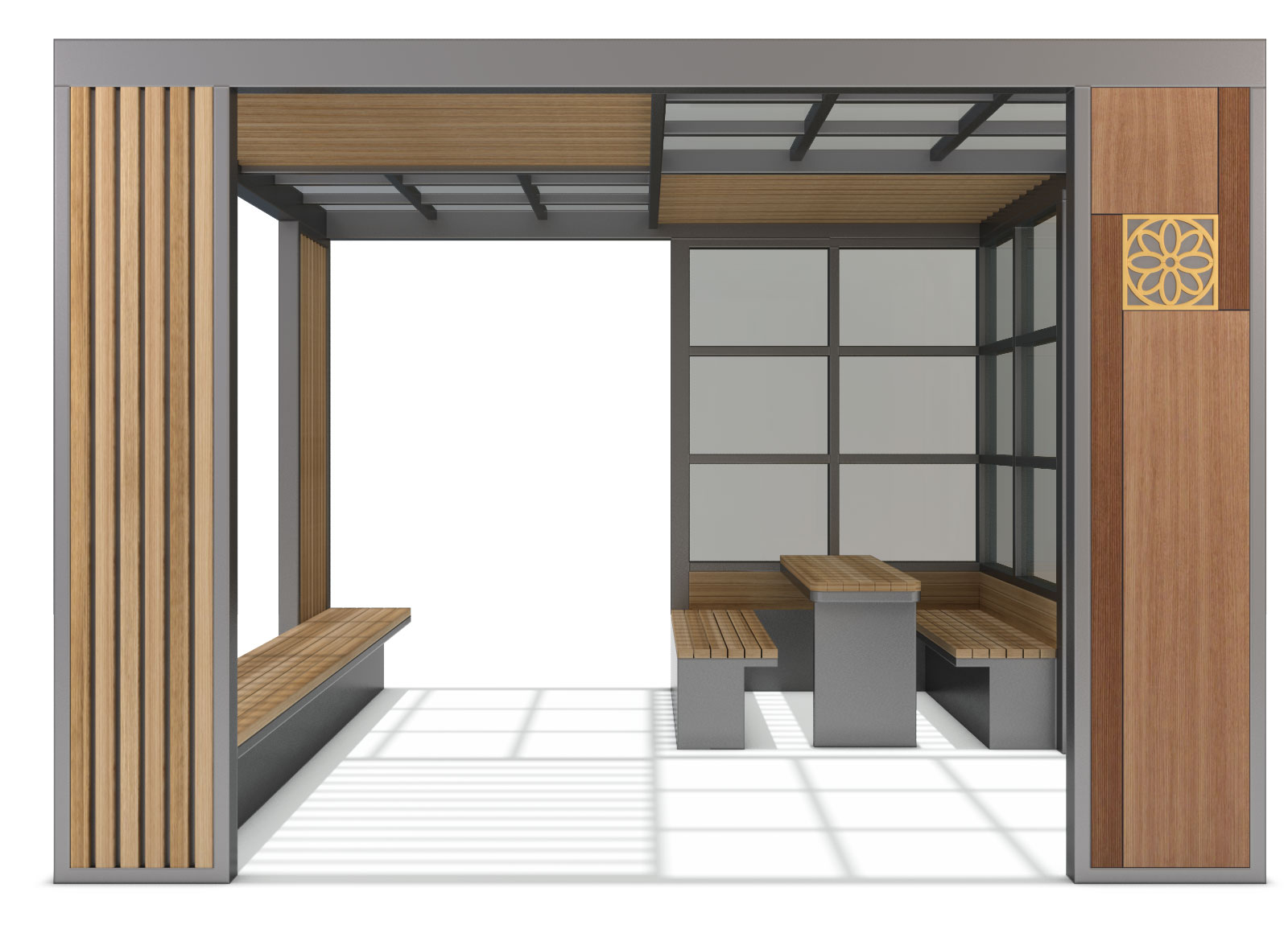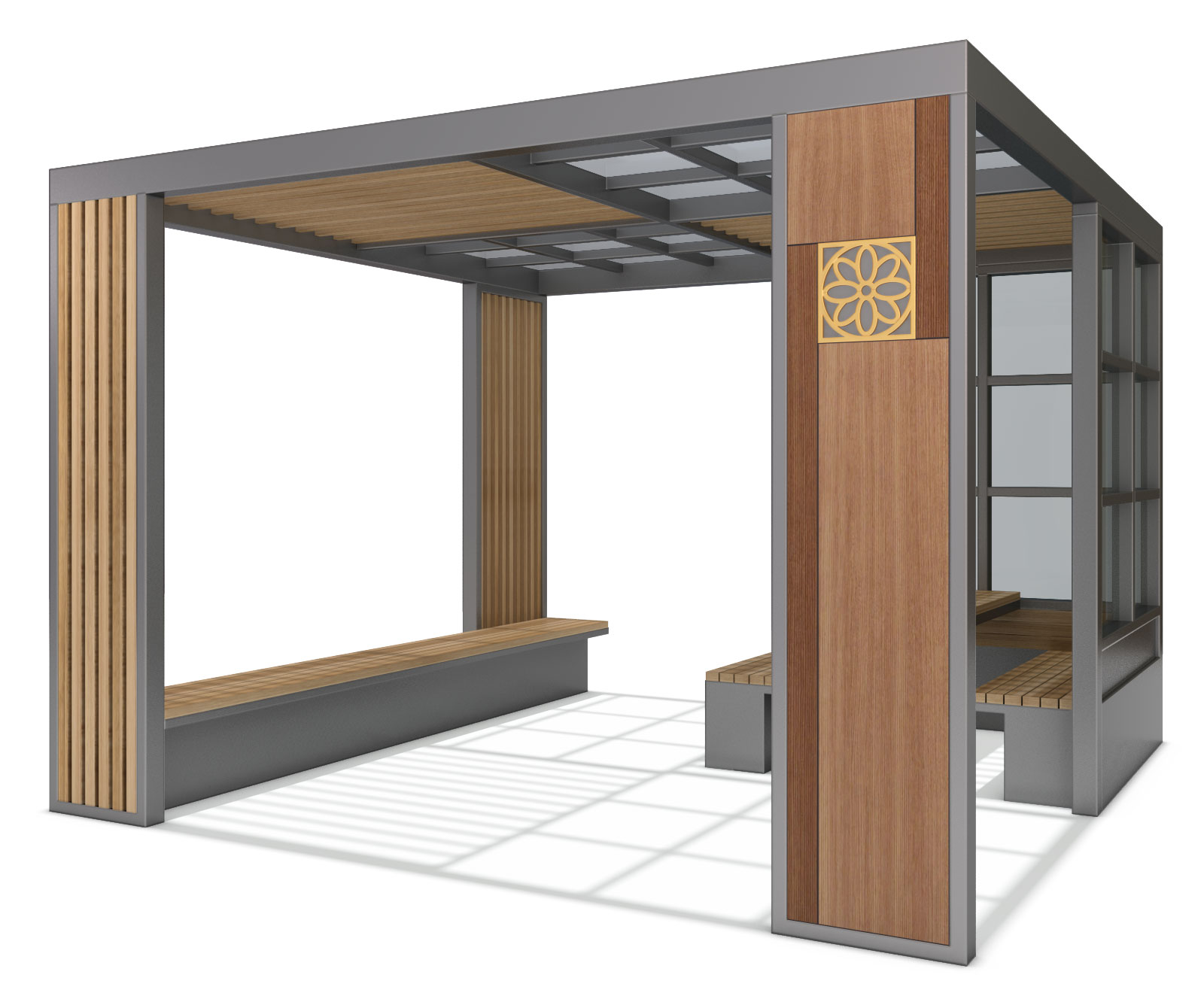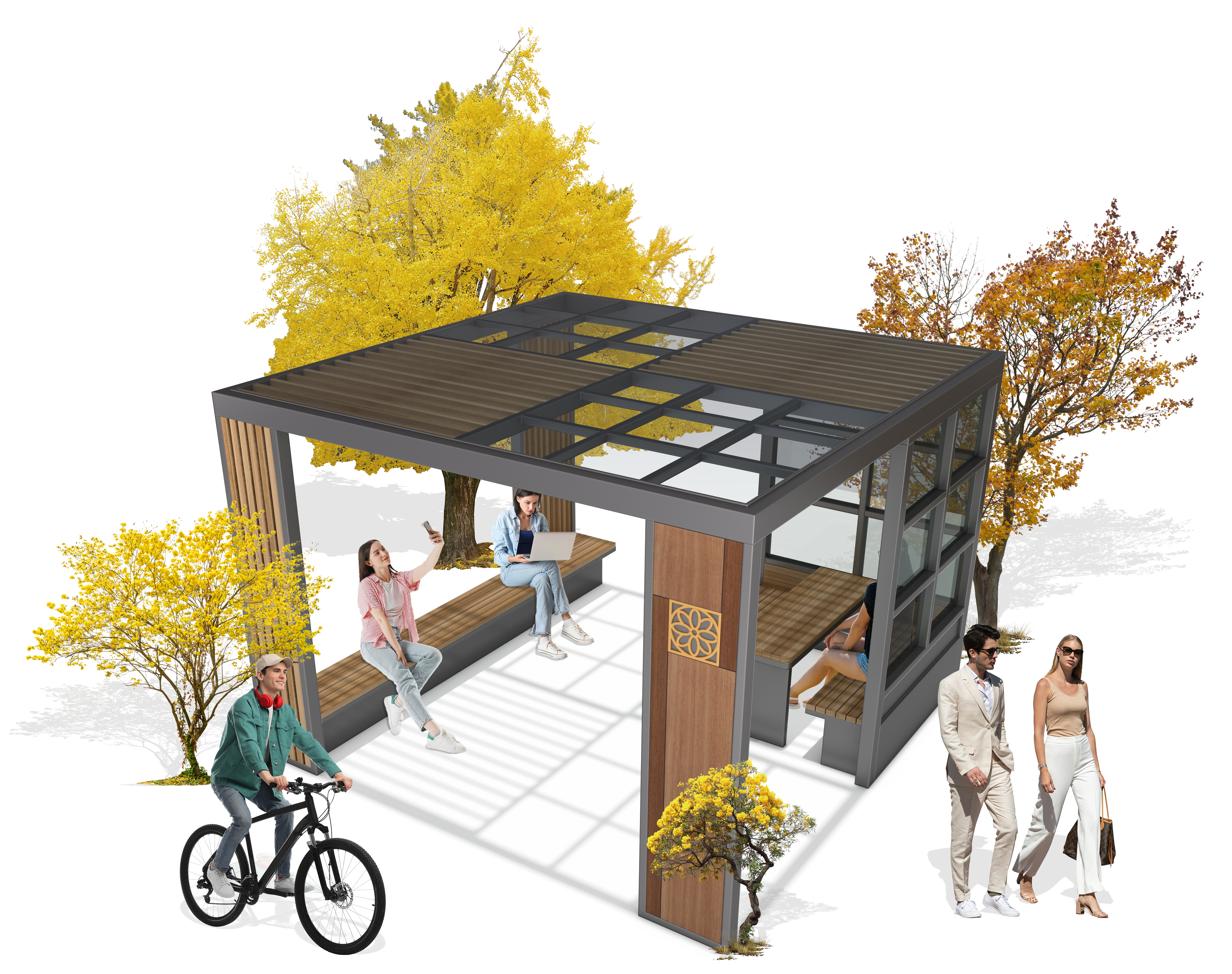 오텀 큐브 쉼터 (Autumn Cube Shelter)|GC-P-1197 제품목록으로 바로가기 자료 및 바로가기 나라장터 바로연결 도면 다운로드 시공사진 보러가기 기타 모던 프레임과 우드 슬랫이 조화를 이루어 따뜻한 계절감을 제공하는 커뮤니티 쉼터입니다. 사방으로 개방된 구조로 자연채광이 풍부하며, 휴식·만남·소통에 적합한 다목적 공간입니다. 제품명 오텀 큐브 쉼터 (Autumn Cube Shelter)|GC-P-1197 물품식별번호 25565420 규격 3,800 × 3,800 × 2,650(H) 재질 stl, galvanized, polycarbonate, hard wood, hpl 오텀 큐브 쉼터 (Autumn Cube Shelter)|GC-P-1197 물품식별번호 25565420 규격 3,800 × 3,800 × 2,650(H) 재질 stl, galvanized, polycarbonate, hard wood, hpl 기타 모던 프레임과 우드 슬랫이 조화를 이루어 따뜻한 계절감을 제공하는 커뮤니티 쉼터입니다. 사방으로 개방된 구조로 자연채광이 풍부하며, 휴식·만남·소통에 적합한 다목적 공간입니다. 자료 및 바로가기 나라장터 바로연결 도면 다운로드 시공사진 보러가기