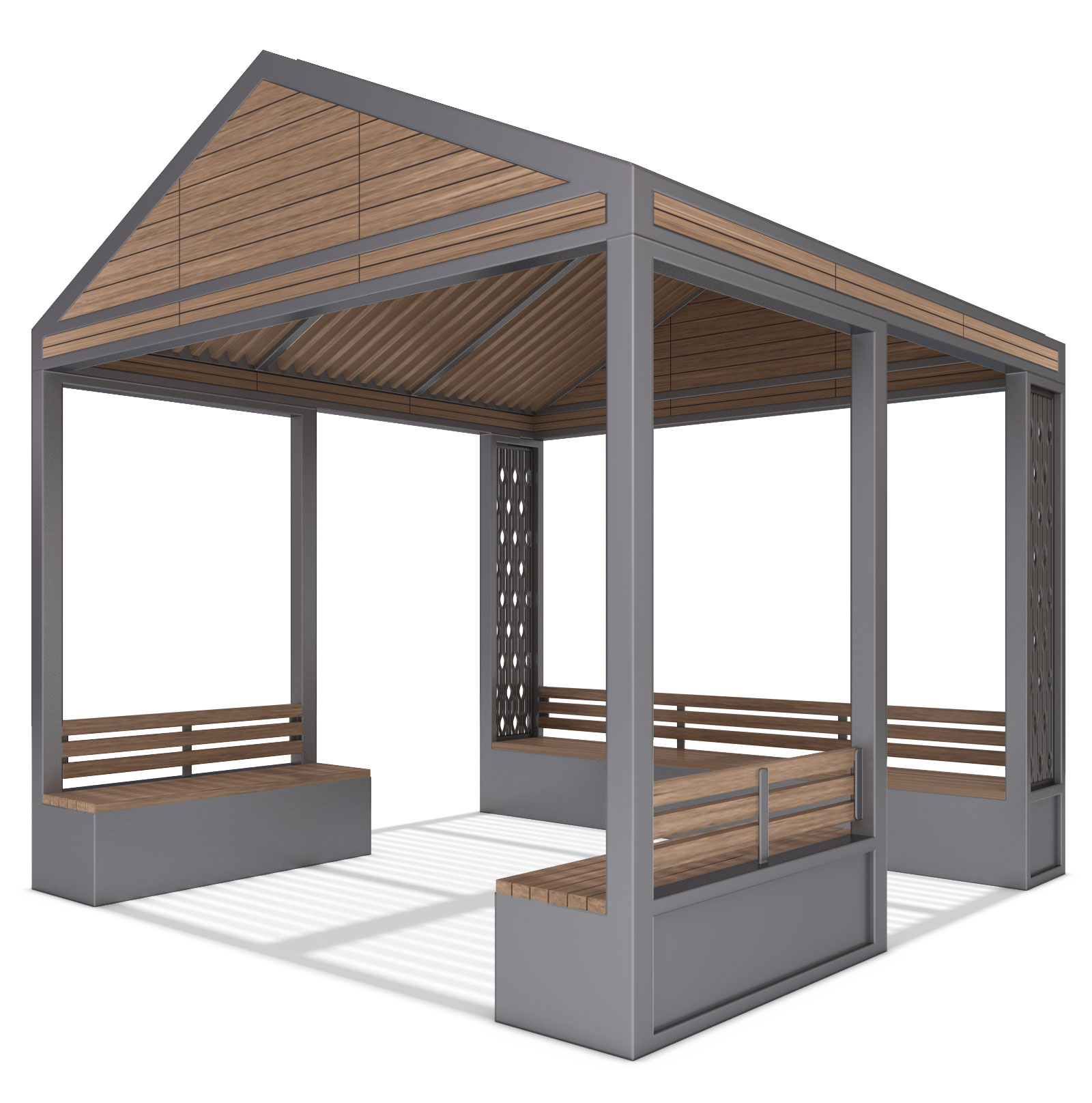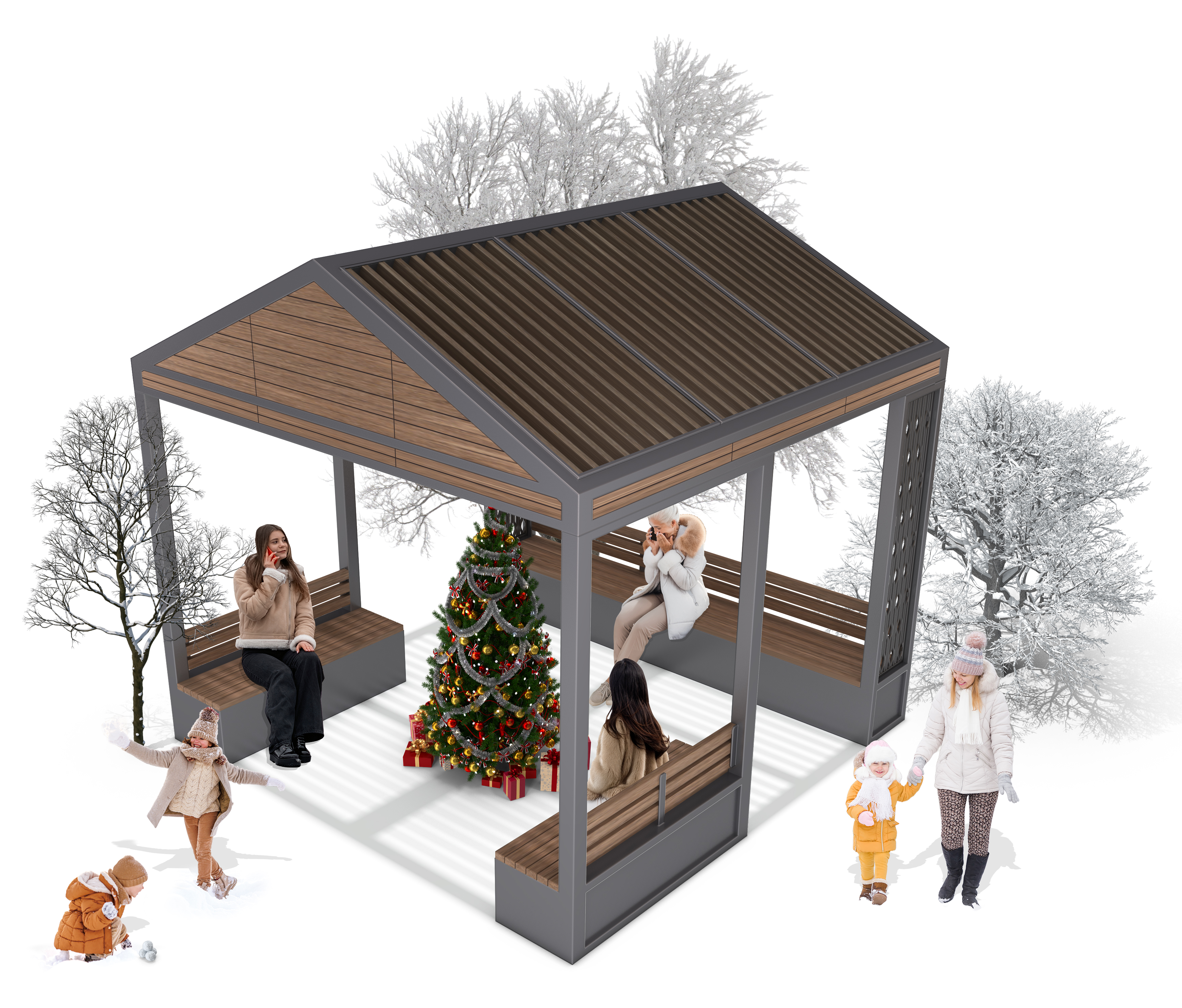 윈터캐빈 퍼걸러 (Winter Cabin Pergola)|GC-P-2102 제품목록으로 바로가기 자료 및 바로가기 나라장터 바로연결 도면 다운로드 시공사진 보러가기 기타 경사지붕과 우드 루버를 결합해 따뜻한 캐빈 분위기를 담았으며, 겨울 환경에서도 편안한 휴식과 소통이 가능한 아늑한 쉼터로 설계된 퍼걸러입니다. 제품명 윈터캐빈 퍼걸러 (Winter Cabin Pergola)|GC-P-2102 물품식별번호 25565425 규격 3,500 × 3,500 × 3,416(H) 재질 stl, galvanized, polycarbonate, hard wood, hpl 윈터캐빈 퍼걸러 (Winter Cabin Pergola)|GC-P-2102 물품식별번호 25565425 규격 3,500 × 3,500 × 3,416(H) 재질 stl, galvanized, polycarbonate, hard wood, hpl 기타 경사지붕과 우드 루버를 결합해 따뜻한 캐빈 분위기를 담았으며, 겨울 환경에서도 편안한 휴식과 소통이 가능한 아늑한 쉼터로 설계된 퍼걸러입니다. 자료 및 바로가기 나라장터 바로연결 도면 다운로드 시공사진 보러가기