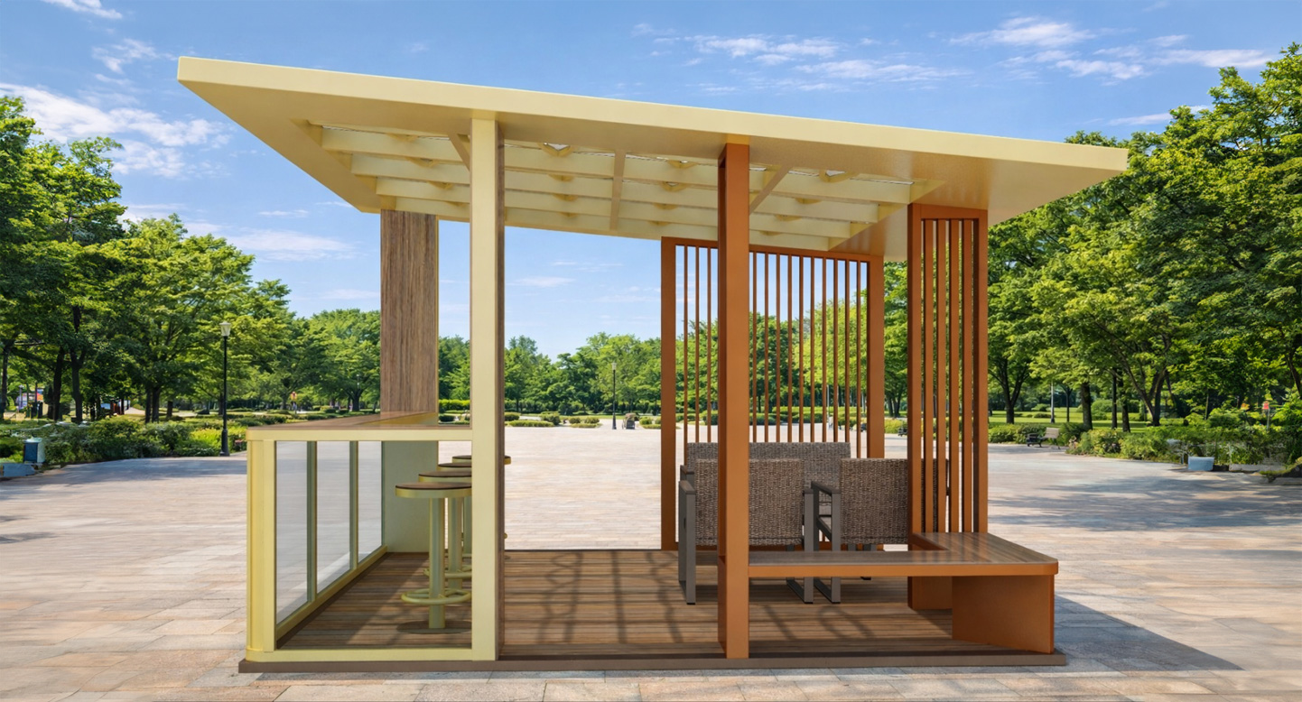라운드쉼 파빌리온 (Round Shim Pavilion)|GC-P-188 제품목록으로 바로가기 자료 및 바로가기 나라장터 바로연결 도면 다운로드 시공사진 보러가기 기타 넓은 처마와 개방형 공간이 편안한 휴식을 제공하며, 목재 데크와 좌석 구성이 커뮤니티 활동과 일상 휴식을 자연스럽게 지원하는 공원·단지형 쉼터입니다. 제품명 라운드쉼 파빌리온 (Round Shim Pavilion)|GC-P-188 물품식별번호 24751523 규격 4,000 × 3,993 × 2,600(H) 재질 stl, hard wood, galvanized, polycarbonate, hpl 라운드쉼 파빌리온 (Round Shim Pavilion)|GC-P-188 물품식별번호 24751523 규격 4,000 × 3,993 × 2,600(H) 재질 stl, hard wood, galvanized, polycarbonate, hpl 기타 넓은 처마와 개방형 공간이 편안한 휴식을 제공하며, 목재 데크와 좌석 구성이 커뮤니티 활동과 일상 휴식을 자연스럽게 지원하는 공원·단지형 쉼터입니다. 자료 및 바로가기 나라장터 바로연결 도면 다운로드 시공사진 보러가기