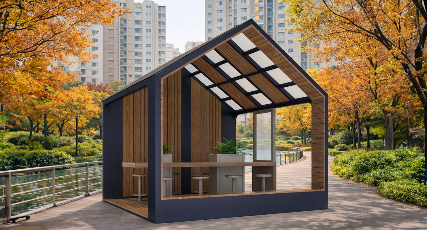 어텀쉼 파빌리온 (Autumn Shim Pavilion)|GC-P-189 제품목록으로 바로가기 자료 및 바로가기 나라장터 바로연결 도면 다운로드 시공사진 보러가기 기타 가을 풍경과 어우러지는 개방형 쉼터로, 목재 데크와 차양 구조가 휴식과 놀이를 자연스럽게 연결합니다. 가족·아이들·산책객이 함께 머무르기 좋은 커뮤니티형 공간입니다. 제품명 어텀쉼 파빌리온 (Autumn Shim Pavilion)|GC-P-189 물품식별번호 24731219 규격 4,000 × 4,000 × 4,000(H) 재질 stl, hard wood, galvanized, polycarbonate, hpl 어텀쉼 파빌리온 (Autumn Shim Pavilion)|GC-P-189 물품식별번호 24731219 규격 4,000 × 4,000 × 4,000(H) 재질 stl, hard wood, galvanized, polycarbonate, hpl 기타 가을 풍경과 어우러지는 개방형 쉼터로, 목재 데크와 차양 구조가 휴식과 놀이를 자연스럽게 연결합니다. 가족·아이들·산책객이 함께 머무르기 좋은 커뮤니티형 공간입니다. 자료 및 바로가기 나라장터 바로연결 도면 다운로드 시공사진 보러가기