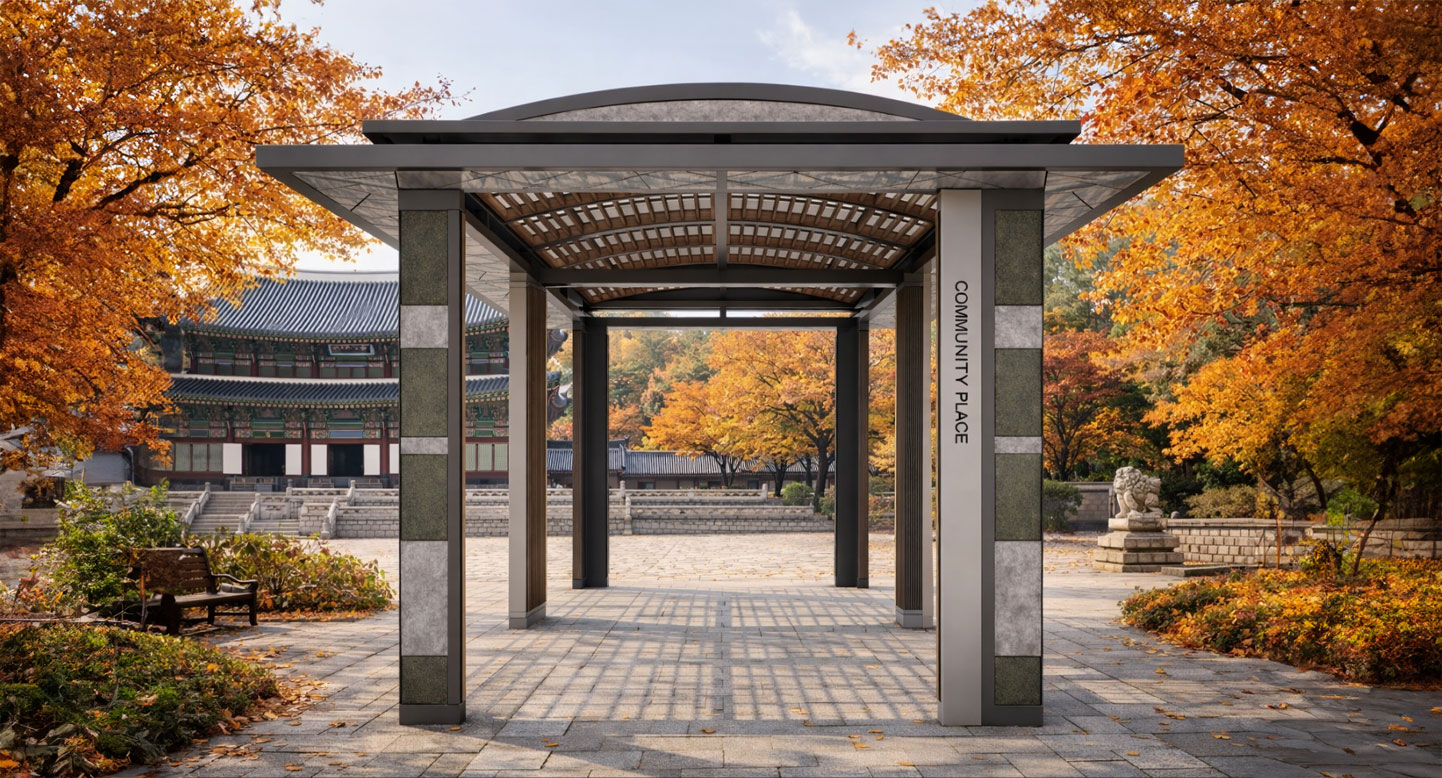 아치 패빌리온 (Arch Pavilion)|GC-P-1724 제품목록으로 바로가기 자료 및 바로가기 나라장터 바로연결 도면 다운로드 시공사진 보러가기 기타 아치형 지붕과 리듬감 있는 기둥 패턴으로 클래식한 안정미를 강조한 쉼터입니다. 공원·캠퍼스·단지 보행로 등에서 은은한 음영과 조형미를 제공하며, 편안한 휴식과 만남의 공간을 연출합니다. 제품명 아치 패빌리온 (Arch Pavilion)|GC-P-1724 물품식별번호 25615617 규격 8,000 × 4,000 × 3,200(H) 재질 stl, galvanized, polycarbonate, hard wood, hpl 아치 패빌리온 (Arch Pavilion)|GC-P-1724 물품식별번호 25615617 규격 8,000 × 4,000 × 3,200(H) 재질 stl, galvanized, polycarbonate, hard wood, hpl 기타 아치형 지붕과 리듬감 있는 기둥 패턴으로 클래식한 안정미를 강조한 쉼터입니다. 공원·캠퍼스·단지 보행로 등에서 은은한 음영과 조형미를 제공하며, 편안한 휴식과 만남의 공간을 연출합니다. 자료 및 바로가기 나라장터 바로연결 도면 다운로드 시공사진 보러가기
