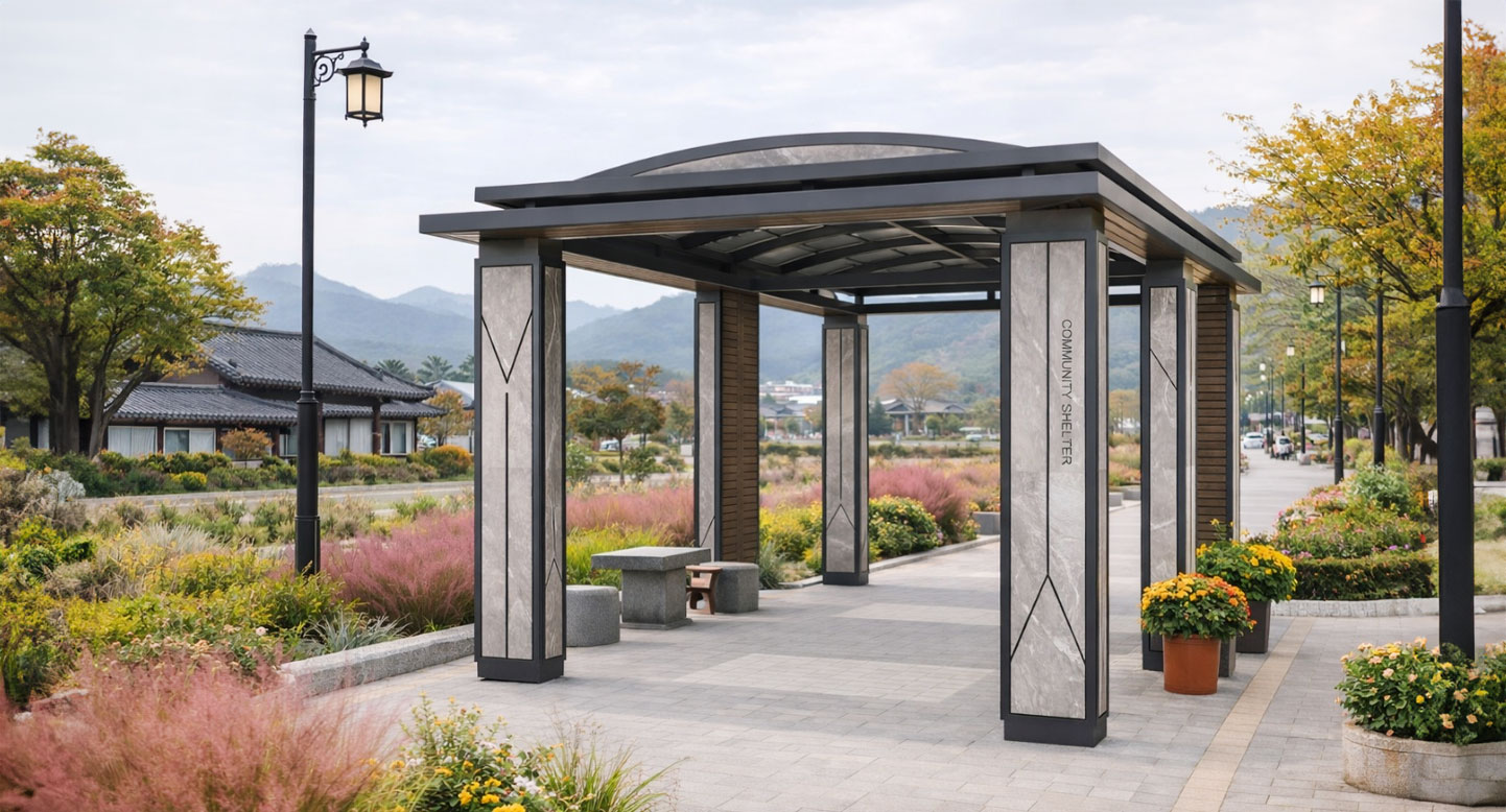 지오메트릭 퍼걸러 (Geometric Pergola)|GC-P-1723 제품목록으로 바로가기 자료 및 바로가기 나라장터 바로연결 도면 다운로드 시공사진 보러가기 기타 삼각 패턴을 기둥에 적용해 도시적인 리듬감과 독특한 조형미를 강조한 쉼터입니다. 자연과 어우러지며 공원·광장·단지 보행동선에 개성 있는 휴식 공간을 제공합니다. 제품명 지오메트릭 퍼걸러 (Geometric Pergola)|GC-P-1723 물품식별번호 25615616 규격 8,000 × 4,000 × 3,300(H) 재질 stl, galvanized, polycarbonate, hpl 지오메트릭 퍼걸러 (Geometric Pergola)|GC-P-1723 물품식별번호 25615616 규격 8,000 × 4,000 × 3,300(H) 재질 stl, galvanized, polycarbonate, hpl 기타 삼각 패턴을 기둥에 적용해 도시적인 리듬감과 독특한 조형미를 강조한 쉼터입니다. 자연과 어우러지며 공원·광장·단지 보행동선에 개성 있는 휴식 공간을 제공합니다. 자료 및 바로가기 나라장터 바로연결 도면 다운로드 시공사진 보러가기