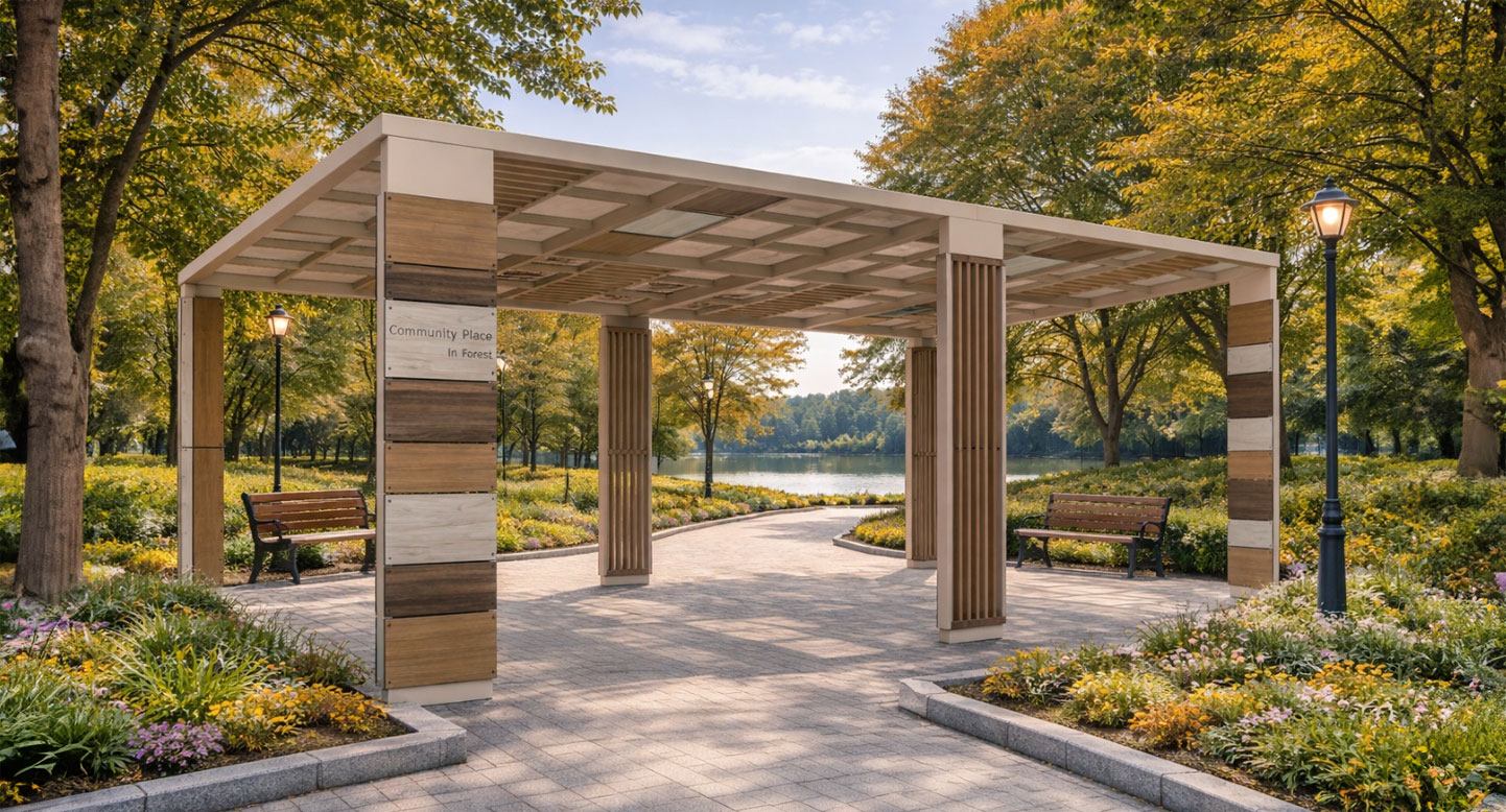 우드패치 퍼걸러 (Wood Patch Pergola)|GC-P-1732 제품목록으로 바로가기 자료 및 바로가기 나라장터 바로연결 도면 다운로드 시공사진 보러가기 기타 다양한 톤의 우드패널을 기둥에 적용해 감성적인 리듬감을 주고, 자연 속 분위기를 극대화한 휴식형 퍼걸러입니다. 공원·아파트 단지·산책길에 어울리는 따뜻한 쉼 공간을 제공합니다. 제품명 우드패치 퍼걸러 (Wood Patch Pergola)|GC-P-1732 물품식별번호 25617201 규격 8,000 × 4,000 × 2,865(H) 재질 stl, galvanized, polycarbonate, hard wood, hpl 우드패치 퍼걸러 (Wood Patch Pergola)|GC-P-1732 물품식별번호 25617201 규격 8,000 × 4,000 × 2,865(H) 재질 stl, galvanized, polycarbonate, hard wood, hpl 기타 다양한 톤의 우드패널을 기둥에 적용해 감성적인 리듬감을 주고, 자연 속 분위기를 극대화한 휴식형 퍼걸러입니다. 공원·아파트 단지·산책길에 어울리는 따뜻한 쉼 공간을 제공합니다. 자료 및 바로가기 나라장터 바로연결 도면 다운로드 시공사진 보러가기