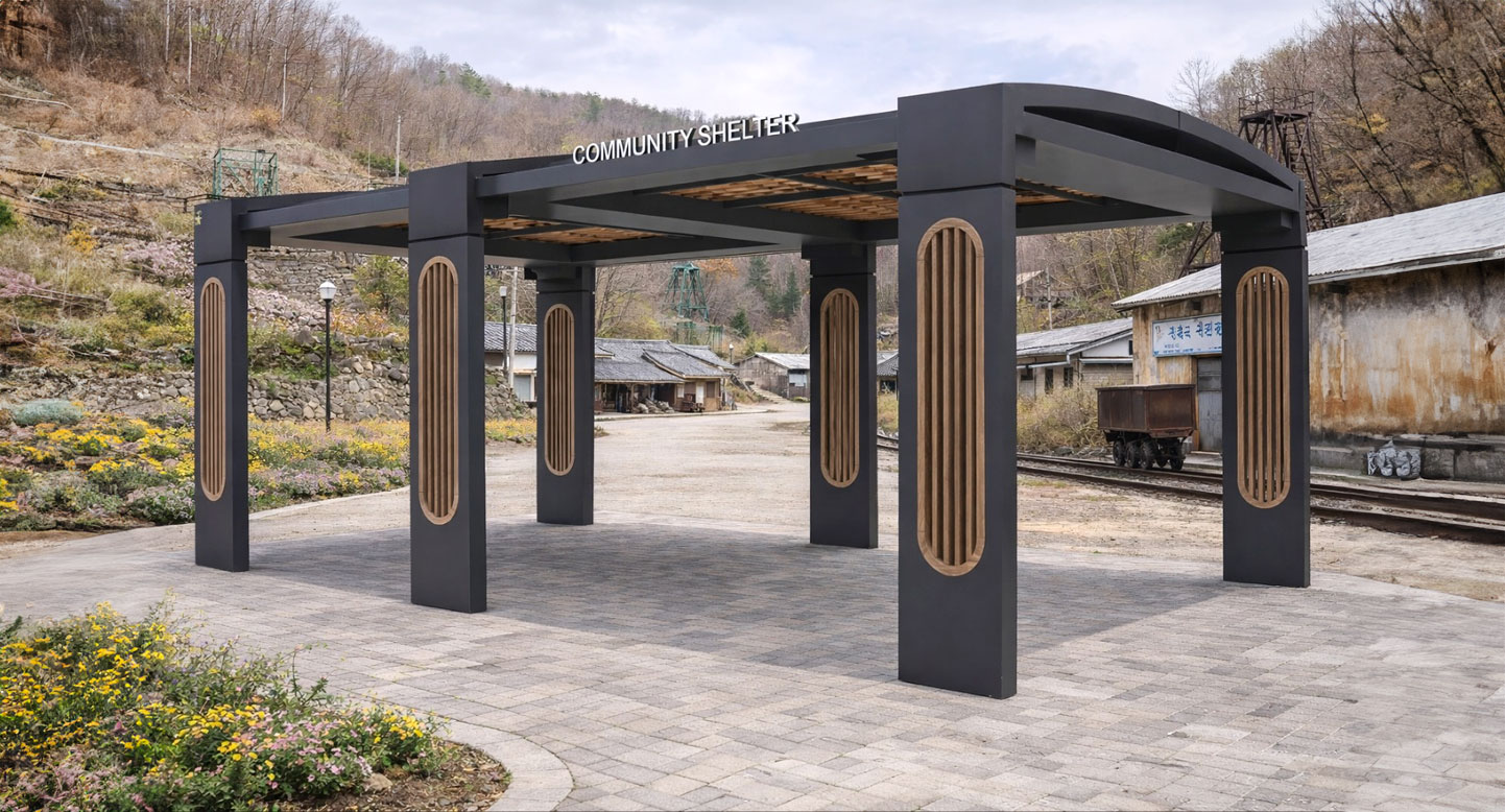어반아치 쉘터 (Urban Arch Shelter)|GC-P-2106 제품목록으로 바로가기 자료 및 바로가기 나라장터 바로연결 도면 다운로드 시공사진 보러가기 기타 유려한 아치 지붕과 우드 루버 기둥을 조합해 자연광과 바람을 부드럽게 조절하며, 다양한 공간에서 세련된 휴식과 소통을 제공하는 모던 쉼터입니다. 제품명 어반아치 쉘터 (Urban Arch Shelter)|GC-P-2106 물품식별번호 25565468 규격 8,000 × 4,000 × 3,000(H) 재질 stl, galvanized, polycarbonate, hard wood, hpl 어반아치 쉘터 (Urban Arch Shelter)|GC-P-2106 물품식별번호 25565468 규격 8,000 × 4,000 × 3,000(H) 재질 stl, galvanized, polycarbonate, hard wood, hpl 기타 유려한 아치 지붕과 우드 루버 기둥을 조합해 자연광과 바람을 부드럽게 조절하며, 다양한 공간에서 세련된 휴식과 소통을 제공하는 모던 쉼터입니다. 자료 및 바로가기 나라장터 바로연결 도면 다운로드 시공사진 보러가기