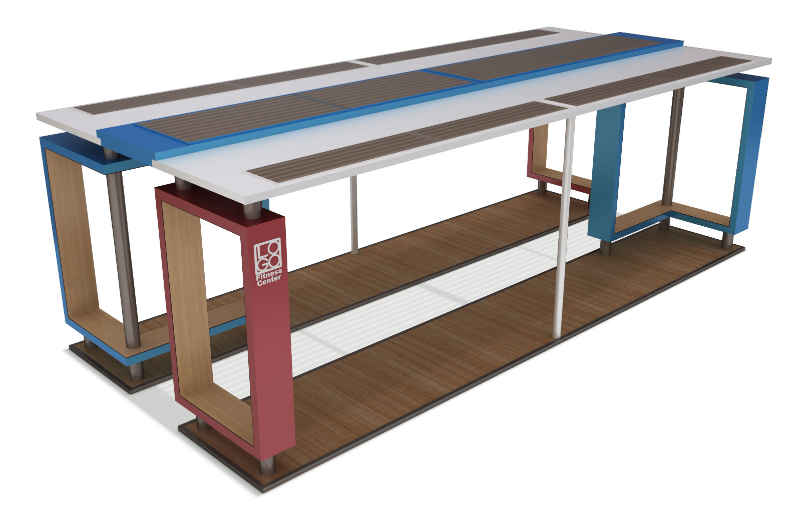 듀얼프레임 피트니스 쉘터 (Dual Frame Fitness Shelter)|GC-P-1718 제품목록으로 바로가기 자료 및 바로가기 나라장터 바로연결 도면 다운로드 시공사진 보러가기 기타 컬러 포인트 프레임과 긴 루버 차양으로 경쾌한 분위기를 만들고, 길게 이어지는 데크 라인이 운동과 휴식 동선을 자연스럽게 연결하는 쉼터입니다. 제품명 듀얼프레임 피트니스 쉘터 (Dual Frame Fitness Shelter)|GC-P-1718 물품식별번호 25615554 규격 9,000 × 4,000 × 3,000(H) 재질 stl, galvanized, polycarbonate, hard wood, hpl 듀얼프레임 피트니스 쉘터 (Dual Frame Fitness Shelter)|GC-P-1718 물품식별번호 25615554 규격 9,000 × 4,000 × 3,000(H) 재질 stl, galvanized, polycarbonate, hard wood, hpl 기타 컬러 포인트 프레임과 긴 루버 차양으로 경쾌한 분위기를 만들고, 길게 이어지는 데크 라인이 운동과 휴식 동선을 자연스럽게 연결하는 쉼터입니다. 자료 및 바로가기 나라장터 바로연결 도면 다운로드 시공사진 보러가기