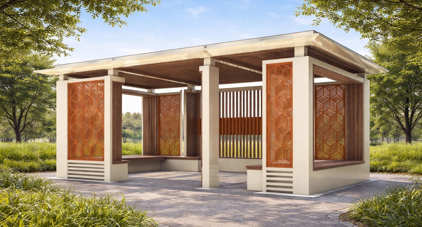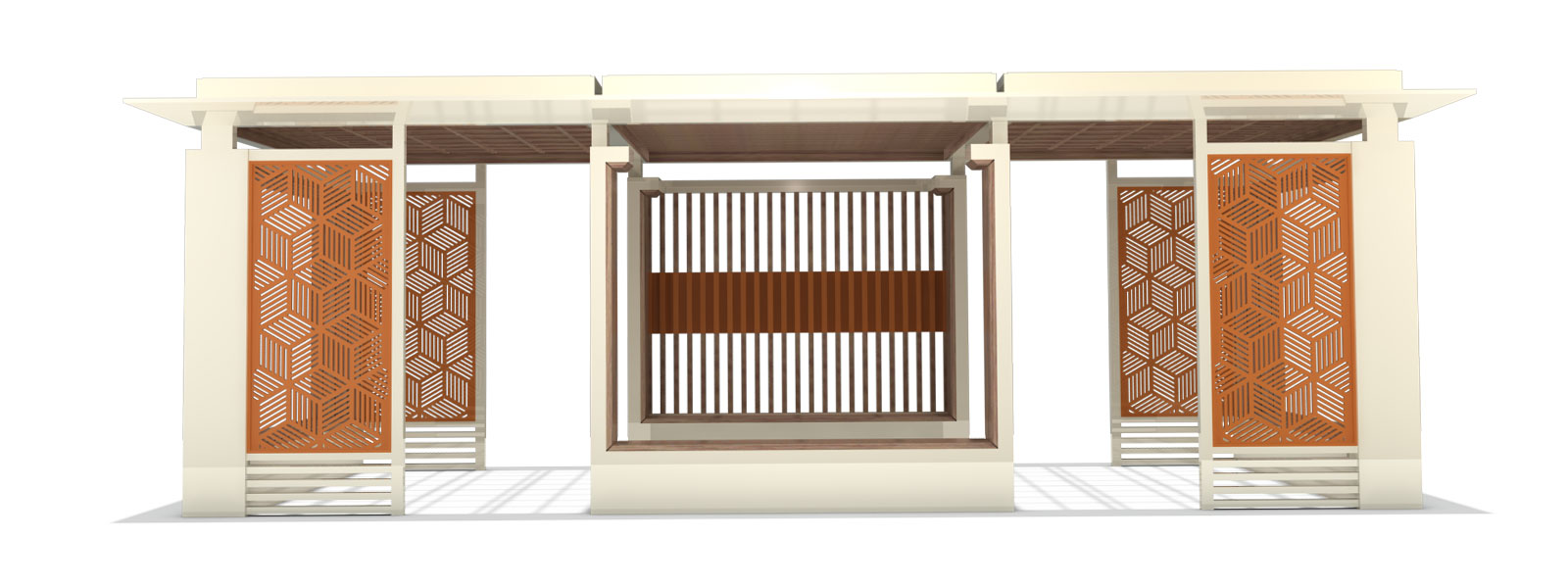 패턴 쉼터 (Pattern Shelter)|GC-P-794 제품목록으로 바로가기 자료 및 바로가기 나라장터 바로연결 도면 다운로드 시공사진 보러가기 기타 전통 패턴과 우드 벤치를 조합해 따뜻한 분위기와 편안한 휴식을 제공하며, 개방형 구조로 공원·단지 등 다양한 공간에서 자연스럽게 소통이 이루어지는 쉼터입니다. 제품명 패턴 쉼터 (Pattern Shelter)|GC-P-794 물품식별번호 25010284 규격 7,500 × 3,600 × 2,800(H) 재질 stl, galvanized, polycarbonate, hard wood, hpl 패턴 쉼터 (Pattern Shelter)|GC-P-794 물품식별번호 25010284 규격 7,500 × 3,600 × 2,800(H) 재질 stl, galvanized, polycarbonate, hard wood, hpl 기타 전통 패턴과 우드 벤치를 조합해 따뜻한 분위기와 편안한 휴식을 제공하며, 개방형 구조로 공원·단지 등 다양한 공간에서 자연스럽게 소통이 이루어지는 쉼터입니다. 자료 및 바로가기 나라장터 바로연결 도면 다운로드 시공사진 보러가기