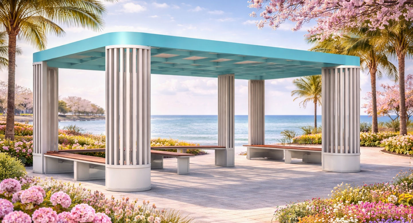 스카이 라운지 파빌리온 (Sky Lounge Pavilion)|GC-P-752 제품목록으로 바로가기 자료 및 바로가기 나라장터 바로연결 도면 다운로드 시공사진 보러가기 기타 파스텔 톤 루프와 라운드 벤치로 밝고 친근한 분위기를 만들며, 개방형 구조와 다양한 좌석이 공원·캠퍼스·수변 공간에서 자연스러운 소통과 휴식을 제공합니다. 제품명 스카이 라운지 파빌리온 (Sky Lounge Pavilion)|GC-P-752 물품식별번호 24752388 규격 8,000 × 4,000 × 2,700(H) 재질 stl, galvanized, polycarbonate, hard wood, hpl 스카이 라운지 파빌리온 (Sky Lounge Pavilion)|GC-P-752 물품식별번호 24752388 규격 8,000 × 4,000 × 2,700(H) 재질 stl, galvanized, polycarbonate, hard wood, hpl 기타 파스텔 톤 루프와 라운드 벤치로 밝고 친근한 분위기를 만들며, 개방형 구조와 다양한 좌석이 공원·캠퍼스·수변 공간에서 자연스러운 소통과 휴식을 제공합니다. 자료 및 바로가기 나라장터 바로연결 도면 다운로드 시공사진 보러가기