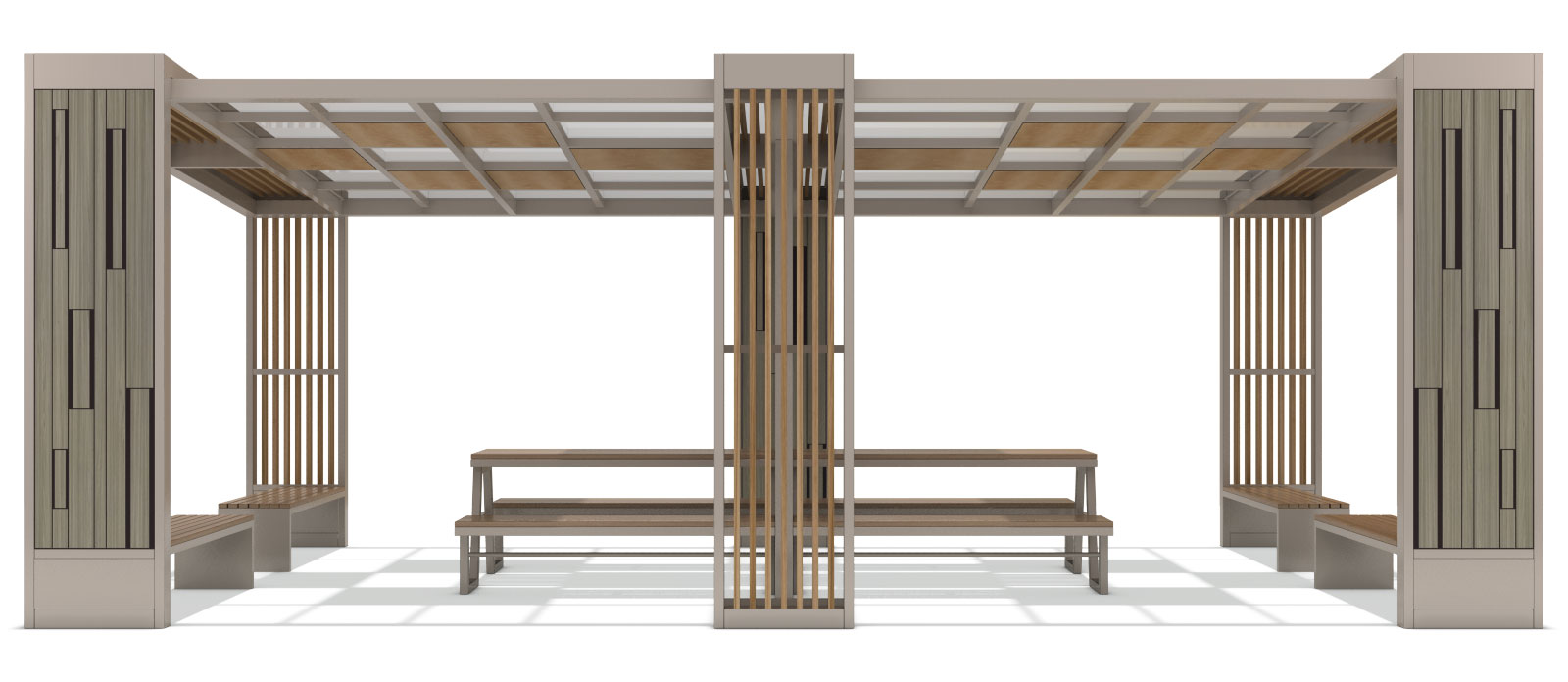 내추럴 라운지 쉼터 (Natural Lounge Shelter)|GC-P-1735 제품목록으로 바로가기 자료 및 바로가기 나라장터 바로연결 도면 다운로드 시공사진 보러가기 기타 우드 슬랫과 차분한 톤으로 안정된 분위기를 제공하며, 개방형 구조와 다양한 좌석 배치로 공원·단지에서 편안한 소통과 휴식을 지원하는 쉼터입니다. 제품명 내추럴 라운지 쉼터 (Natural Lounge Shelter)|GC-P-1735 물품식별번호 25651678 규격 7,300 × 4,000 × 2,880(H) 재질 stl, galvanized, polycarbonate, hard wood, hpl 내추럴 라운지 쉼터 (Natural Lounge Shelter)|GC-P-1735 물품식별번호 25651678 규격 7,300 × 4,000 × 2,880(H) 재질 stl, galvanized, polycarbonate, hard wood, hpl 기타 우드 슬랫과 차분한 톤으로 안정된 분위기를 제공하며, 개방형 구조와 다양한 좌석 배치로 공원·단지에서 편안한 소통과 휴식을 지원하는 쉼터입니다. 자료 및 바로가기 나라장터 바로연결 도면 다운로드 시공사진 보러가기