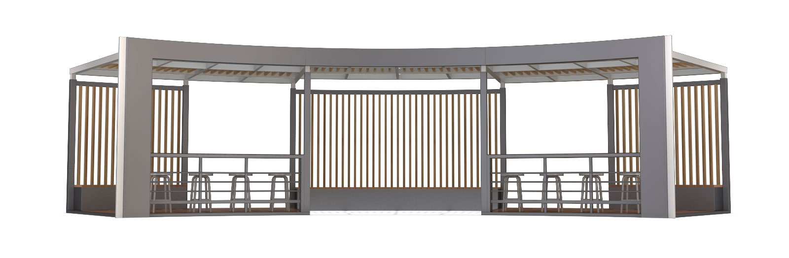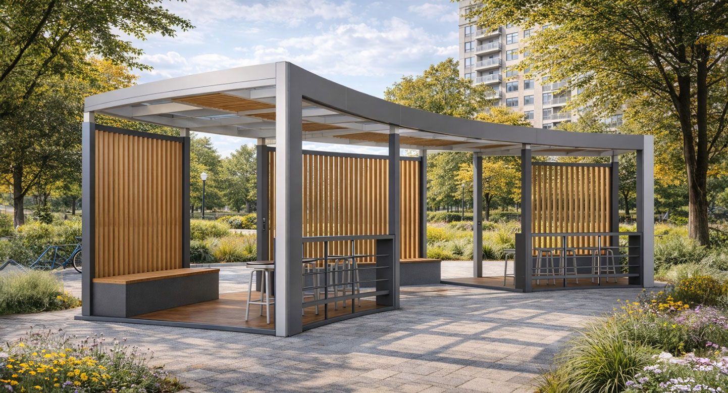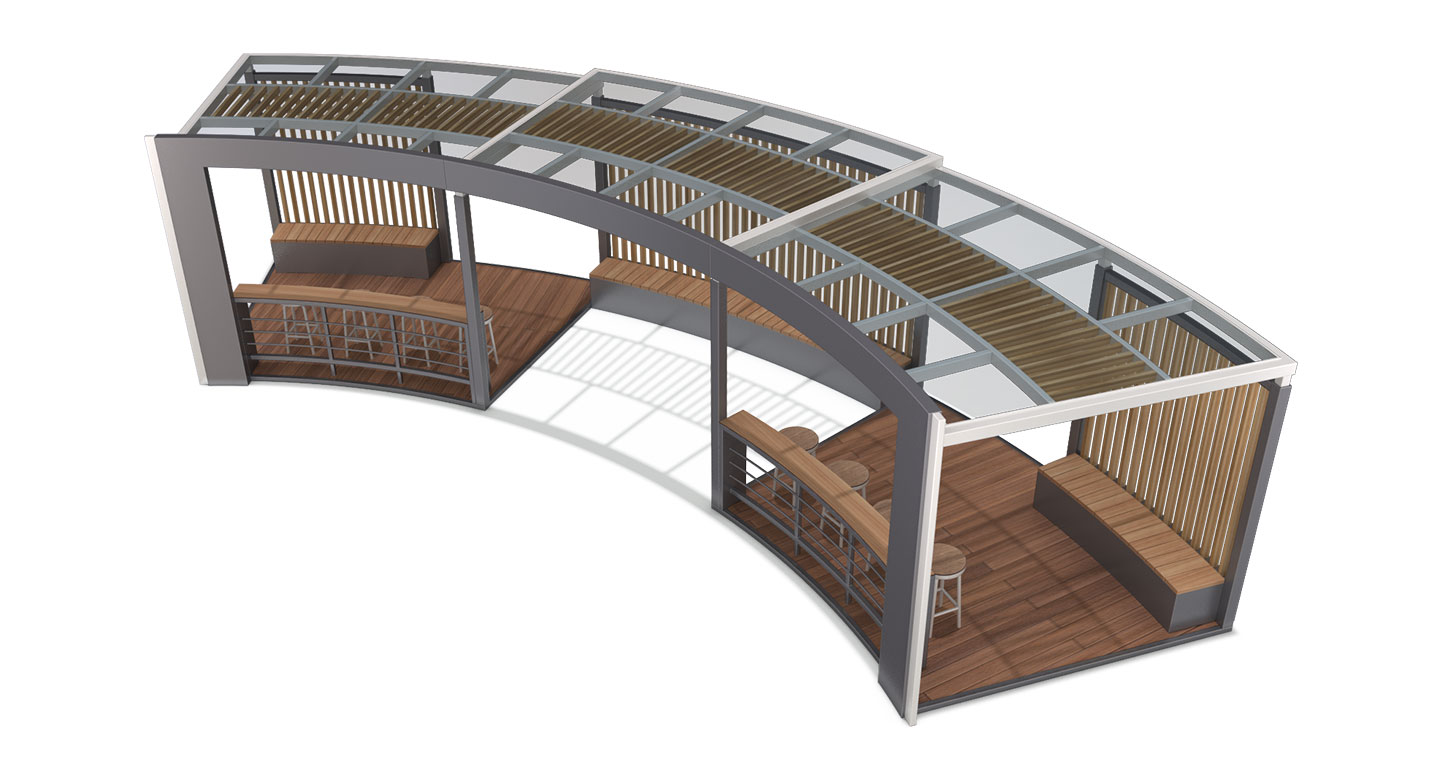 커브 라운지 쉼터 (Curve Lounge Shelter)|GC-P-2117-2 제품목록으로 바로가기 자료 및 바로가기 나라장터 바로연결 도면 다운로드 시공사진 보러가기 기타 곡선형 데크와 프레임으로 부드러운 흐름을 만들고, 우드 좌석과 바 테이블을 더해 휴식·대화·작업이 자연스럽게 이루어지는 커뮤니티 쉼터입니다. 제품명 커브 라운지 쉼터 (Curve Lounge Shelter)|GC-P-2117-2 물품식별번호 25575381 규격 11,838 × 4,405 × 2,800(H) 재질 stl, galvanized, polycarbonate, hard wood, hpl 커브 라운지 쉼터 (Curve Lounge Shelter)|GC-P-2117-2 물품식별번호 25575381 규격 11,838 × 4,405 × 2,800(H) 재질 stl, galvanized, polycarbonate, hard wood, hpl 기타 곡선형 데크와 프레임으로 부드러운 흐름을 만들고, 우드 좌석과 바 테이블을 더해 휴식·대화·작업이 자연스럽게 이루어지는 커뮤니티 쉼터입니다. 자료 및 바로가기 나라장터 바로연결 도면 다운로드 시공사진 보러가기
