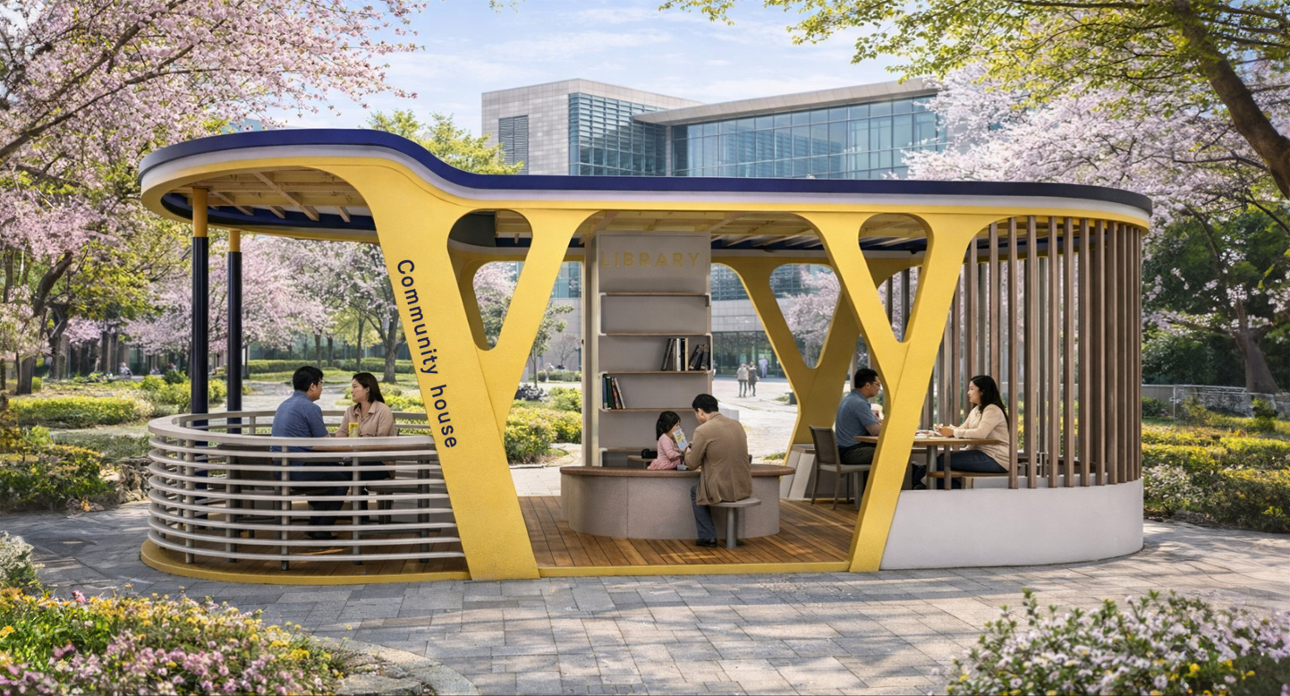 오발로하우스 (Ovalo House)|GCP-772 제품목록으로 바로가기 자료 및 바로가기 나라장터 바로연결 도면 다운로드 시공사진 보러가기 기타 곡선 구조로 부드러운 인상을 주는 공간에 책꽂이 기둥과 바테이블을 중심으로 구성된 휴식처입니다. 컬러 포인트와 유려한 라인이 조화를 이루는 개방형 쉘터입니다. 제품명 오발로하우스 (Ovalo House)|GCP-772 물품식별번호 25651467 규격 10,000 × 4,000 × 3,050(H) 재질 stl, galvanized, polycarbonate, hard wood, hpl 오발로하우스 (Ovalo House)|GCP-772 물품식별번호 25651467 규격 10,000 × 4,000 × 3,050(H) 재질 stl, galvanized, polycarbonate, hard wood, hpl 기타 곡선 구조로 부드러운 인상을 주는 공간에 책꽂이 기둥과 바테이블을 중심으로 구성된 휴식처입니다. 컬러 포인트와 유려한 라인이 조화를 이루는 개방형 쉘터입니다. 자료 및 바로가기 나라장터 바로연결 도면 다운로드 시공사진 보러가기