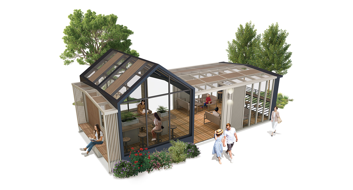 솔리안하우스 (Solian House)|GCP-741A 제품목록으로 바로가기 자료 및 바로가기 나라장터 바로연결 도면 다운로드 시공사진 보러가기 기타 박공지붕과 유리 구조가 결합된 온실형 디자인으로, 자연 채광을 최대한 끌어들이며 내부에는 식물과 어우러진 다양한 형태의 휴식 공간이 마련되어 있습니다. 제품명 솔리안하우스 (Solian House)|GCP-741A 물품식별번호 25651472 규격 10,000 × 5,000 × 4,075(H) 재질 stl, galvanized, polycarbonate, hard wood, 강화유리 솔리안하우스 (Solian House)|GCP-741A 물품식별번호 25651472 규격 10,000 × 5,000 × 4,075(H) 재질 stl, galvanized, polycarbonate, hard wood, 강화유리 기타 박공지붕과 유리 구조가 결합된 온실형 디자인으로, 자연 채광을 최대한 끌어들이며 내부에는 식물과 어우러진 다양한 형태의 휴식 공간이 마련되어 있습니다. 자료 및 바로가기 나라장터 바로연결 도면 다운로드 시공사진 보러가기