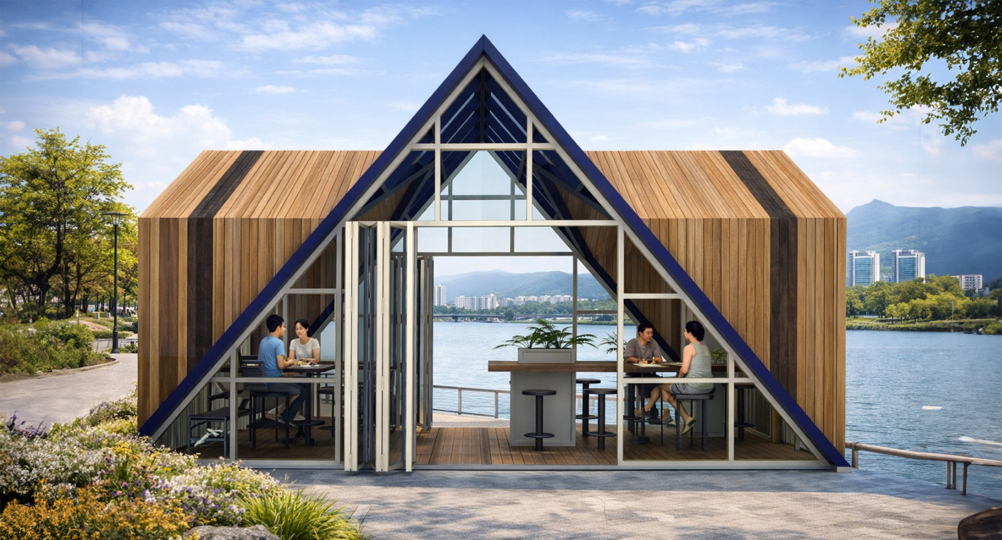 글래시어 팀버 (Glasier Timber)|GC-P-783-1 제품목록으로 바로가기 자료 및 바로가기 나라장터 바로연결 도면 다운로드 시공사진 보러가기 기타 A자 지붕을 중심으로 양쪽에 감싸진 팀버 패널이 따뜻한 질감을 전하며, 개폐형 샤시가 개방성과 실용성을 함께 제공합니다. 제품명 글래시어 팀버 (Glasier Timber)|GC-P-783-1 물품식별번호 25014236 규격 7,000 × 5,000 × 4,221(H) 재질 stl, galvanized, polycarbonate, hard wood, hpl, 강화유리 글래시어 팀버 (Glasier Timber)|GC-P-783-1 물품식별번호 25014236 규격 7,000 × 5,000 × 4,221(H) 재질 stl, galvanized, polycarbonate, hard wood, hpl, 강화유리 기타 A자 지붕을 중심으로 양쪽에 감싸진 팀버 패널이 따뜻한 질감을 전하며, 개폐형 샤시가 개방성과 실용성을 함께 제공합니다. 자료 및 바로가기 나라장터 바로연결 도면 다운로드 시공사진 보러가기