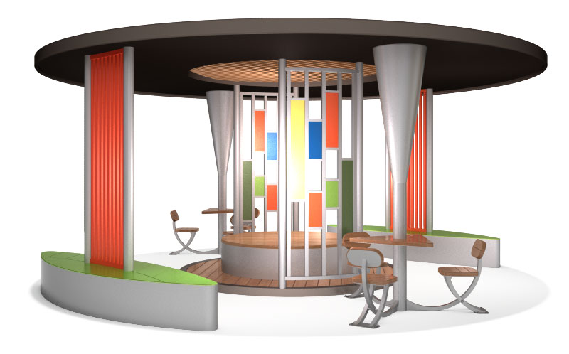 몬드리팟 (MondriPod)|GC-P-768 제품목록으로 바로가기 자료 및 바로가기 나라장터 바로연결 도면 다운로드 시공사진 보러가기 기타 감각적인 몬드리안 스타일의 그래픽과 개성 있는 가구 구성이 돋보이는 공간입니다. 중심 데크와 삼각 테이블, 리프 벤치가 젊고 활기찬 휴식을 유도합니다. 제품명 몬드리팟 (MondriPod)|GC-P-768 물품식별번호 25010257 규격 7,000 × 7,000 × 3,100(H) 재질 stl, galvanized, polycarbonate, hard wood, hpl 몬드리팟 (MondriPod)|GC-P-768 물품식별번호 25010257 규격 7,000 × 7,000 × 3,100(H) 재질 stl, galvanized, polycarbonate, hard wood, hpl 기타 감각적인 몬드리안 스타일의 그래픽과 개성 있는 가구 구성이 돋보이는 공간입니다. 중심 데크와 삼각 테이블, 리프 벤치가 젊고 활기찬 휴식을 유도합니다. 자료 및 바로가기 나라장터 바로연결 도면 다운로드 시공사진 보러가기