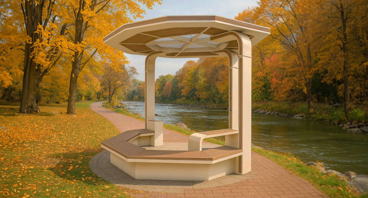 오픈브리즈 파빌리온 (Open Breeze Pavilion)|GC-P-342 제품목록으로 바로가기 자료 및 바로가기 나라장터 바로연결 도면 다운로드 시공사진 보러가기 기타 팔각 루프와 투명 패널로 밝고 개방감을 강조한 쉼터로, 곡선 벤치와 우드 패널이 따뜻한 분위기를 더해 가족·커뮤니티 공간에 자연스럽게 어울립니다. 제품명 오픈브리즈 파빌리온 (Open Breeze Pavilion)|GC-P-342 물품식별번호 25565427 규격 3,880 × 3,880 × 2,600(H) 재질 stl, galvanized, polycarbonate, hard wood, hpl 오픈브리즈 파빌리온 (Open Breeze Pavilion)|GC-P-342 물품식별번호 25565427 규격 3,880 × 3,880 × 2,600(H) 재질 stl, galvanized, polycarbonate, hard wood, hpl 기타 팔각 루프와 투명 패널로 밝고 개방감을 강조한 쉼터로, 곡선 벤치와 우드 패널이 따뜻한 분위기를 더해 가족·커뮤니티 공간에 자연스럽게 어울립니다. 자료 및 바로가기 나라장터 바로연결 도면 다운로드 시공사진 보러가기