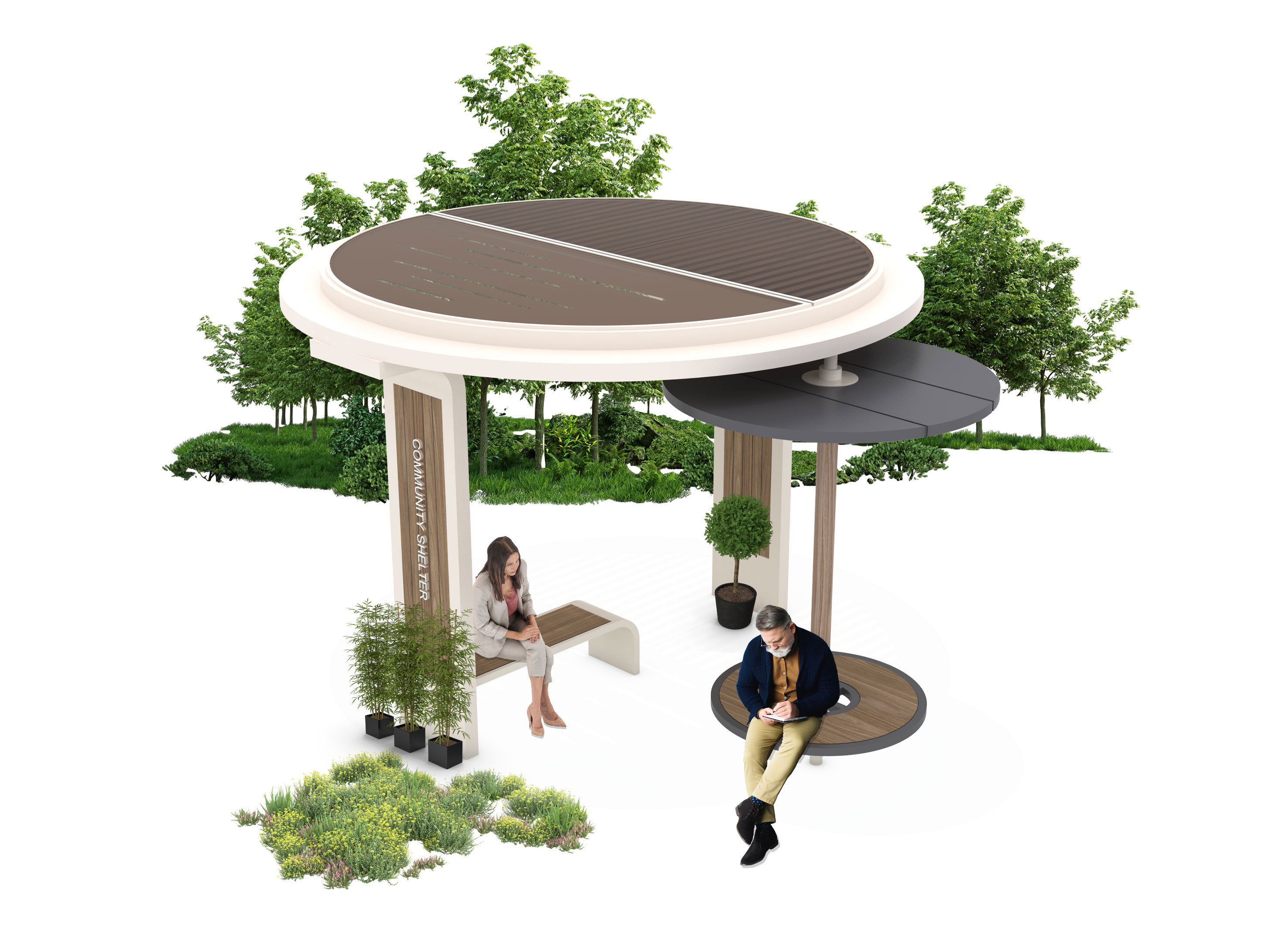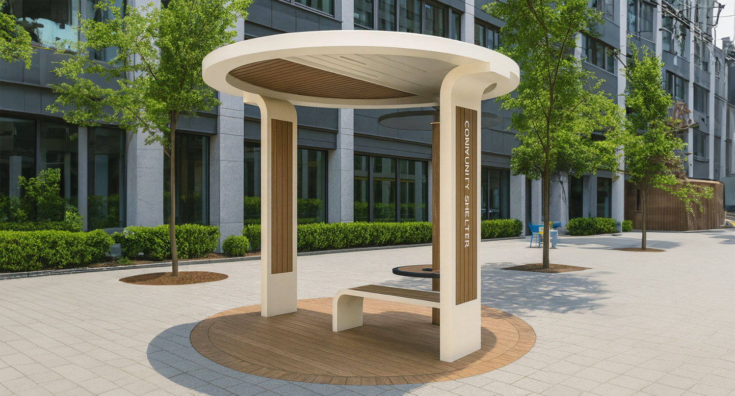 듀얼 서클 쉼터 (Dual Circle Shelter)|GC-P-344 제품목록으로 바로가기 자료 및 바로가기 나라장터 바로연결 도면 다운로드 시공사진 보러가기 기타 두 개의 원형 루프를 다른 높이와 컬러로 겹쳐 입체감을 만든 쉼터로, 목재 포인트 기둥과 원형 데크가 편안한 휴식·대기 공간을 자연스럽게 제공합니다. 제품명 듀얼 서클 쉼터 (Dual Circle Shelter)|GC-P-344 물품식별번호 25565431 규격 4,810 × 4,000 × 2,850(H) 재질 stl, galvanized, polycarbonate, hpl 듀얼 서클 쉼터 (Dual Circle Shelter)|GC-P-344 물품식별번호 25565431 규격 4,810 × 4,000 × 2,850(H) 재질 stl, galvanized, polycarbonate, hpl 기타 두 개의 원형 루프를 다른 높이와 컬러로 겹쳐 입체감을 만든 쉼터로, 목재 포인트 기둥과 원형 데크가 편안한 휴식·대기 공간을 자연스럽게 제공합니다. 자료 및 바로가기 나라장터 바로연결 도면 다운로드 시공사진 보러가기