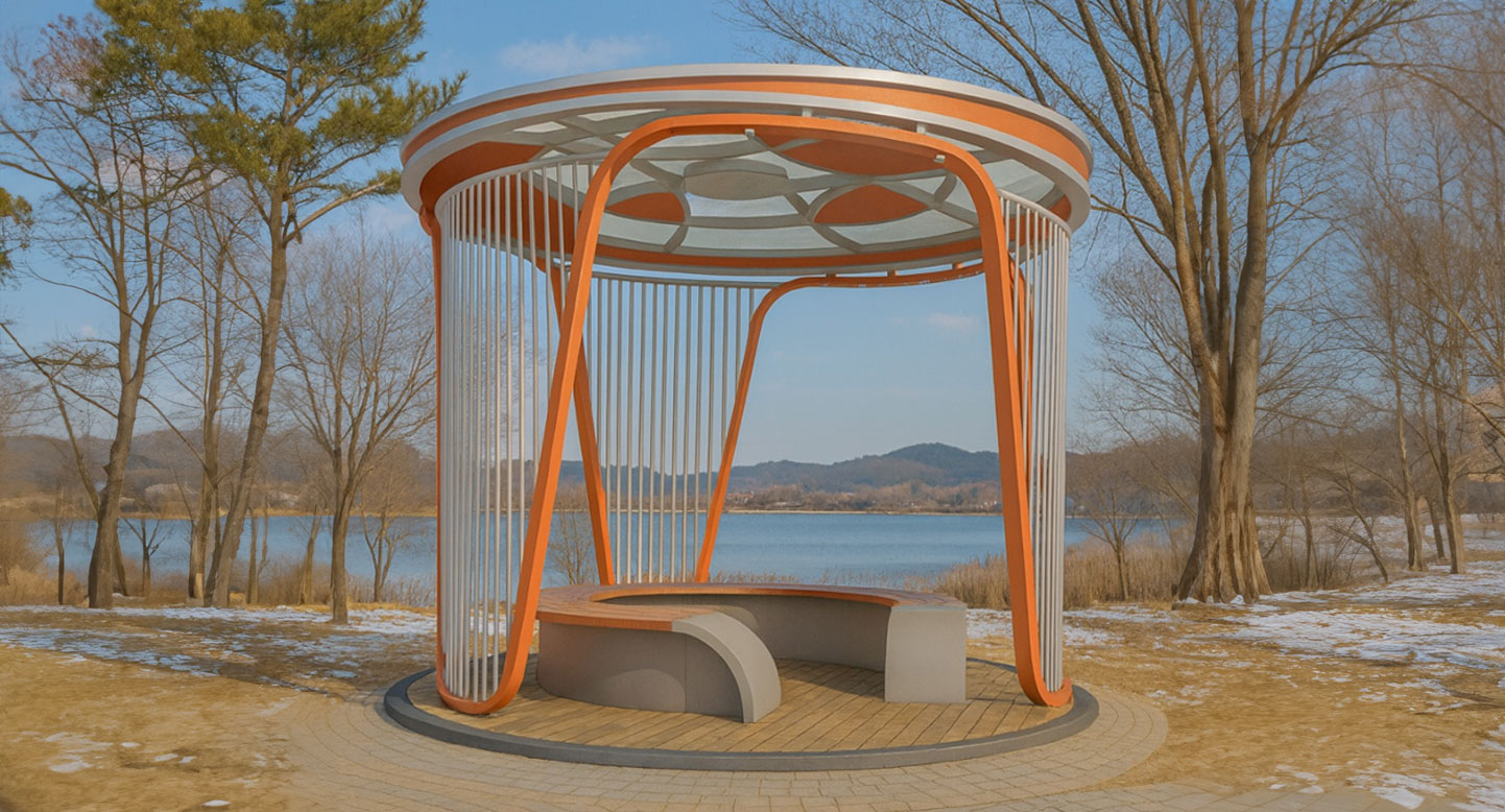 서클하모니 파빌리온 (Circle Harmony Pavilion)|GC-P-319-1 제품목록으로 바로가기 자료 및 바로가기 나라장터 바로연결 도면 다운로드 시공사진 보러가기 기타 곡선 프레임과 원형 벤치로 부드러운 리듬감을 만들어내며, 360도 개방감 속에서 포근한 휴식 분위기를 제공하는 조형적 쉼터입니다. 제품명 서클하모니 파빌리온 (Circle Harmony Pavilion)|GC-P-319-1 물품식별번호 25009529 규격 4,000 × 4,000 × 2,870(H) 재질 stl, galvanized, polycarbonate, hard wood, hpl 서클하모니 파빌리온 (Circle Harmony Pavilion)|GC-P-319-1 물품식별번호 25009529 규격 4,000 × 4,000 × 2,870(H) 재질 stl, galvanized, polycarbonate, hard wood, hpl 기타 곡선 프레임과 원형 벤치로 부드러운 리듬감을 만들어내며, 360도 개방감 속에서 포근한 휴식 분위기를 제공하는 조형적 쉼터입니다. 자료 및 바로가기 나라장터 바로연결 도면 다운로드 시공사진 보러가기