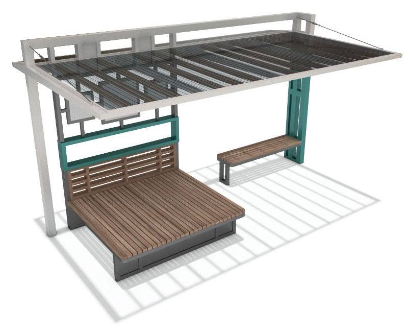 루프데크 쉘터 (Roof Deck Shelter)|GC-P-1173A 제품목록으로 바로가기 자료 및 바로가기 나라장터 바로연결 도면 다운로드 시공사진 보러가기 기타 넓은 데크형 좌판으로 누워 쉬거나 가볍게 활동할 수 있는 다용도 쉼터로, 그린 포인트 프레임과 라인 패널이 생동감을 더하고 상부 루버 차양이 쾌적한 그늘과 자연 채광을 제공합니다. 제품명 루프데크 쉘터 (Roof Deck Shelter)|GC-P-1173A 물품식별번호 25639160 규격 4,600 × 2,600 × 2,700(H) 재질 stl, galvanized, polycarbonate, hard wood, hpl 루프데크 쉘터 (Roof Deck Shelter)|GC-P-1173A 물품식별번호 25639160 규격 4,600 × 2,600 × 2,700(H) 재질 stl, galvanized, polycarbonate, hard wood, hpl 기타 넓은 데크형 좌판으로 누워 쉬거나 가볍게 활동할 수 있는 다용도 쉼터로, 그린 포인트 프레임과 라인 패널이 생동감을 더하고 상부 루버 차양이 쾌적한 그늘과 자연 채광을 제공합니다. 자료 및 바로가기 나라장터 바로연결 도면 다운로드 시공사진 보러가기