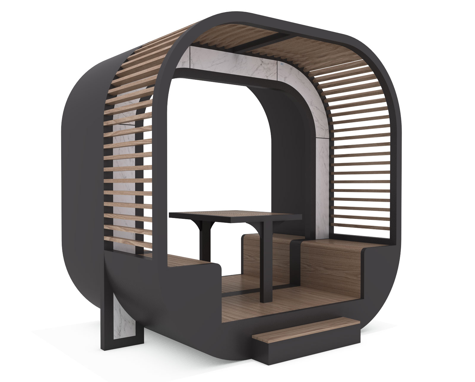 커브 코지 셸터 (Curve Cozy Shelter)|GC-P-227 제품목록으로 바로가기 자료 및 바로가기 나라장터 바로연결 도면 다운로드 시공사진 보러가기 기타 아늑함과 개방감을 동시에 살린 곡선 프레임 구조에 우드 슬랫을 더해 감성적인 분위기를 만들었으며, 내부 테이블과 벤치 구성으로 소규모 모임과 휴식에 적합한 포근한 쉼터입니다. 제품명 커브 코지 셸터 (Curve Cozy Shelter)|GC-P-227 물품식별번호 25572469 규격 2,600 × 2,200 × 2,600(H) 재질 stl, galvanized, polycarbonate, hard wood 커브 코지 셸터 (Curve Cozy Shelter)|GC-P-227 물품식별번호 25572469 규격 2,600 × 2,200 × 2,600(H) 재질 stl, galvanized, polycarbonate, hard wood 기타 아늑함과 개방감을 동시에 살린 곡선 프레임 구조에 우드 슬랫을 더해 감성적인 분위기를 만들었으며, 내부 테이블과 벤치 구성으로 소규모 모임과 휴식에 적합한 포근한 쉼터입니다. 자료 및 바로가기 나라장터 바로연결 도면 다운로드 시공사진 보러가기