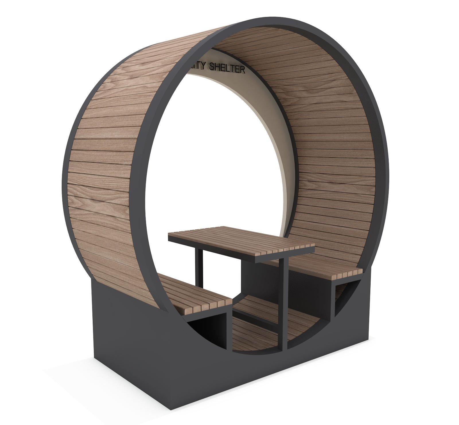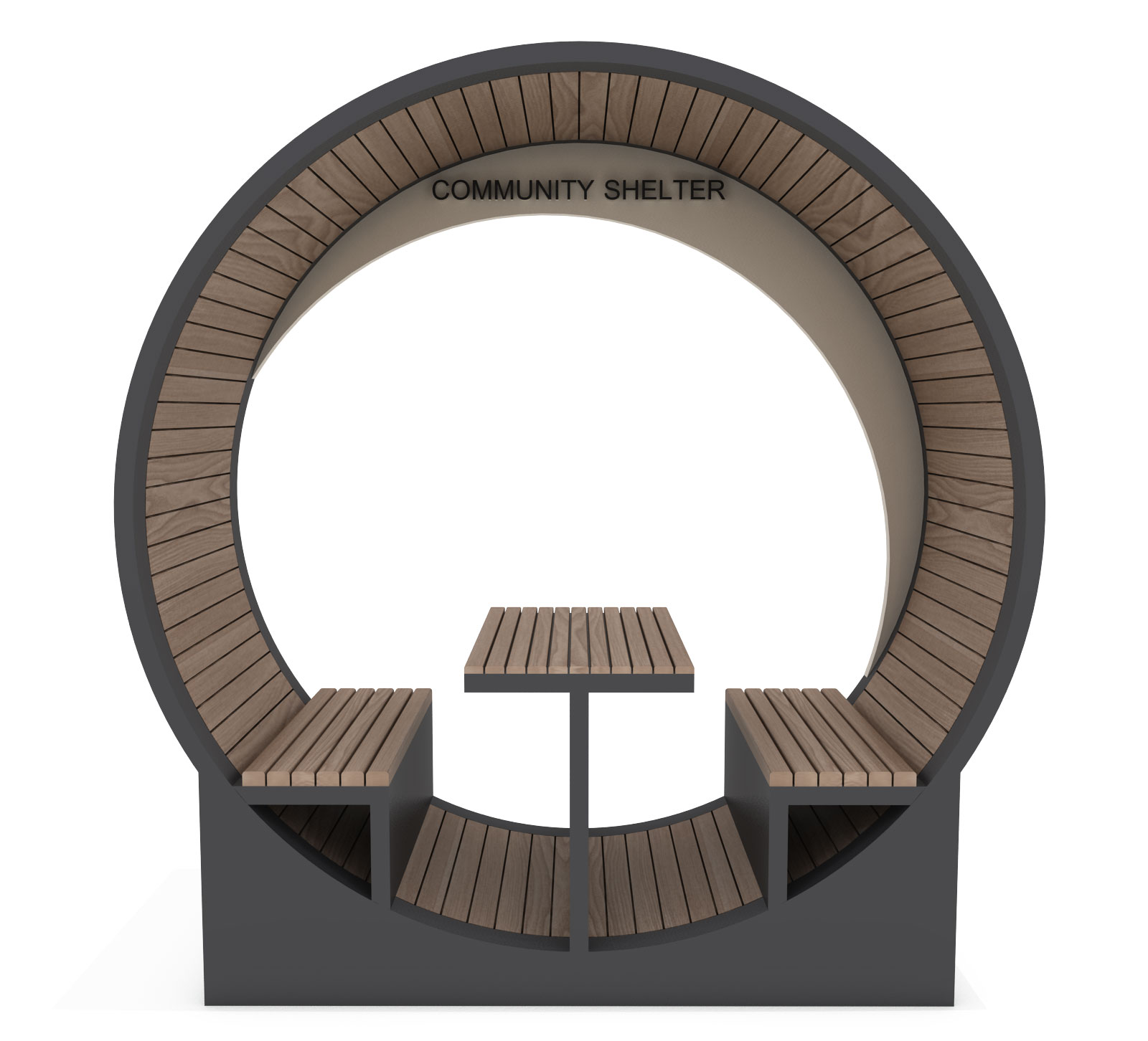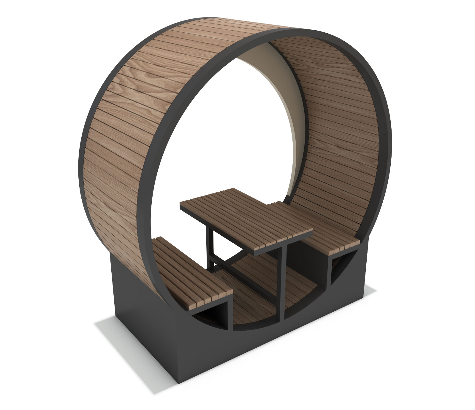 루프링 셸터 (Loop Ring Shelter)|GC-P-222 제품목록으로 바로가기 자료 및 바로가기 나라장터 바로연결 도면 다운로드 시공사진 보러가기 기타 원형 프레임 안에 벤치와 테이블을 배치해 아늑한 공간감을 만들고, 곡선형 목재 패널로 휴식·대화·포토존까지 활용 가능한 감성 쉼터입니다. 제품명 루프링 셸터 (Loop Ring Shelter)|GC-P-222 물품식별번호 25565472 규격 2,400 × 1,100 × 2,500(H) 재질 stl, galvanized, hard wood 루프링 셸터 (Loop Ring Shelter)|GC-P-222 물품식별번호 25565472 규격 2,400 × 1,100 × 2,500(H) 재질 stl, galvanized, hard wood 기타 원형 프레임 안에 벤치와 테이블을 배치해 아늑한 공간감을 만들고, 곡선형 목재 패널로 휴식·대화·포토존까지 활용 가능한 감성 쉼터입니다. 자료 및 바로가기 나라장터 바로연결 도면 다운로드 시공사진 보러가기