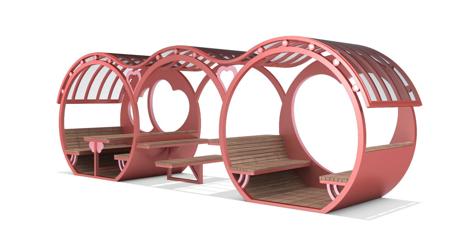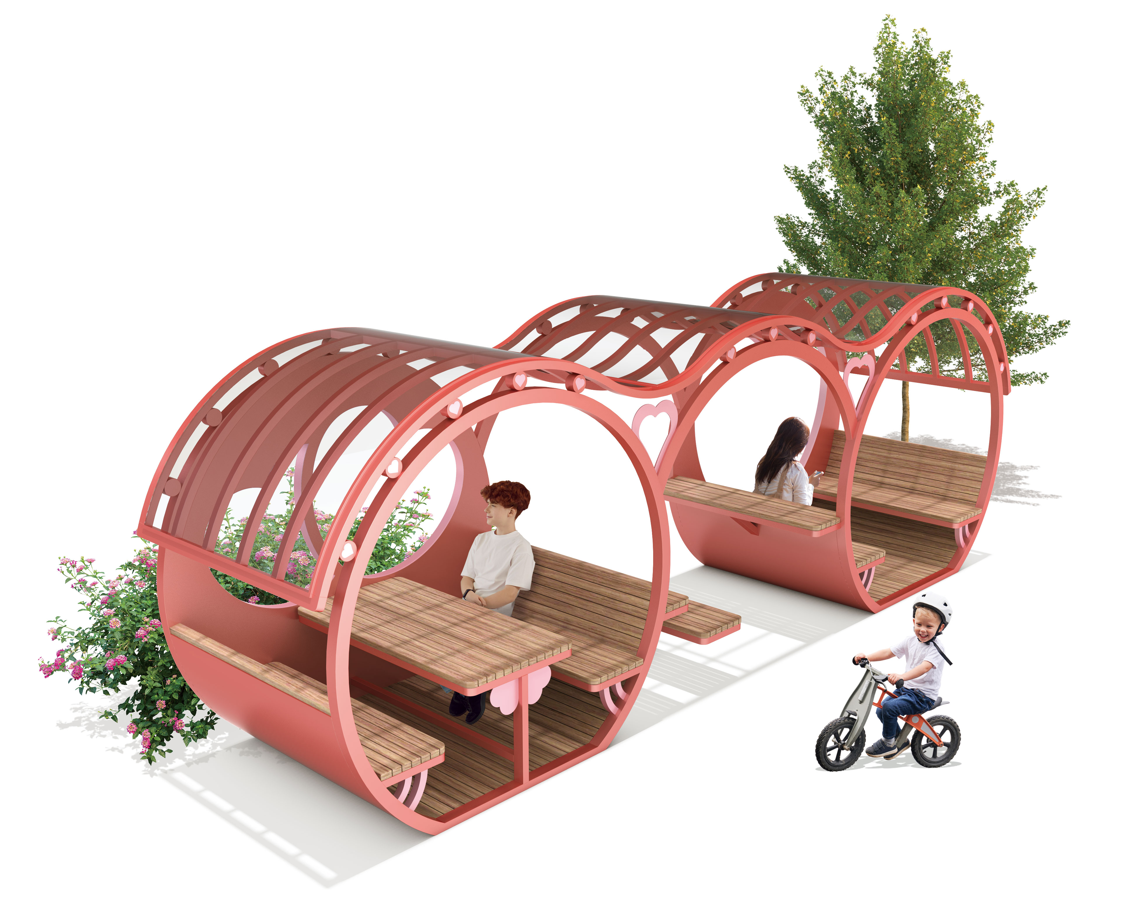 하트플로우 쉼 파빌리온(Heartflow Rest Pavilion)|GCP-413M-1 제품목록으로 바로가기 자료 및 바로가기 나라장터 바로연결 도면 다운로드 시공사진 보러가기 기타 하트 모티브와 곡선형 프레임을 연속적으로 구성해 사랑·배려·머무름의 감정을 시각화하고, 아이부터 어른까지 자연스럽게 머물며 교감하는 따뜻한 거리형 쉼 공간을 표현했습니다. 제품명 하트플로우 쉼 파빌리온(Heartflow Rest Pavilion)|GCP-413M-1 물품식별번호 25483045 규격 7,172 × 1,660 × 2,437(H) 재질 stl, polycarbonate, hard wood, galvanized 하트플로우 쉼 파빌리온(Heartflow Rest Pavilion)|GCP-413M-1 물품식별번호 25483045 규격 7,172 × 1,660 × 2,437(H) 재질 stl, polycarbonate, hard wood, galvanized 기타 하트 모티브와 곡선형 프레임을 연속적으로 구성해 사랑·배려·머무름의 감정을 시각화하고, 아이부터 어른까지 자연스럽게 머물며 교감하는 따뜻한 거리형 쉼 공간을 표현했습니다. 자료 및 바로가기 나라장터 바로연결 도면 다운로드 시공사진 보러가기